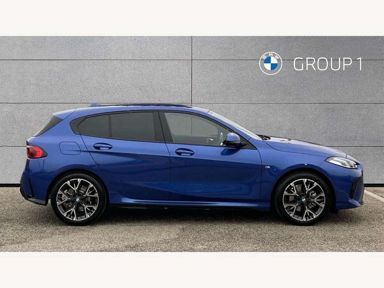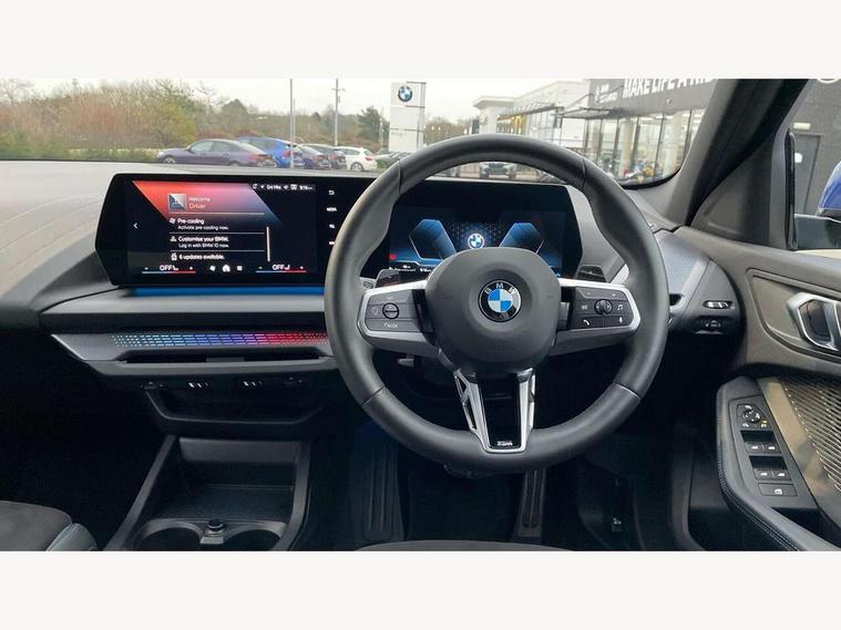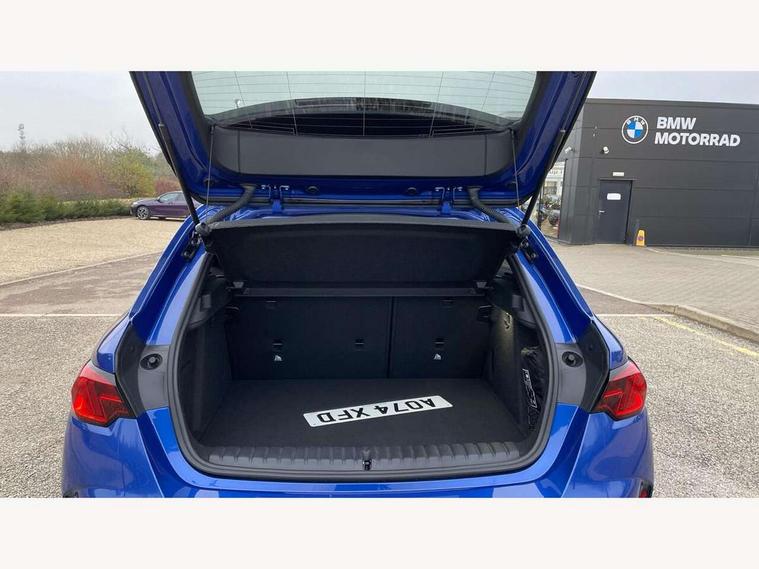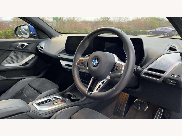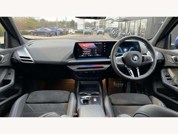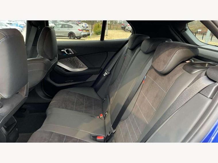 Active guard plus, Attentiveness assist, Bluetooth / WiFi interface for wireless connection of mobile terminal devices and audio streaming, BMW ConnectedDrive online services, BMW Live cockpit plus, BMW Teleservices, Check Control warning system for monitoring of lights and door/luggage compartment open warning, Cruise control with speed limiter, Eco pro mode, Electric power steering with Servotronic steering optimised at all speed ranges, Front and rear parking sensors, Front axle single joint with specific axle kinematics to minimise drive influences on steering + provide increased rigidity agile driving behaviour, Integrated owners handbook, Lane departure warning system, Oil sensor for level and grade, On board computer, Optimum shift indicator, Park assist including reversing assistant, lateral parking aid and reversing assist camera, Personal Profile, Pull away assistant, Rigidly mounted rear subframe - Multi link construction with separate spring / damper configuration and excellent driving characteristics, Speed limit Info including no-overtaking indicator, Speedometer, 49 litre fuel tank, Aluminium lightweight construction, Anti roll bar front and rear, Balancer shaft, Double VANOS twin scroll turbocharging system, Drive Performance Control, Electronic differential lock, High precision injection, M Adaptive suspension, Petrol Particulate Filter, Twin tube gas filled shock absorbers with degressive characteristic curve, VALVETRONIC engine management, DAB Digital radio, Auto dimming rear view mirror, Automatic headlight beam throw control, Automatic windscreen wipers and automatic headlight, Body colour door handles, Body colour mirror caps, Body colour roof trims, Chrome 'M' logo side designation, Chrome exhaust twin tailpipes round 90mm in left, Chrome kidney grille frame with Satin Aluminium struts, Direction indicator side lights in exterior mirrors, Electrically adjustable exterior mirror with mirror adjustment switch on drivers armrest and aspheric on driver side, convex on passenger side, Fading support, Folding side mirrors with auto dimming/folding wing mirrors with auto dimming, Follow me home headlights, Front and rear bumper system with replaceable deformation elements, Front and rear electric windows with open and close fingertip control, anti trap facility and comfort closing, Front door sill finishers in black plastic with M designation in metallic look, Green tinted heat protection glazing, High gloss shadowline window frame, Recess cover mirror frames and B/C pillar embelisher trim, High level third brake light, Integrated front windscreen with washer jets, LED daytime running lights, LED eyebrow turn indicators, LED front fog lights, LED Headlights, Lightweight engineering, Matt black air guide grilles, Matt black wheel arch trim, Nearside reverse light in rear light cluster, Preparation for high beam assistant, Rear fog lights, Rear side wing doors, Rear window wiper, Shark fin antenna, Trailer stabilisation logic, Visible VIN plate, Welcome lighting, 12V power socket in front centre console with blanking plug, 3 rear seat head restraints, 3 seat bench in 2nd row, 3 spoke sports leather steering wheel with black leather and stitching, pearl chrome decorative finish, specific M Badge, Anthracite headlining, Black boot net with lashing eyes, Cargo function on 2nd seat row, Child seat ISOFIX attachment for two outer rear seats and front passenger seat with anchorage points, Conditioned based service, Driver and front passenger backrest net on rear, Driver and front passenger seat heating, Driver side folding compartment in instrument panel, Folding rear clothes hook, Four grab handles integrated in roof lining, Front and rear door pockets with bottle holders, Front and rear side armrest integrated into door trim, Front armrest, Glove compartment, Height adjustable front head restraints, Luggage compartment for bag hooks on left and right, foldable luggage compartment liner and four lashing eyelets, Manual adjust steering wheel, Multi-function controls for steering wheel, Rear seat backrest with manual 60:40 split folding with 3 top tether clips integrated on rear of seat panels, Single front passenger seat, Storage compartment in centre console, Storage compartment in luggage compartment, Stowage of the parcel shelf in luggage compartment trim, Sun visors with vanity mirrors and insert tab, Two front centre console cupholders, Type C two USB ports in rear centre console, Velour floor mats, Connected pack professional - 1 Series, Interior lights pack - 1 Series, M Sport exterior styling aerodynamics pack - 1 Series, 2 tone horn, 3 point seatbelts on all seats, front pyrotechnic belt tensioners, stopper and belt force limiters, rear coded belt buckles, Airbags - Front driver/passenger, front and rear curtain head protection, front side, manual deactivation of front passenger airbag, Anti lock braking system (ABS) with brake assist, BMW emergency call, Brake drying, Braking readiness, Child proof locking system in rear door, Comfort modes, Cornering brake control, Crash sensor activating of airbags, Unlocking doors, hazard warning lights, interior light, safety battery terminal, Driver and front passenger seat belt security check, Dynamic stability control + (DSC+), Dynamic Traction Control - DTC, Electrically operated hand brake including automatic hold function, Front and rear disc brakes, Seatbelt warning, Side impact protection, Tyre pressure monitoring system, Warning triangle and first aid kit, Central locking switch for all doors, fuel filler cap and luggage compartment, Deadlocking function system to all doors, Drive away locking system on all doors and luggage compartment with de-activated in iDrive settings, Locking wheel bolts, Remote control with integrated key with High-gloss Black inlay and M designation and 1 button for open/ close lock, window, open luggage compartment, Start/stop button illuminated in centre console with keyless engine start and auto 