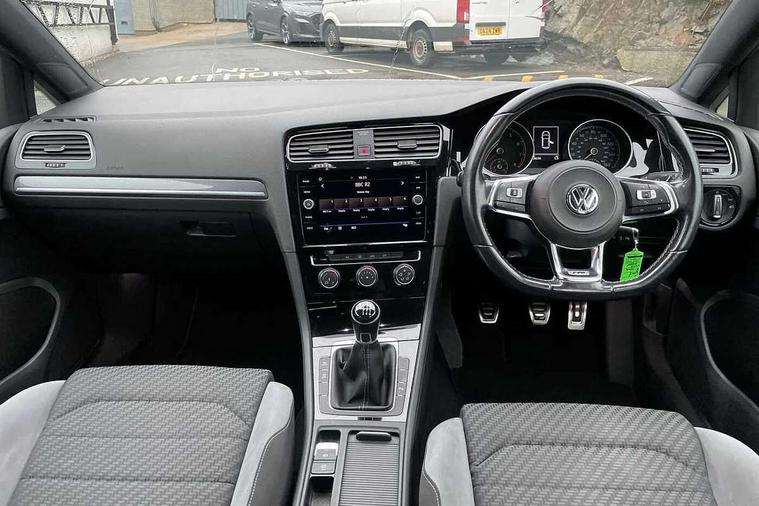 'Lights On' Reminder warning buzzer, 8" touch screen, Adaptive Cruise Control with pedestrian detection and speed limiter, App-Connect, Bluetooth hands free telephone connection, Brake pad wear indicator warning light, Driver alert system, Driver profile selection, Exterior temperature gauge, Front assistant collision mitigation, Instrument cluster in white, Multifunction computer, PAS - speed related, Rev counter, Trip and service interval display, Ultrasonic front and rear optical and audible parking sensors, Warning buzzer and light for front seatbelts unfastened, Lowered sports suspension, XDS electronic differential lock, CD/MP3/WMA, USB and SD card reader, aux-in, Composition media system, DAB Digital radio, Auto dimming rear view mirror, Automatic coming/leaving home lighting function, Automatic headlights, Black front air intake and radiator grille with chrome insert, Black sports rear diffuser, Body colour bumpers, Body colour door handles, Body colour door mirrors, Body colour rear roof spoiler, Chrome grille surround, Chrome trapezoidal exhaust, Electric front windows, Electric rear windows, Electrically adjustable and heated door mirrors, Heat insulated tinted glass 65% light absorbing from B pillar back, Heated rear windscreen, LED daytime running lights, LED rear lights, Rain sensor, Rear windscreen washer and wiper with interval delay, Stainless steel door sill protection, 12V socket in luggage compartment, 3 rear headrests, 3 spoke steering wheel, 60/40 split folding rear seat, Bag hook in luggage compartment, Black headlining, Boot lashing points, Cooled glovebox, Courtesy light delay, Cover for storage compartment in centre, Dust/pollen filter, Front + rear carpet mats, Front centre armrest with storage box and rear air vents, Front passenger seat height adjust, Front reading lights, Front seat back storage pockets, Grab handles, Height/reach adjust steering wheel, Illuminated vanity mirrors, Isofix preparation for 2 rear child seats, Leather gear knob and handbrake grip, Load through provision with rear centre armrest and cupholders x2, Luggage compartment cover, Luggage compartment lighting, Multifunction leather steering wheel with grey stitching leather trimmed gear knob including paddle shift, Overhead storage box, Stainless steel pedals, Storage box in luggage compartment, Storage compartments in doors, Sun visors, Variable boot floor, height adjustable and removable, Ambient lighting pack - Golf, Mirror pack - Golf, 3 point height adj front seatbelts + pretensioners, 3 rear 3 point seatbelts, ABS, Automatic post collision braking, Child locks on rear doors, Driver/Front Passenger airbags, Driver/Passenger whiplash optimised head restraints, Drivers knee airbag, Electronic parking brake with auto hold, ESP with EDL + ASR, Front and rear curtain airbags, Front passenger airbag deactivation, Front side airbags, Pre crash system, Tyre pressure monitor, Alarm with interior protection, Electronic engine immobiliser, Remote central locking with 2 remote folding keys, Chrome-plated light switch surround, Dark Diamond decorative inserts in dash and door panels, Piano black centre console with aluminium inlay, Steel space saver spare wheel,