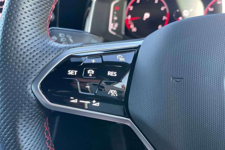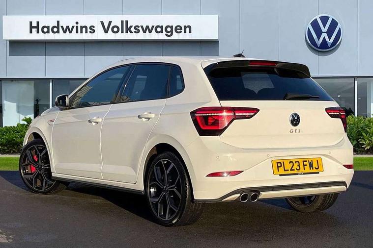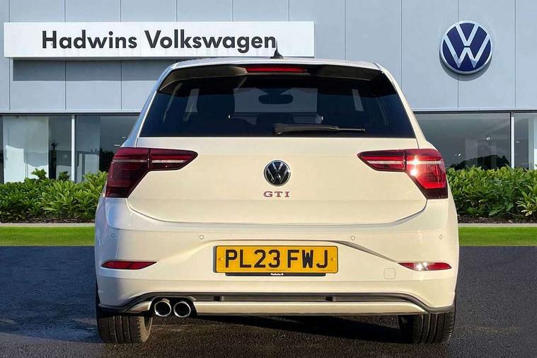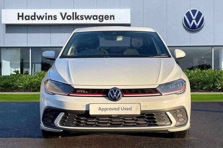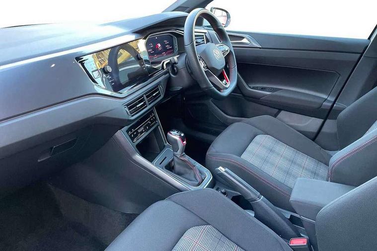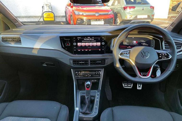 Adaptive cruise control with follow-to-stop and speed limiter, Bluetooth mobile phone interface, Digital Cockpit Pro with 10.25" Display, Driver alert system, Dynamic road sign display, Eco mode, Emergency call service, Power assisted speed sensitive steering, Preparation for We connect and We connect plus, Speedo and rev counter, electronic odometer, trip, service interval display and fuel gauge, Travel Assist - Lane keeping system and traffic jam assist, Travel assist including emergency assist, Trip computer, Warning signal and warning light for front and rear seatbelts not fastened, Washer fluid level indicator, Wireless app connect, Adaptive chassis control, Front wheel drive, Heavy duty rear axle, Rear shock absorpion sports version, Sports select suspension lowered by 15mm, Start-stop system with battery regeneration (recuperation - energy recovery during braking), DAB Digital radio, Diversity antenna for FM reception, Front and rear 6 speakers, Body colour bumpers, Body colour door handles, Electric front windows, Front scuff plates in aluminium with GTI logo, Heat insulating darkened glass in side and rear windows, Heat insulating glass windscreen, Power folding adjustable/heated exterior mirrors and front passenger exterior mirror lowering function, Rain sensor, Rear electric windows, Rear fog light, Rear side wing doors, Rear windscreen washer and wiper with interval delay, Sport bumpers with air intakes with honeycomb structure, Third brake light, Twin chrome exhaust tailpipes, 12V power socket in centre console, 2 USB-C ports in the front, 2 USB-C charging sockets on the center console in the rear, 3 rear head restraints, 60/40 split folding rear seat and rear seat bench not split, Air care climatronic air conditoning system with active combination filter and 2-zone temperature control, Black roof lining, Chrome plated radiator grille inserts, air vent surrounds and light switch surrounds, Door and side trim panel, Driver and front passenger seat height adjustment, Driver/passenger sunvisors with illuminated vanity mirrors, Front + rear carpet mats in recycled material, Front centre armrest, Front footwell illumination, Front seat backrest storage pockets, GTI sports gearshift knob in aluminium leather, Handbrake lever handle in leather, Headliner in recycled material, Isofix child seat preparation easy-fit (for two outer rear seats, and front passenger seat) compatible with I-size, LED interior light with switch off delay and dimmer, 2 reading lights front and rear, Luggage compartment cover, Luggage compartment floor, Luggage compartment lighting, Single front passenger seat, Stainless steel pedals, Standard pedal cluster, Three spoke leather wrapped multifunction sports steering wheel with shifting paddles, IQ LED matrix headlights pack - Polo, Light and sight pack - Polo GTI, 3 point height adj front seatbelts + pretensioners, 3x3 point rear seatbelts, ABS, Driver and front passenger airbag with front passenger airbag deactivation, Drivers and front passengers safety optimised head restraints, ESC (Electronic stability control) + EDL (Electronic Differntial lock) and ASR (Traction control), Extended and predictive pedestrian/ cyclist protection, Front and rear disc brakes with red brake calipers, Front curtain and side airbags with center airbag, Hill hold control, Manual child lock in rear doors, Two tone horn, Tyre pressure loss indicator, Alarm with interior protection, Anti-theft alarm system with interior monitoring, backup horn, and towing protection, Anti-theft wheel bolts, Electronic engine immobiliser, Chrome applications on rotary light, mirror adjustment, window regulator switches, outlet with frame in black, Low rolling resistance tyres,