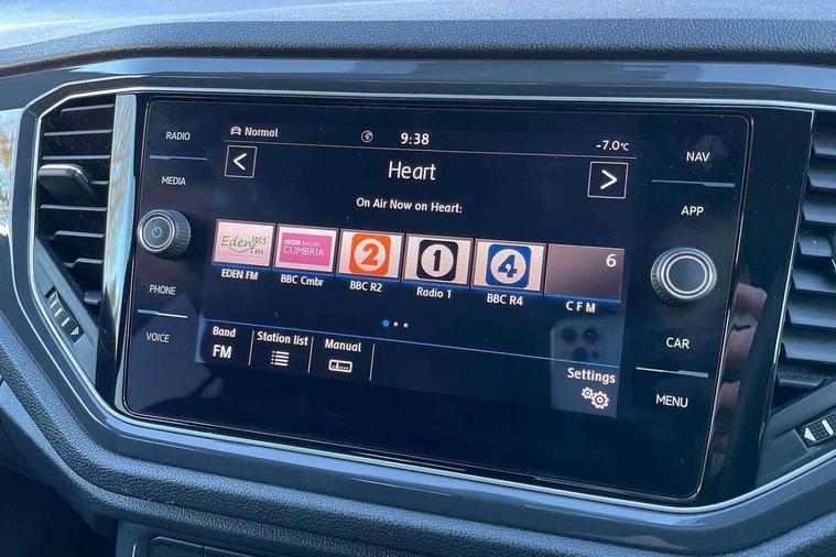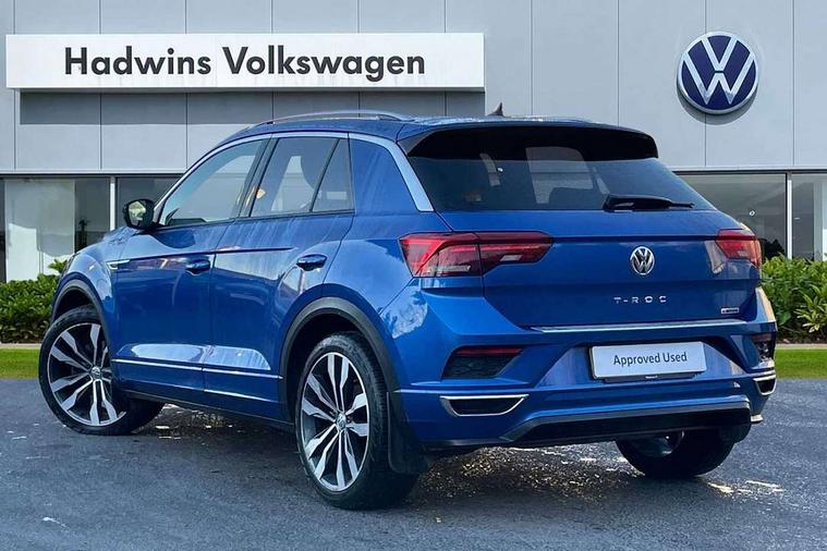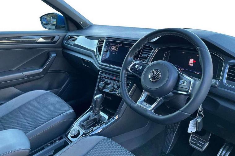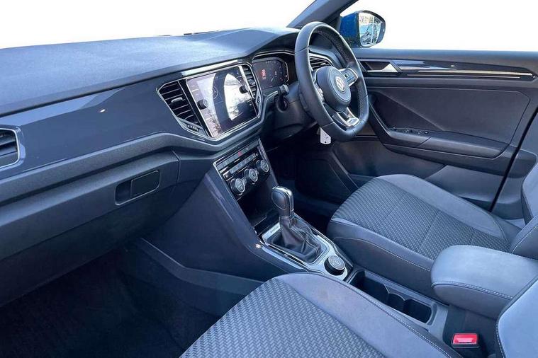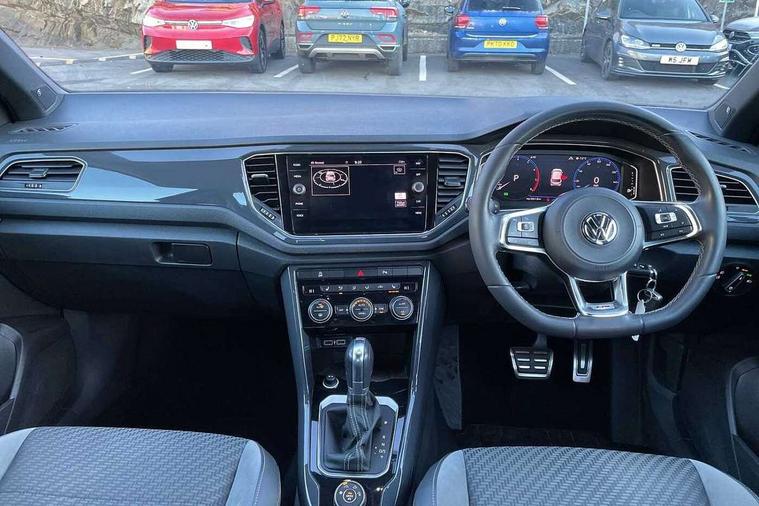 'Lights On' Reminder warning buzzer, 8" touch screen, ACC - Adaptive cruise control with front assist, forward collision warning, distance monitoring, city emergency brake and speed limiter, Active information display, App-Connect, Bluetooth hands free telephone connection, Discover navigation + European map data, Door/tailgate open warning lights, Driver alert system, Infotainment system, Instrument cluster in white, Lane assist, Multifunction computer, Progressive power assisted steering, Voice control system, Warning buzzer and light for front seatbelts unfastened, Four wheel drive, 6 speakers, CD/MP3/WMA, USB and SD card reader, Composition media system, DAB Digital radio, Auto dimming rear view mirror, Automatic activation of hazard warning lights, Automatic headlights, Black wheel arch extensions, Body colour bumpers, Body colour door handles, Body colour door mirrors, Body colour rear roof spoiler, Body colour side skirt, Chrome grille surround, Coming/leaving home lighting function, Electric folding door mirrors, Electrically adjustable and heated door mirrors, Front and rear electric windows, Front fog lights with static cornering function, Front wash/wipe with interval delay, Heated rear windscreen, LED daytime running lights, LED rear lights, Rain sensor, Range adjustable headlights, Rear tinted windows from B pillar back, Rear windscreen washer and wiper with interval delay, Reverse activated kerb-view adjustment on passenger's door mirror, Silver roof rails, Trailer Stability Programme, Twin trapezoid chrome exhaust pipes, 12V power socket in centre console, 3 rear headrests, 60/40 split folding rear seat, Air conditioning - 2 zone electronic climate control, Aluminium pedals, Ambient lighting, Black headlining, Boot lashing points, Chrome door sill trims, Courtesy light delay, Drawer under drivers seat, Driver/front passenger seat height adjustment, Dust/pollen filter, Footwell lights, Front + rear carpet mats, Front centre armrest with storage box and rear air vents, Front cupholders x 2, Front seat back storage pockets, Front sport seats, Glovebox, Height/reach adjust steering wheel, Illuminated vanity mirrors, Isofix preparation for 2 rear child seats, LED reading lights, Load through provision with rear centre armrest and cupholders x2, Luggage compartment cover, removable, Luggage compartment lighting, Storage box in luggage compartment, Storage compartments in doors, USB charging point, Variable boot floor, height adjustable and removable, Winter pack - T-Roc, 3 point height adj front seatbelts + pretensioners, 3 rear 3 point seatbelts, ABS, Driver/Front Passenger airbags, Driver/Passenger whiplash optimised head restraints, DTC - Drag torque control, Electronic parking brake with auto hold, ESC - Electronic Stability Control + traction control, ESP with EDL + ASR, Front and rear curtain airbags, Front assist including city emergency braking, Front passenger airbag deactivation, Front side airbags, Predictive pedestrian protection, Tyre pressure monitor, Alarm with interior protection, Anti-theft wheel bolts, Electronic engine immobiliser, Remote central locking with 2 remote folding keys, Dark grey decorative inserts in dash and door panel, 19" Suzuka alloy wheels, Steel space saver spare wheel,