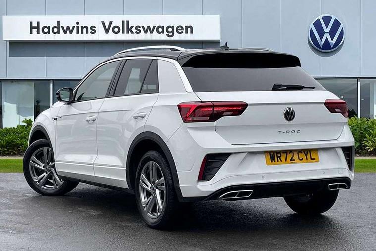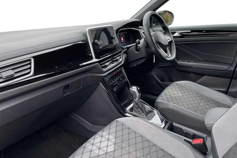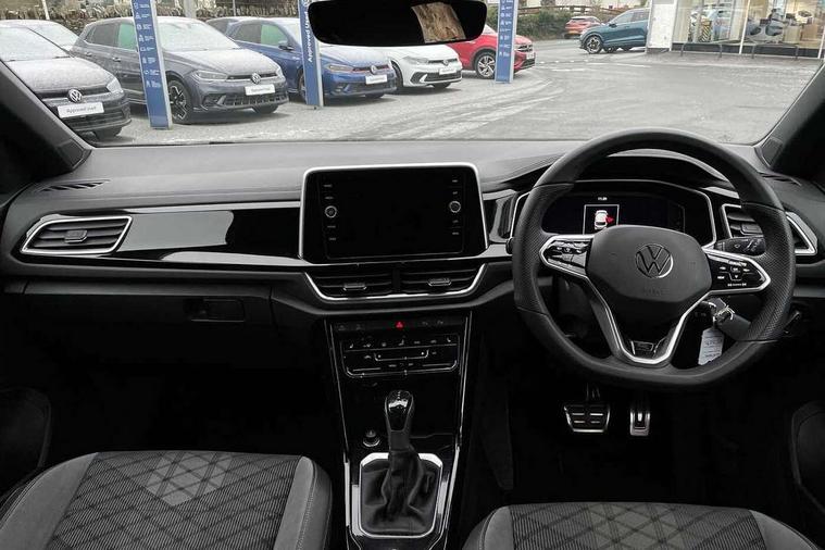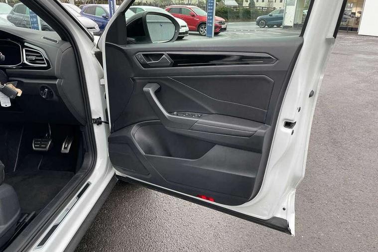 10.25" Digital cockpit pro, Bluetooth mobile phone interface, Driver alert system with fatigue detection, Driver tips and journey analysis, Emergency call service, Lane keeping system Lane Assist, Modified key software - reduce switch off time for key status change to Long no motion, Online services, Park assist including front and rear parking sensors, Service interval indicator, Tailgate/trunk lid release from outside, Think blue trainer driver tips and journey analysis, Warning sound and light for front seatbelts unfastened, Wireless app connect, Battery regeneration during braking, Start/stop function with battery regeneration, Diversity antenna for FM reception, Front and rear 6 speakers, Music playback - MP3, WMA and AAC files, Premium USB cable in choice of either Apple or Android smartphone compatibility, SD card slot, Simultaneous pairing of 2 compatible mobile devices, Title and cover art display, We Connect and We Connect Plus functionality, 3rd brake light, Auto dimming interior rear view mirror, Automatic hazard lights activation under emergency braking, Automatic headlight control with LED separate daytime running lights with coming/leaving home function, Extended roof spoiler, Exterior mirrors aspherical on driver side, convex on front passenger side, External USB type C socket and charging sockets, Front windscreen wiper with intermittent wipe and 4 position delay, Heated rear window, LED Plus headlamps, LED rear combination lamps, LED rear number plate lights, LED tail lamp rear comination lamps, Power windows with comfort operation and circuit breaker, R-Line design body coloured bumpers, Rain sensor, Rear exhaust tailpipe, Rear fog light on one side and reversing lights on both sides, Rear side wing doors, Rear wash/wipe with intermittent wipe setting, Remote electrically foldable door mirrors, puddle lights and reverse activated passenger's door mirror, 12V power socket in centre console, 3 rear head restraints, 3 seat bench in 2nd row, 4 load lashing points in luggage compartment, Air care climatronic air conditoning system with active combination filter and 2-zone temperature control, Black roof lining, Chrome plated radiator grille inserts, air vent surrounds and light switch surrounds, Door and side trim panel with leatherette insert, Drawer under drivers seat, Front + rear carpet mats, Front centre armrest, Front cupholders x 2, Front footwell illumination, Front reading light, Front scuff plates with R logo, Instrument lighting, white adjustable panel illumination, Interior ambient lighting and surround lighting, Interior light delay, Isofix child seat preparation, Leather gearshift handle, Load-through provision with cup holder when folded down ('Unsplit rear seat bench, split folding backrest, with centre armrest), Luggage compartment lighting, Single front passenger seat, Stainless steel pedals, Storage compartment in left and right luggage area, Storage compartment in rear doors, Storage compartments in driver and front passenger doors, Sunvisors with illuminated vanity mirrors, Variable boot floor, height adjustable and removable, Driver assistance pack without proactive passenger protection - T-Roc, 3 point height adj front seatbelts + pretensioners, 3 point seatbelts in outer rear with ECE label, ABS, Child locks on rear doors, Driver and front passenger airbag with front passenger airbag deactivation, Driver and front passenger safety-optimised head restraints, Drivers seatbelt reminder, Electronic parking brake, Electronic Stability Control (ESC) inc EDL (Electronic Differential Lock) and ASR (Traction Control), Front and rear passengers curtain airbag system including front side airbags, Front assist with city emergency braking and pedestrian monitoring, Front seat side impact airbags, Hill start assist, Predictive pedestrian protection, Rear disc brakes, Single tone horn, Tyre pressure loss indicator, Volkswagen roadside assistance, Alarm with interior protection, Anti-theft alarm system with interior monitoring, backup horn, and towing protection, Remote central locking with SAFELOCK, radio remote control with 2 remote control folding keys, Trims for alloy wheels,