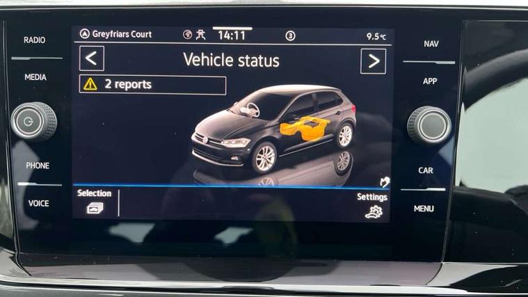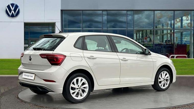Adaptive cruise control without follow-to-stop and speed limiter, Bluetooth mobile phone interface, Digital Cockpit Pro with 10.25" Display, Driver alert system, Dynamic road sign display, Emergency call service, Power assisted speed sensitive steering, Preparation for We connect and We connect plus, Speedo and rev counter, electronic odometer, trip, service interval display and fuel gauge, Standard rear axle, Travel Assist - Lane keeping system and traffic jam assist, Travel assist including emergency assist, Trip computer, Warning signal and warning light for front and rear seatbelts not fastened, Washer fluid level indicator, Wireless app connect, Front wheel drive, Rear shock absorpion, Start-stop system with battery regeneration (recuperation - energy recovery during braking), DAB Digital radio, Diversity antenna for FM reception, Front and rear 6 speakers, Automatic dimming interior rear view mirror, Automatic headlights, Body colour door handles, Body coloured bumpers and radiator grille with chrome trims, Electric front windows, Heat insulating darkened glass in side and rear windows, Heat insulating glass windscreen, LED separate daytime running lights with coming/leaving home function, Power folding adjustable/heated exterior mirrors and front passenger exterior mirror lowering function, Rain sensor, Rear electric windows, Rear fog light, Rear side wing doors, Rear windscreen washer and wiper with interval delay, Third brake light, 12V power socket in centre console, 2 USB-C ports in the front, 2 USB-C charging sockets on the center console in the rear, 3 rear head restraints, 60/40 split folding rear seat and rear seat bench not split, Air care climatronic air conditoning system with active combination filter and 2-zone temperature control, Ambient lighting, Ceramique headliner, Chrome plated radiator grille inserts, air vent surrounds and light switch surrounds, Door and side trim panel, Driver and front passenger seat height adjustment, Driver/passenger sunvisors with illuminated vanity mirrors, Front + rear carpet mats, Front centre armrest, Front footwell illumination, Front seat backrest storage pockets, Front sports comfort seats, Handbrake lever handle in leather, Isofix child seat preparation easy-fit (for two outer rear seats, and front passenger seat) compatible with I-size, Leather trimmed gear knob, LED interior light with switch off delay and dimmer, 2 reading lights front and rear, Luggage compartment cover, Luggage compartment floor, Luggage compartment lighting, Lumbar adjustment for front seats, Multifunction steering wheel, Single front passenger seat, Standard pedal cluster, IQ LED matrix headlights pack - Polo, Light and vision pack - Polo, 3 point height adj front seatbelts + pretensioners, 3x3 point rear seatbelts, ABS, Driver and front passenger airbag with front passenger airbag deactivation, Drivers and front passengers safety optimised head restraints, ESC (Electronic stability control) + EDL (Electronic Differntial lock) and ASR (Traction control), Extended and predictive pedestrian/ cyclist protection, Front curtain and side airbags with center airbag, Front disc brakes, Hill hold control, Manual child lock in rear doors, Rear drum brakes, Single tone horn, Tyre pressure loss indicator, Alarm with interior protection, Anti-theft alarm system with interior monitoring, backup horn, and towing protection, Anti-theft wheel bolts, Electronic engine immobiliser, Chrome applications on rotary light, mirror adjustment, window regulator switches, outlet with frame in black, Deep iron gloss decorative inserts in dash and front door panels, Low rolling resistance tyres,
