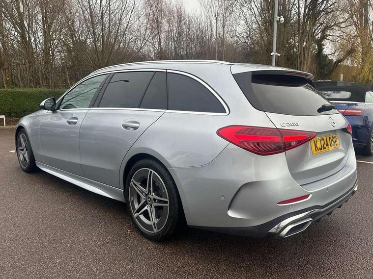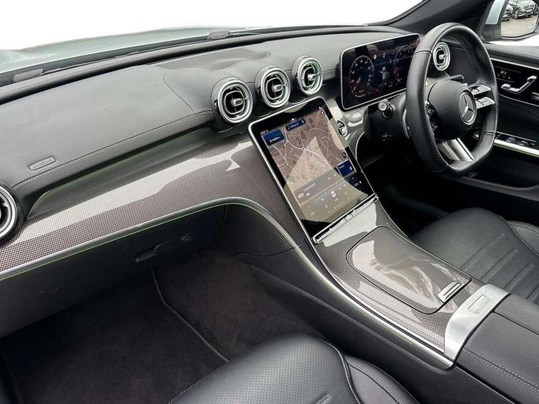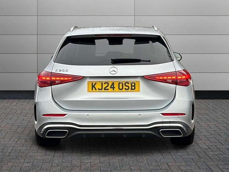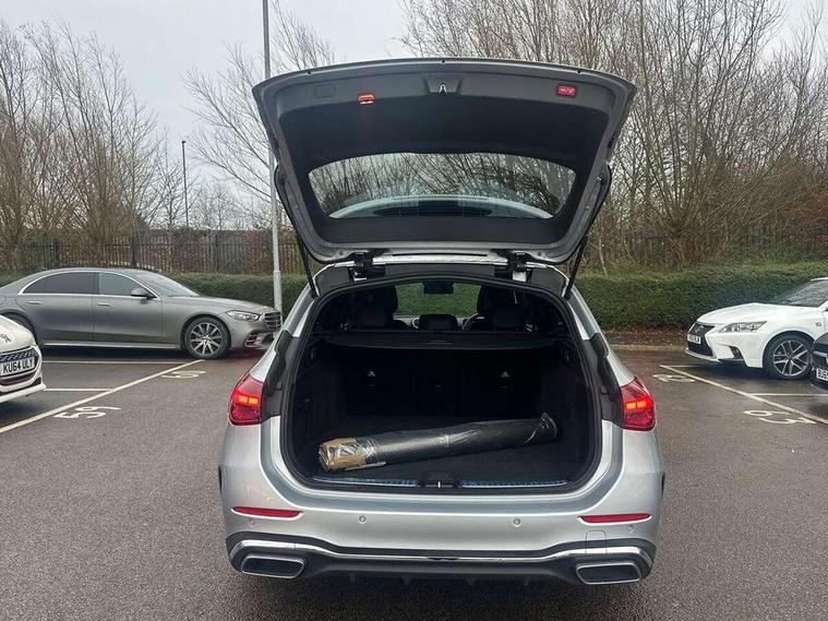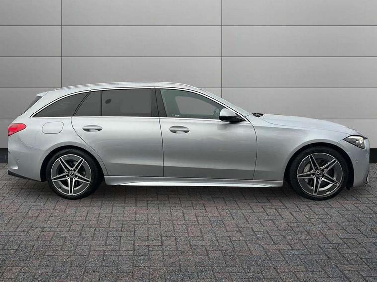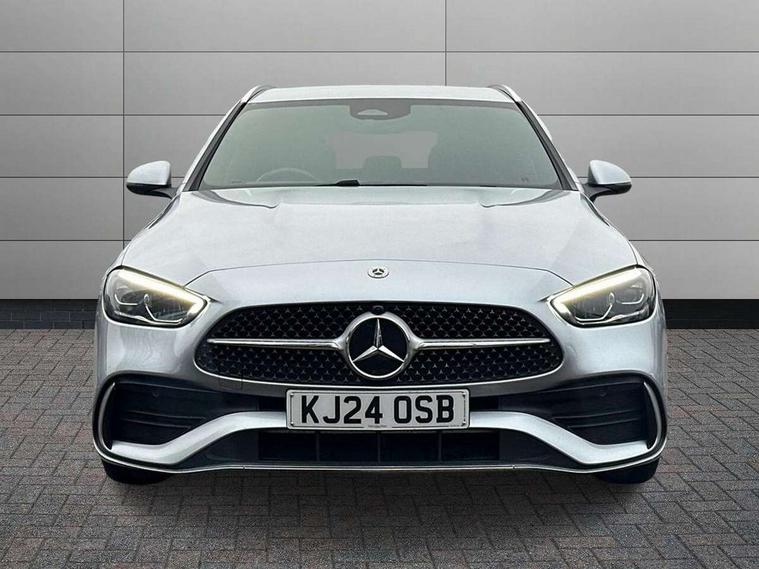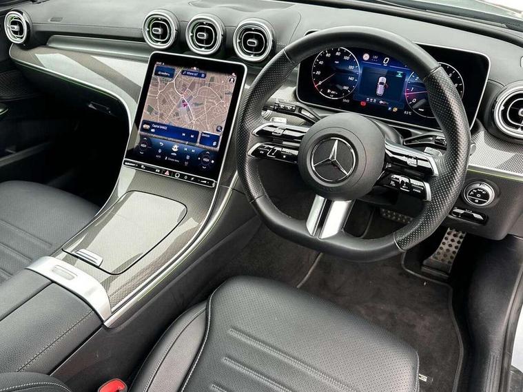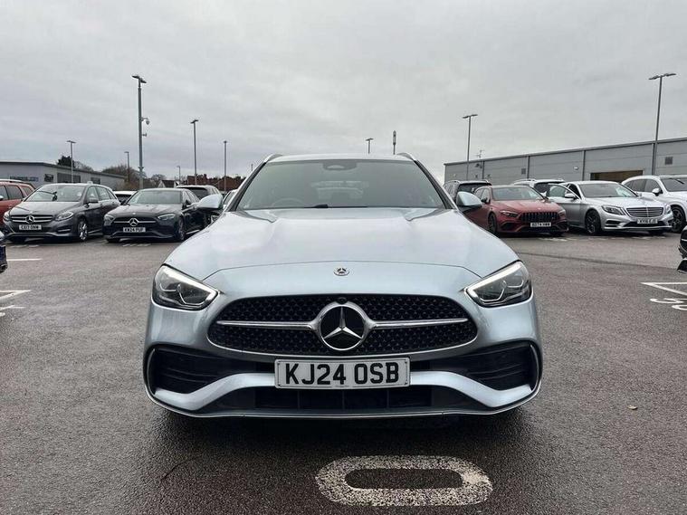 11.9" high resolution multimedia colour display, 12.3" digital instrument cluster display, Active lane keeping assist, Active parking assist with PARKTRONIC, Attention assist, Blind spot assist, Cruise control with speedtronic variable speed limiter, DYNAMIC SELECT with a choice of driving modes (Comfort, ECO, Sport, Sport+, Individual), E-call, Extended MBUX functions, Finger print sensor, Fluorescent jacket for driver, Hard disc navigation, MBUX navigation premium, Mercedes me remote services, Outside temperature gauge, Service indicator (ASSYST), Smartphone integration, Sports direct steer speed sensitive steering, Status display for rear seat belts in instrument cluster, Tailgate, Traffic sign assist, Wireless charging system for mobile devices, 9G TRONIC 9 speed automatic transmission, Petrol Particulate Filter, Sport suspension, DAB Digital radio, MBUX multimedia system, Adaptive brake lights, Adaptive high beam assist, Aluminium roof rails, AMG body styling front apron, rear apron and side skirts, AMG Line exterior, Body coloured bumpers, Body coloured door mirrors, Electric windows with one touch opening/closing and obstruction sensors, Electrically adjustable and heated door mirrors, Heat insulating dark tinted glass, LED daytime running lights, LED high performance headlamps, LED Indicators, LED tail lights, LED third brake light, Radiator diamond grille with integrated Mercedes Benz star and louvre silver with chrome pins, Rain sensor with automatic windscreen wiper activation, Rear side wing doors, Rear wiper, Two visible exhaust pipes integrated into rear bumper, 3 seat bench in 2nd row, 40:20:40 split folding rear bench seat, Ambient lighting premium, Ambient lighting with projection of brand logo, AMG floor mats, AMG line interior, Artico man-made leather upholstery, Auto Mercedes-Benz child seat recognition sensor, Black roof liner, Double cupholder in centre console, Electrically height/reach adjustable steering column, Folding rear seat backrest, Front and rear head restraints, Gearshift paddles on steering wheel, Heated front seats, Illuminated door sills with Mercedes Benz lettering, Illuminated glove compartment stowage, Load compartment cover, Multifunction sports steering wheel in nappa leather, Rear top tether child seat ISOFIX attachment, Single front passenger seat, Sports seats, Sunvisors with illuminated vanity mirrors, THERMATIC 2 zone automatic climate control, Boot comfort package - C Class, Easy pack tailgate - C Class, Interior light package - C Class, Memory package - C Class, Mirror package - C Class, Parking package with reversing camera - C Class, Stowage space pack - C Class, USB package plus - C Class, 3 rear 3 point seatbelts, Active bonnet pedestrian safety measure which detects an impact and raises bonnet, Active brake assist, Adaptive brake system with HOLD function and brake drying in the wet, Anti-lock braking system (ABS), Black seat belts, Brake calipers with Mercedes-Benz lettering + perforated front brake discs, Child proof door locks, Drivers knee airbag, Drivers pelvis airbag, Dual stage driver/passenger airbags, Electric parking brake, Electronic Stability Programme (ESP), Front centre airbag between driver and front passenger seats, Front side airbags, Tyre pressure monitoring system, Warning triangle and first aid kit, Window airbags for driver, front passenger and rear passenger, Antitheft alarm system, Interior monitoring system and Increased antitheft protection, Central locking with interior switch, automatic locking and crash sensor with emergency opening function, Chrome surround in electric key, Keyless Go, Urban guard vehicle protection plus, Dashboard, instrument panel and beltlines in ARTICO man made leather in nappa look, Metal structure trim element with centre console in metal structure finish, 18" AMG 5 spoke design aerodynamically optimised alloy wheels painted in tantalite grey with high sheen finish, TIREFIT with tyre inflation compressor,