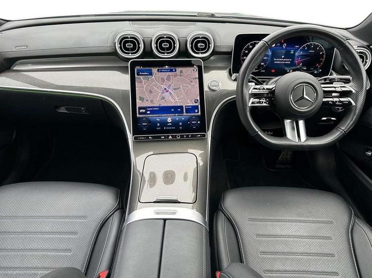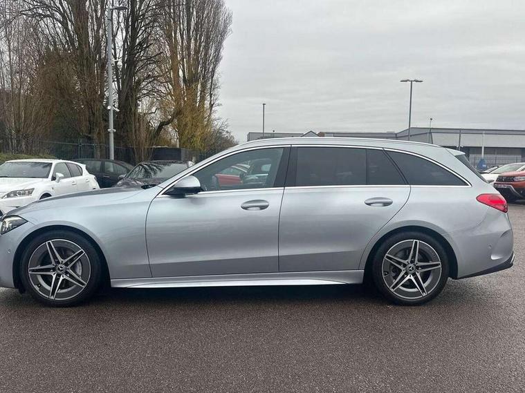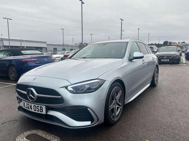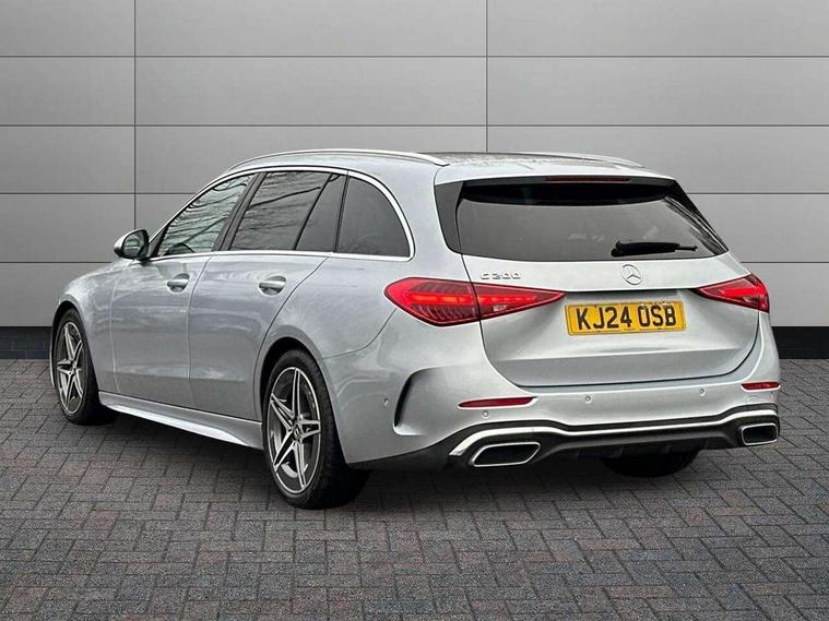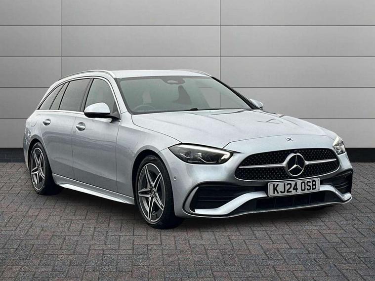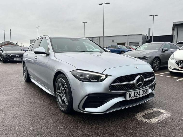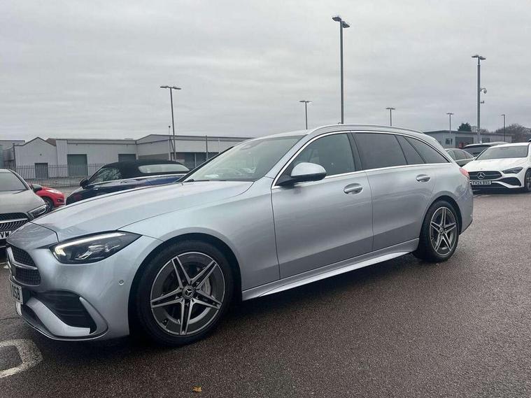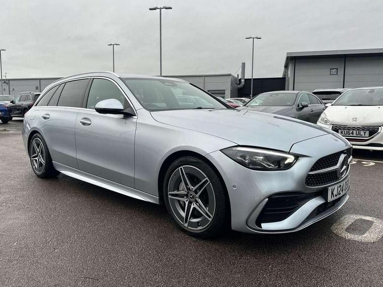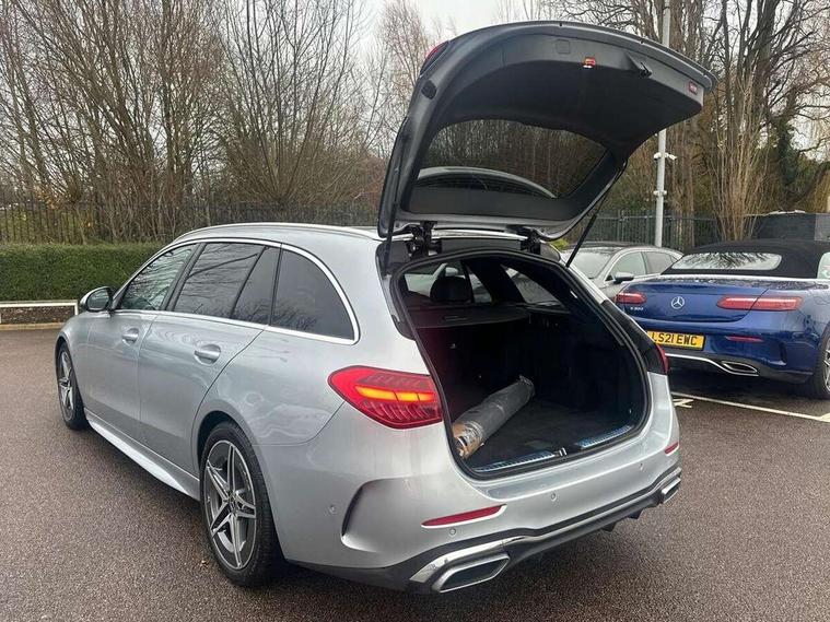 11.9" high resolution multimedia colour display, 12.3" digital instrument cluster display, Active lane keeping assist, Active parking assist with PARKTRONIC, Attention assist, Blind spot assist, Cruise control with speedtronic variable speed limiter, DYNAMIC SELECT with a choice of driving modes (Comfort, ECO, Sport, Sport+, Individual), E-call, Extended MBUX functions, Finger print sensor, Fluorescent jacket for driver, Hard disc navigation, MBUX navigation premium, Mercedes me remote services, Outside temperature gauge, Service indicator (ASSYST), Smartphone integration, Sports direct steer speed sensitive steering, Status display for rear seat belts in instrument cluster, Tailgate, Traffic sign assist, Wireless charging system for mobile devices, 9G TRONIC 9 speed automatic transmission, Petrol Particulate Filter, Sport suspension, DAB Digital radio, MBUX multimedia system, Adaptive brake lights, Adaptive high beam assist, Aluminium roof rails, AMG body styling front apron, rear apron and side skirts, AMG Line exterior, Body coloured bumpers, Body coloured door mirrors, Electric windows with one touch opening/closing and obstruction sensors, Electrically adjustable and heated door mirrors, Heat insulating dark tinted glass, LED daytime running lights, LED high performance headlamps, LED Indicators, LED tail lights, LED third brake light, Radiator diamond grille with integrated Mercedes Benz star and louvre silver with chrome pins, Rain sensor with automatic windscreen wiper activation, Rear side wing doors, Rear wiper, Two visible exhaust pipes integrated into rear bumper, 3 seat bench in 2nd row, 40:20:40 split folding rear bench seat, Ambient lighting premium, Ambient lighting with projection of brand logo, AMG floor mats, AMG line interior, Artico man-made leather upholstery, Auto Mercedes-Benz child seat recognition sensor, Black roof liner, Double cupholder in centre console, Electrically height/reach adjustable steering column, Folding rear seat backrest, Front and rear head restraints, Gearshift paddles on steering wheel, Heated front seats, Illuminated door sills with Mercedes Benz lettering, Illuminated glove compartment stowage, Load compartment cover, Multifunction sports steering wheel in nappa leather, Rear top tether child seat ISOFIX attachment, Single front passenger seat, Sports seats, Sunvisors with illuminated vanity mirrors, THERMATIC 2 zone automatic climate control, Boot comfort package - C Class, Easy pack tailgate - C Class, Interior light package - C Class, Memory package - C Class, Mirror package - C Class, Parking package with reversing camera - C Class, Stowage space pack - C Class, USB package plus - C Class, 3 rear 3 point seatbelts, Active bonnet pedestrian safety measure which detects an impact and raises bonnet, Active brake assist, Adaptive brake system with HOLD function and brake drying in the wet, Anti-lock braking system (ABS), Black seat belts, Brake calipers with Mercedes-Benz lettering + perforated front brake discs, Child proof door locks, Drivers knee airbag, Drivers pelvis airbag, Dual stage driver/passenger airbags, Electric parking brake, Electronic Stability Programme (ESP), Front centre airbag between driver and front passenger seats, Front side airbags, Tyre pressure monitoring system, Warning triangle and first aid kit, Window airbags for driver, front passenger and rear passenger, Antitheft alarm system, Interior monitoring system and Increased antitheft protection, Central locking with interior switch, automatic locking and crash sensor with emergency opening function, Chrome surround in electric key, Keyless Go, Urban guard vehicle protection plus, Dashboard, instrument panel and beltlines in ARTICO man made leather in nappa look, Metal structure trim element with centre console in metal structure finish, 18" AMG 5 spoke design aerodynamically optimised alloy wheels painted in tantalite grey with high sheen finish, TIREFIT with tyre inflation compressor,