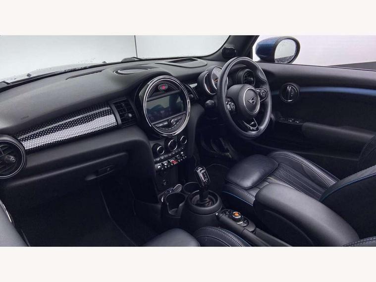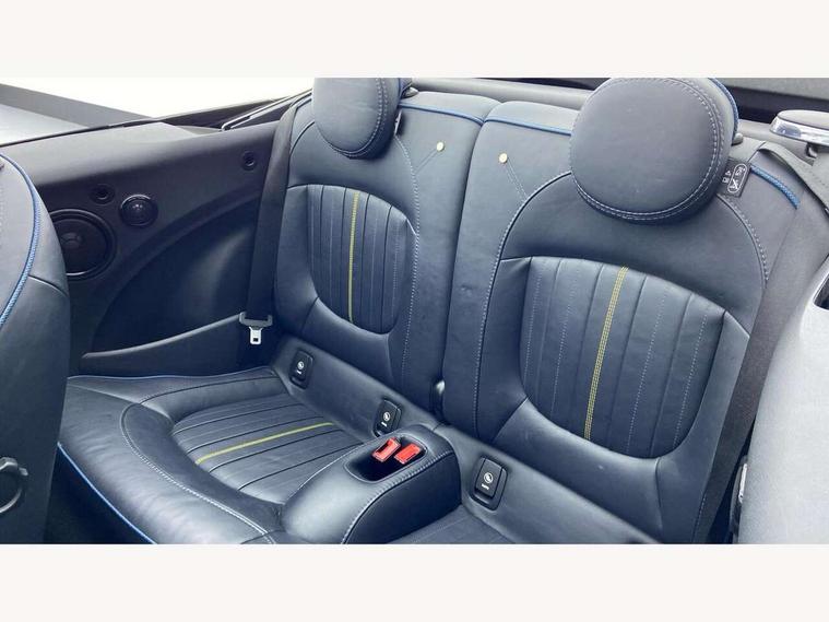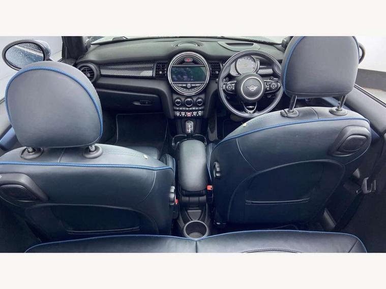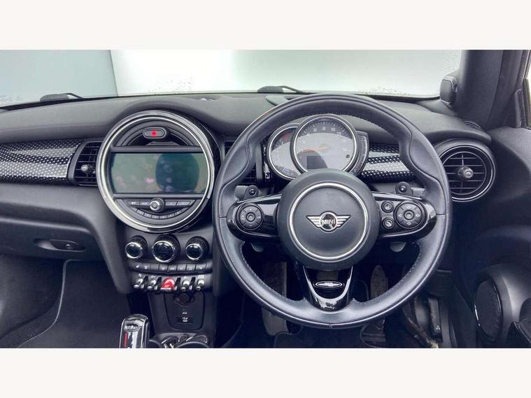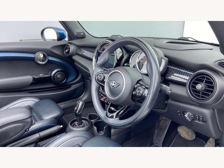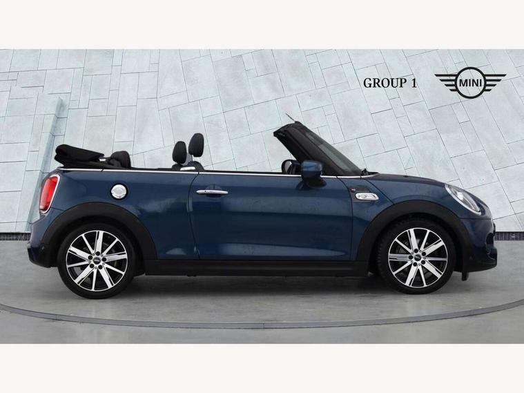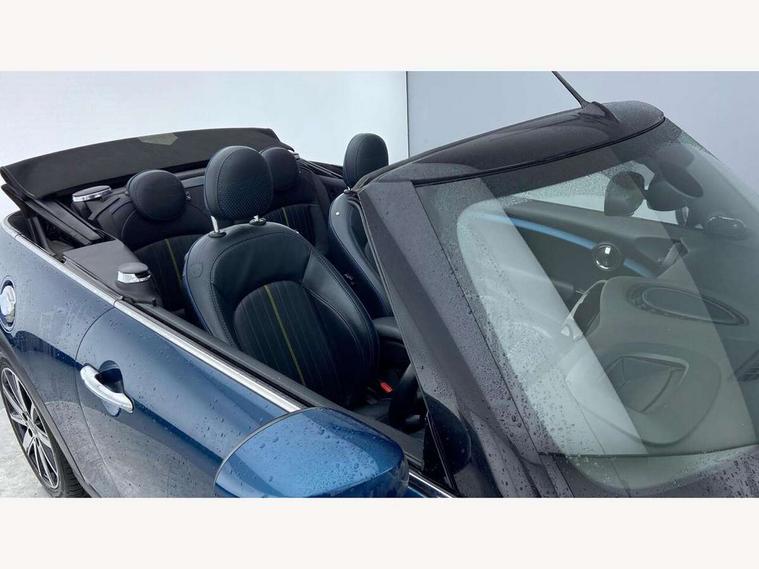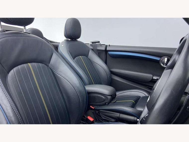 Automatic start/stop function with brake energy recuperation, Compatible mobile phone bluetooth with audio streaming, Electro-mechanical speed dependant steering assistance, Head up Display, Instrument cluster, MINI Driving Modes - centre toggle switch to control driving setting (sport, mid and green), Mini E-call, MINI TeleServices, On board computer, Rear park distance control, Service interval indicator, Double Vanos system, Fully variable valve control, High precision injection, Performance Control, Steptronic sport transmission with double clutch, 6.5" touchscreen with LED ring, FM tuner and DAB digital radio, Harman Kardon Hi Fi system with amplifier and 12 speakers, Automatic headlight activation switch, Body colour mirror caps, Bonnet scoop, Chrome border honeycomb structure radiator grille with S badge, Chrome plated fuel cap, Dynamic brake lights, Electric windows, Fully electric black softtop with integrated sunroof functionality, Heated rear window, Heated windscreen washer jets, LED headlight with closed ring and daytime driving lights, Metal door sill strips with Cooper S imprint, Metallic paint, Model logo Cooper S on right of tailgate, Rain sensor window wipers, Rear fog lights, Rear LED lights with union jack design, Side scuttle panel with integrated indicator, Sidewalk bonnet stripes with pin lines, Sidewalk design softop in black with Sidewalk pattern in titanium grey, Sidewalk side scuttle badging, Sun/heat protection glass, Two central exhaust tailpipes with chrome finisher, White indicator lenses, 12V Accessory socket in centre console, 4 lashing eyes in luggage compartment, 50/50 split folding rear seats, Chrome interior highlights, Colour line - Carbon black, Cupholders, Easy Load boot handles, Front and rear isofix with front passenger airbag deactivation, Front headrests, Front seatback storage pockets, Glove compartment, Height and length steering column adjustment, Interior lighting with 12 basic colours selectable via toggle switch in roof, Leather gearshift lever and handbrake gaiters, LED reading lights, vanity mirror lights, front foot well light and spotlight on front seats, Mechanical seat adjustment, driver seat height adjust, forward/back and front seats backrest, Mini logo projection on floor from drivers exterior mirror, MINI Yours lounge leather upholstery with Sidewalk seat badging, Multifunction steering wheel, Rear headrests, Sidewalk design brushed alloy door entry strips, Sidewalk design door bezels, Sidewalk floor mats with contrasting surround in dark petrol and decorative stitching in energetic yellow, Sidewalk illuminated interior surfaces with cockpit pattern in petrol and dark silver, Sidewalk sport leather steering wheel with Sidewalk badging and contrast sticting in petrol, Storage compartments in doors, Sunvisors with vanity mirrors, Comfort plus pack - Mini Convertible, Convertible pack with comfort access - Mini Convertible, Navigation plus pack - Mini Convertible, 3 point seatbelts on all four seats, 6 Airbags - front, side and seat belt tensioners, Active rollover protection, Anti-lock braking system (ABS), DSC - Dynamic Stability Control, Front and rear disc brakes, Hill start assist, Two tone horn, Tyre pressure monitoring system, Alarm system with tilt sensor, monitoring doors, bonnet interior and tailgate, Electronic vehicle immobiliser, Keyless Go, Chequered black interior trim, 17" Scissor spoke 2 tone alloy wheels, Tool kit, Tyre repair kit,