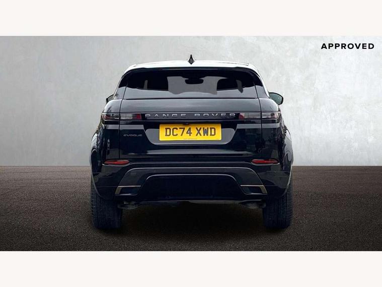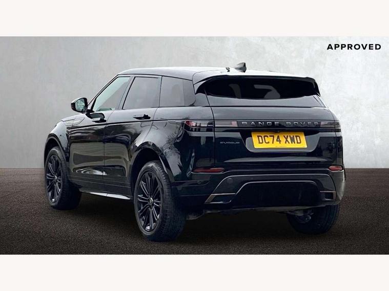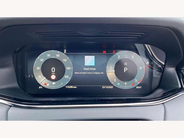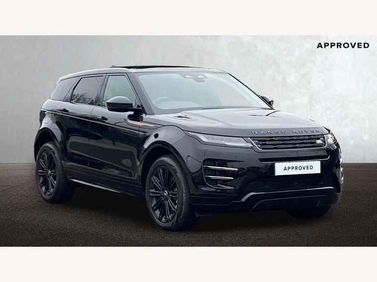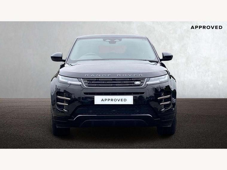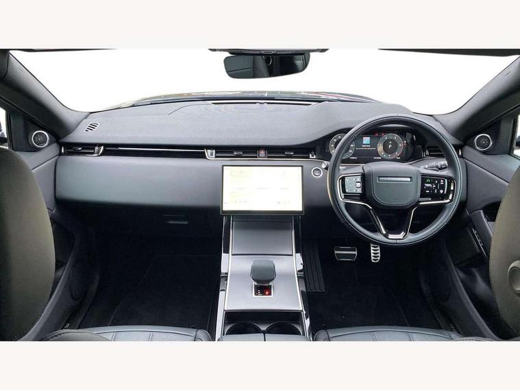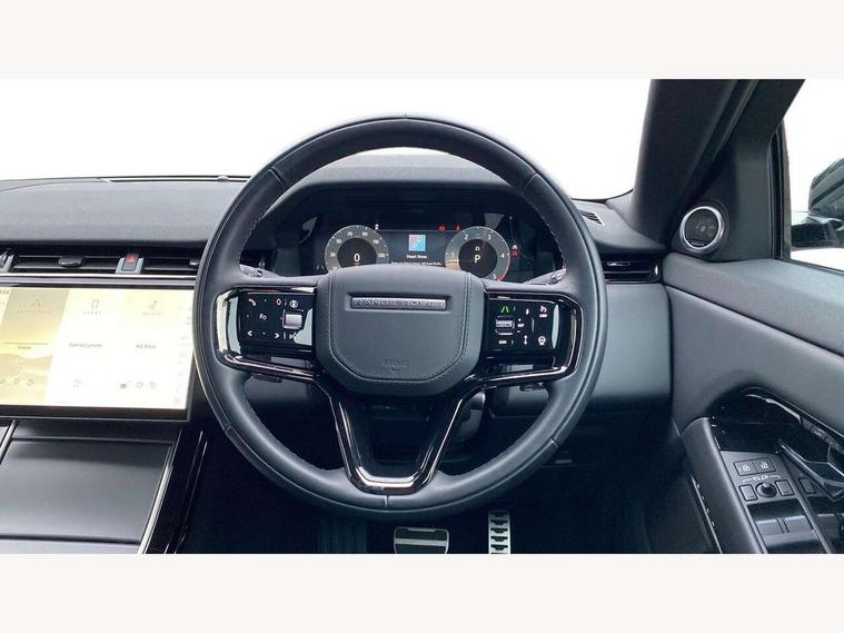 11.4" touch screen, Adaptive cruise control, Android Auto, Apple car play, Blind spot assist, Bluetooth connectivity, Brake pad wear indicator warning light, Driver condition monitor, eCall emergency system, Eco mode, Electronic power assisted steering (EPAS), Front and rear parking aid, InControl remote, Interactive driver display, Land Rover InControl apps, Lane keep assist, Pivi pro connected includes diamond pivi variant, smart settings, connected navigation pro, nuance speech licence, Powered tailgate/boot lid, Rear collision monitor, Rear traffic monitor, Traffic sign recognition with adaptive speed limiter, Voice control system, Wireless device charging, All terrain progress control, Diesel exhaust fluid (DEF) large tank, Efficient Driveline, Large fuel tank, Passive suspension, Terrain Response 2, Digital Audio Broadcast radio-DAB, Steering wheel mounted controls, Acoustic laminated windscreen, Auto headlights, Automatic headlight levelling, Electric windows with one touch open/close and anti trap, Flush deployable exterior door handles, Front and rear recovery eyes, Heated rear window with timer, Heated washer jets, Heated windscreen, Pixel LED headlights with signature DRL and LED tail Lights, Power fold, auto-dimming, heated door mirrors with approach lights and auto dimming driver side, Rain sensing windscreen wipers, Rear animated directional indicators, Rear fog lights, Rear side wing doors, Rear wiper, Side repeater indicators in mirror, Tailgate spoiler, Third brake light, Winter wiper park position, 14 way driver memory electric front seats with 2 way manual headrests + 4 way lumbar support, bolsters, 40:20:40 split folding rear seats with centre headrest and armrest, Ambient interior lighting, Bright metal pedals, Carpet mats, Chrome tread plates with range rover branding Includes stainless steel loadspace scuff plate with etched graphic, Customer configurable single point entry, Electrically adjustable steering column with memory function and easy entry/exit, Front and rear cupholders, Heated steering wheel, Isofix system on outer rear seats, Overhead lighting console, Overhead stowage for sunglasses, Passive front head restraints, Rear air vents, Rear head restraints, Satin chrome gearshift paddles, Single passenger seat, Sunvisors with illuminated vanity mirrors, Twin sliding front centre armrest, Online pack with data plan - Evoque, Power socket pack 2 - Evoque, 3 rear 3 point seatbelts, Anti-lock braking system (ABS), Brake hold function, Customer configurable autolock, DSC - Dynamic Stability Control, Electronic brake force distribution, Electronic parking brake, Electronic traction control, Emergency braking, Front and rear seatbelt reminder, Hill descent control, Hill launch assist, Low traction launch, Occupant protection assist, Passenger seat occupant detector, Power operated child locks, Roll stability control, Six airbags - Driver and passenger airbags/driver knee airbag/front side airbag and curtain airbags, Torque vectoring brake, Tyre pressure monitoring system, Alarm, Immobiliser, Intrusion sensor, Keyless entry, Locking wheel nuts,