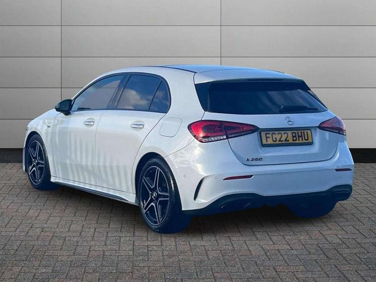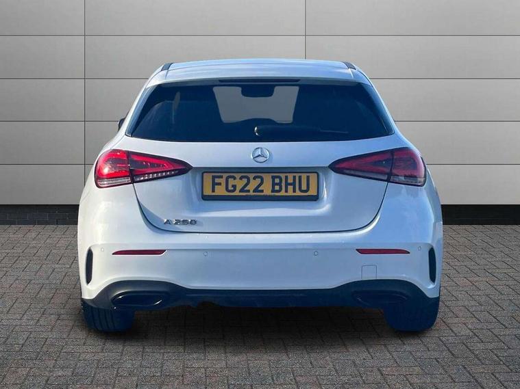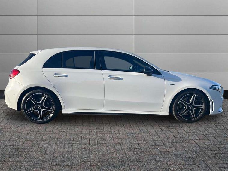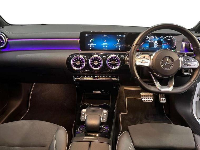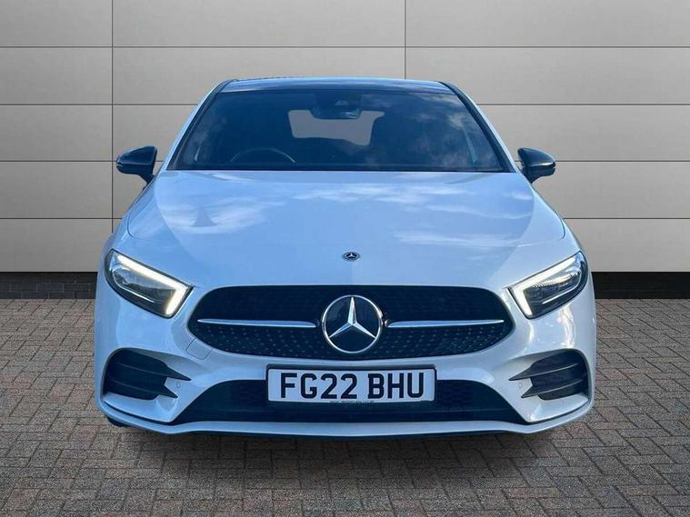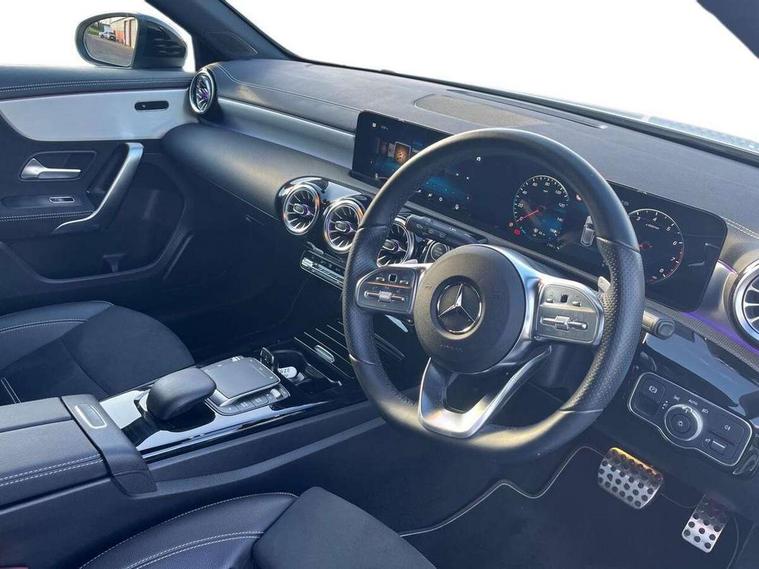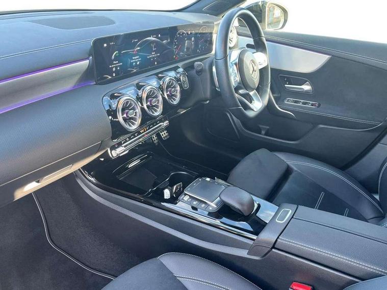 10.25" Digital instrument cluster display screen, 10.25" media display, 180 degree rear view camera with parking guidelines, Active parking assist with visual and audible warning of detected obstacles, Attention assist, Brake pad wear indicator warning light, Car wash mode, Direct steering, Dual bluetooth interfaces, DYNAMIC SELECT with a choice of driving modes (ECO, Comfort, Sport and Individual), ECO start/stop function, Fluid level warning indicator for fuel, oil, coolant and washer fluid, Hard-disk navigation, Hey Mercedes Voice activation, Lamp failure indicator, Lane keeping system, Mercedes me connect including emergency call system, accident recovery, breakdown and maintenance management, Mercedes me remote services, Outside temperature gauge, Owners manual in English, Pre-installation for private car sharing, Preinstallation for Mercedes Benz link, Service indicator (ASSYST), Smartphone integration with Apple CarPlay and Android auto, Traffic sign assist, Trip computer, Ultrasonic sensors positioned in the front and rear bumpers, Lowered comfort suspension, Rear axle multi-link, 10 speakers, 2 USB ports (type C) in rear stowage compartment and one in front of center console, DAB Digital radio, MBUX multimedia system with DAB digital radio and touchpad including satellite navigation, Mercedes-Benz sound system - 100W, 4 Electric Front and Rear windows, Adaptive brake lights, AMG bodystyling - Front apron with splitter in chrome, rear apron with chrome trim and chrome visible trim elements in tailpipe, Automatic headlights, Black weather strip, Body colour bumpers, Body colour door handles, Body colour side skirt, Body coloured door mirrors, Electric adjustable and heated door mirrors with integrated LED side indicators, Exclusive diamond radiator grille, Exhaust system - Twin visible tailpipes in polished stainless steel, Headlamp assist automatic headlamp activation, Heated glass rear windscreen + timer control, High gloss black beltline, LED daytime running lights, LED High level third brake light, LED tail lamp, Multibeam LED headlights with adaptive highbeam assist plus, Panoramic sliding sunroof, Privacy glass, Radio aerial, Rain sensing windscreen wipers with two sensitivity settings, Rear fog lights, Rear side wing doors, Rear wiper, Window line trim strip in high gloss black, 3 seat bench in 2nd row, 3 Spoke flat bottom leather multi function steering wheel with perforated leather in grip area, 40:20:40 split folding rear seats, Artico man-made leather/Microfibre Dinamica upholstery with contrast stitching in light grey, Auto Mercedes-Benz child seat recognition sensor, Black air vents with surround in silver chrome, Black roof lining, Brushed stainless steel sports pedals with rubber studs, Controller on centre console with chrome surround, Floor mats with black top stitching and embroidered edition logo and piping in light grey, Front centre armrest with storage compartment, Front seat backs luggage nets, Front seat cushion length adjustment, Galvanished gear shift paddles on steering wheel, Heated front seats, Height/reach adjustable steering column, Illuminated front door sills with changeable cover, Interior lighting - 64 colour Ambient lighting, Interior mirror with reading lamps in black and frameless, Rear armrest with 2 cupholders, Rear head restraints, Seat occupancy sensor for front passenger seat, Single front passenger seat, Sports seats with integrated headrests, Stowage compartment in centre console with retractable cover, Sunvisors with illuminated vanity mirrors, Touchpad on center console, Twin front cupholders, Two zone thermotronic luxury automatic climate control, Light and sight pack - A Class, Mirror package - A Class, Night pack - A Class Saloon/Hatchback, Seat comfort pack - A Class, 3 rear 3 point seatbelts, ABS with Brake Assist, Active bonnet, Adaptive brake assist with hold function and hill start assist, Black seatbelts, Childproof locks manually operated for rear doors and electrically operated for rear power windows, Crash responsive emergency lighting, Driver and passenger head and side airbags, Drivers knee airbag, Dual stage driver/passenger airbags, Electronic parking brake, ESP curve dynamic assist, ESP with ASR, Front and rear seatbelt reminder, Front brake callipers with Mercedes Benz lettering, ISOFIX and top tether child seat fixing points in two outer rear seats, Perforated front brake discs, Tyre pressure monitoring system, Warning triangle and first aid kit, Window airbags, Alarm system/interior protection/immobiliser, Keyless entry lock/unlock, Keyless Go, Remote central locking and crash sensor with emergency opening function, Urban guard vehicle protection system with immobiliser and interior protection, Matrix look light longitudinal grain aluminium trim element, 18" AMG 5 twin spoke light alloy wheels aerodynamically optimised painted in black with highsheen finish, Summer tyres, Tirefit sealant kit,