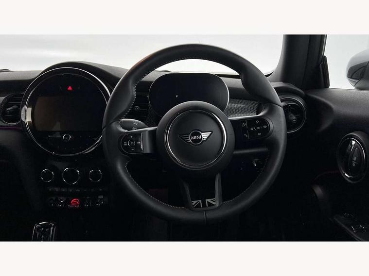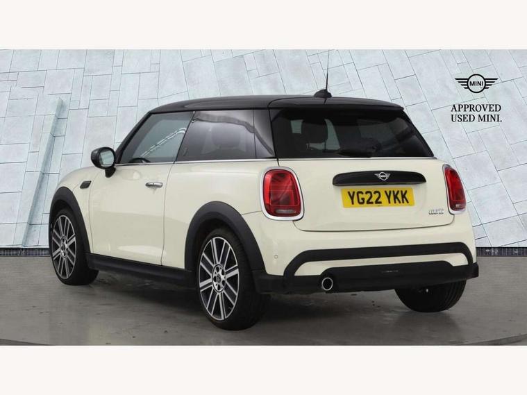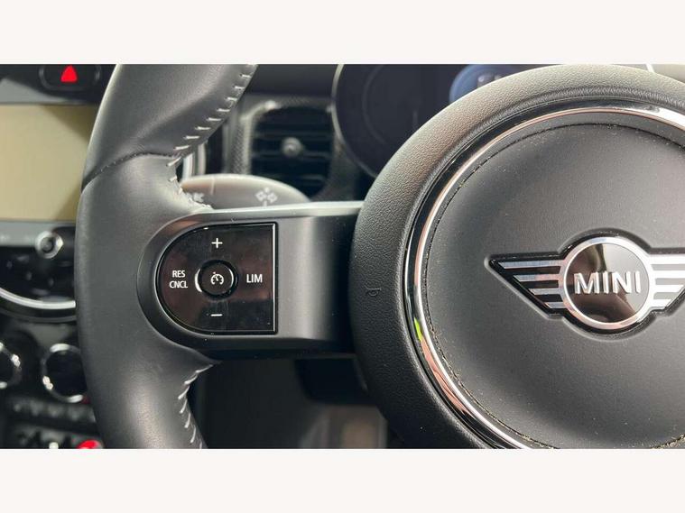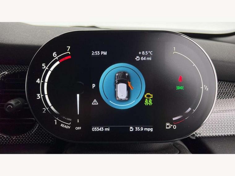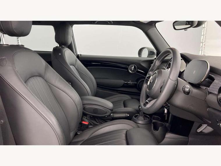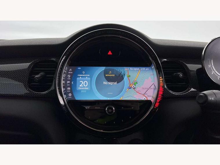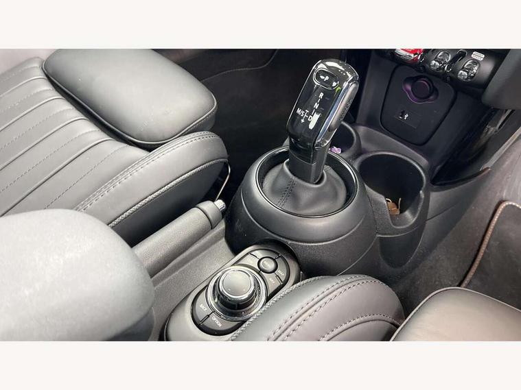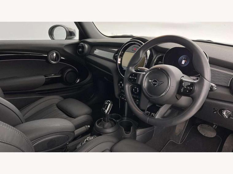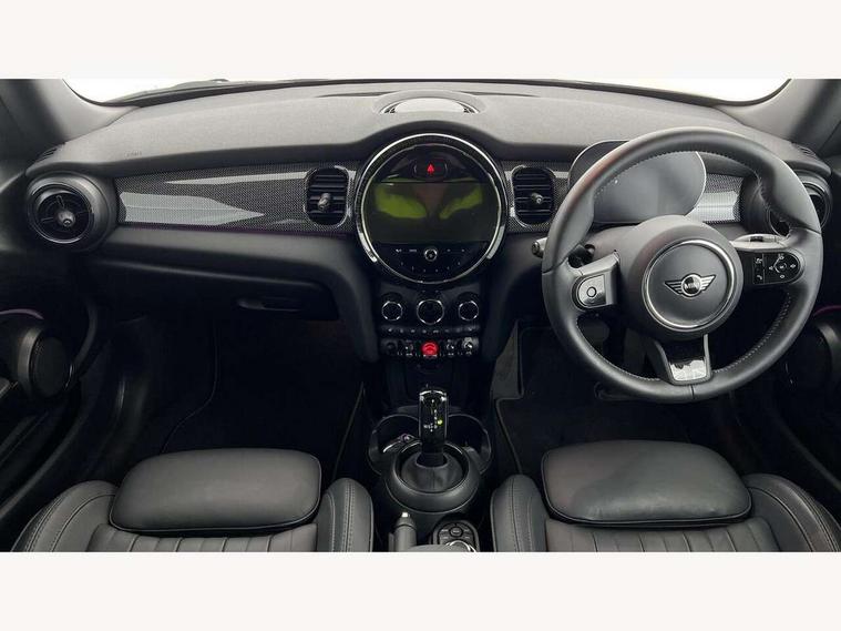 Apple CarPlay, Automatic start/stop function with brake energy recuperation, Compatible mobile phone bluetooth with audio streaming, Cruise control with brake assist, Electro-mechanical speed dependant steering assistance, Flexible car sharing preparation, Instrument cluster, MINI Driving Modes - centre toggle switch to control driving setting (sport, mid and green), Mini E-call, MINI TeleServices, On board computer, Rear park distance control, Service interval indicator, Double Vanos system, Fully variable valve control, High precision injection, Performance Control, Steptronic transmission with double clutch, 8.8" touchscreen with LED ring, FM tuner and DAB digital radio, 3rd brake light, Automatic headlight activation switch, Body colour fuel filler cap, Chrome line exterior - radiator grille bars, tailgate handle, lower front grille grating and rear central fog-light, Dynamic brake lights, Electric front windows, Heated rear window, Heated windscreen washer jets, LED headlight with closed ring and daytime driving lights, Metal door sill strips with MINI imprint, Model logo Cooper on right of tailgate, Rain sensor window wipers, Rear fog lights, Rear LED lights with union jack design, Rear window wiper, Side scuttle panel with integrated indicator, Sun/heat protection glass, White indicator lenses, 12V Accessory socket in centre console, 2 seat bench in 2nd row, 4 lashing eyes in luggage compartment, 60/40 split folding rear seat, Carbon black colour line - Knee roll and door armrest, Chrome interior highlights, Chrome line interior - air vents, gear lever base, door handles and speakers in doors, Cupholders, Front and rear head restraints, Front and rear isofix with front passenger airbag deactivation, Front floor mats in velour, Glove compartment, Height and length steering column adjustment, Interior lighting with 12 different colours across the dashboard, underneath door bezel with illuminated laser-engraved design on central display, Leatherette gearshift lever and handbrake gaiters, LED reading lights, vanity mirror lights, front foot well light and spotlight on front seats, Manual air conditioning, Mechanical seat adjustment - forward/back & backrest for front seats and driver seat height adjust, MINI yours badge on exterior pillar, Multifunction steering wheel, Passenger seat height adjuster, Satellite grey headlining including grab handles and clothes hooks, Single front passenger seat, Storage compartments in doors, Sunvisors with vanity mirrors, Tool kit, Walknappa leather steering wheel with grey seam and MINI Yours badge on Piano Black lower steering wheel spoke, 3 point seatbelts on all four seats, 6 Airbags - front, side, head and seat belt tensioners, Anti-lock braking system (ABS), DSC - Dynamic Stability Control, Front and rear disc brakes, Single tone fanfare horn, Tyre pressure monitoring system, Alarm system with tilt sensor, monitoring doors, bonnet interior and tailgate, Electronic vehicle immobiliser, Start/stop toggle with keyless go,