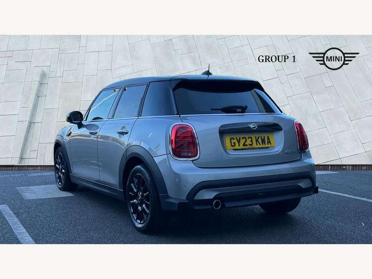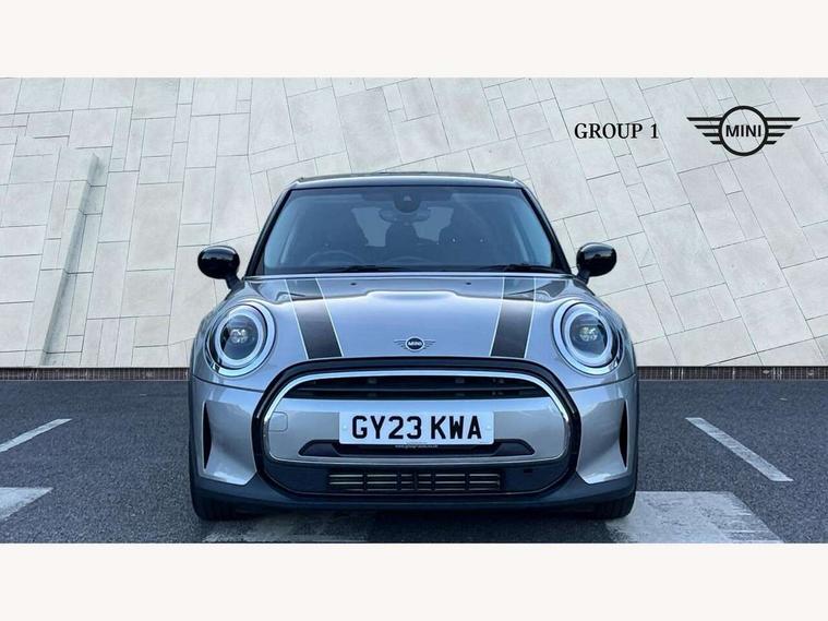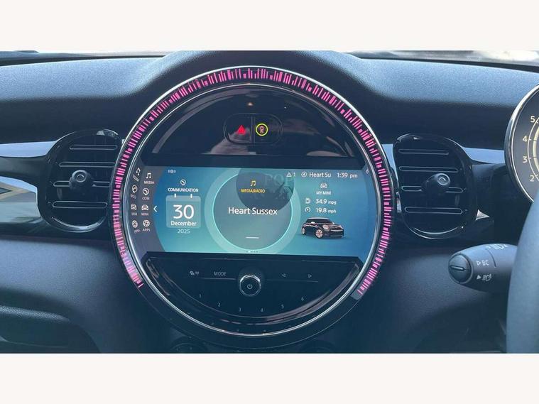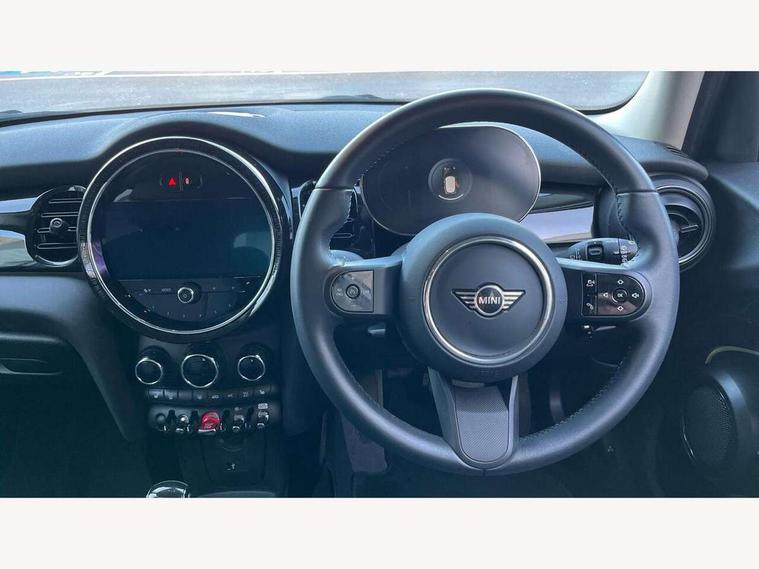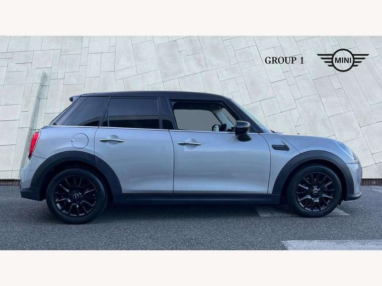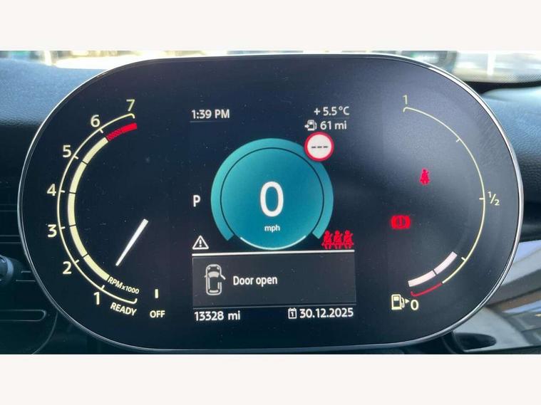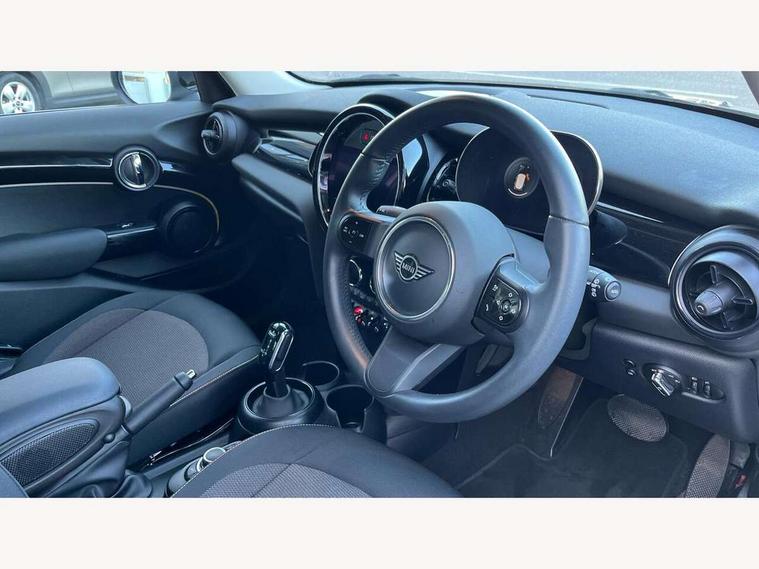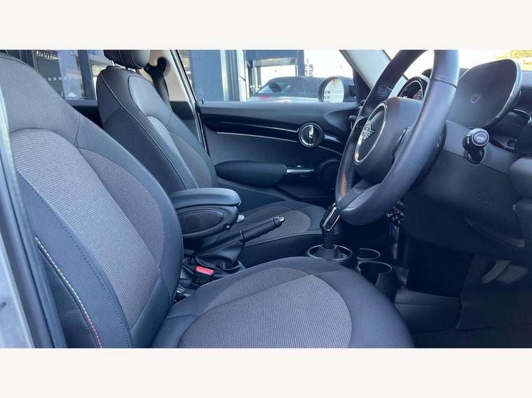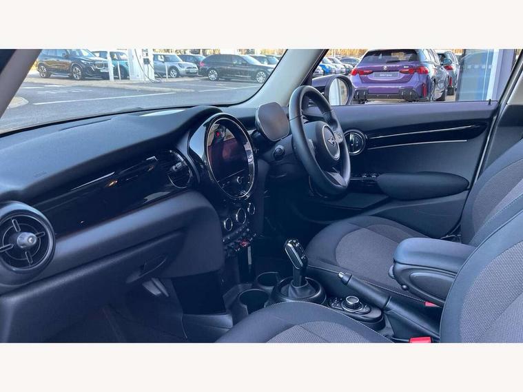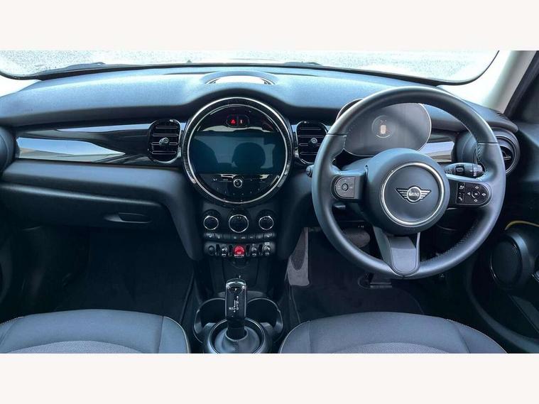Apple CarPlay, Automatic start/stop function with brake energy recuperation, Compatible mobile phone bluetooth with audio streaming, Electro-mechanical speed dependant steering assistance, Flexible car sharing preparation, Mini E-call, MINI TeleServices, On board computer, Service interval indicator, Double Vanos system, Fully variable valve control, Gear change indicator display, High precision injection, Performance Control, Steptronic transmission with double clutch, 8.8" touchscreen with LED ring, FM tuner and DAB digital radio, 3rd brake light, Automatic headlight activation switch, Body colour fuel filler cap, Chrome border high gloss black slats radiator grille, Dynamic brake lights, Electric front+rear windows, Exhaust tailpipe on left with chrome finisher, Heated rear window, Heated windscreen washer jets, Metal door sill strips with MINI imprint, Model logo Cooper on right of tailgate, Rain sensor window wipers, Rear fog lights, Rear LED lights with union jack design, Rear side wing doors, Rear window wiper, Side scuttle panel with integrated indicator, Sun/heat protection glass, White indicator lenses, 12V Accessory socket in centre console, 3 seat bench in 2nd row, 4 lashing eyes in luggage compartment, 60/40 split folding rear seat, Ambient lighting, Carbon black colour line - Knee roll and door armrest, Chrome interior highlights, Cupholders, Front and rear head restraints, Front and rear isofix with front passenger airbag deactivation, Front and rear velour floor mats, Glove compartment, Height and length steering column adjustment, Interior lighting with 12 different colours across the dashboard, underneath door bezel with illuminated laser-engraved design on central display, Leatherette gearshift lever and handbrake gaiters, LED reading lights, vanity mirror lights, front foot well light and spotlight on front seats, Mechanical seat adjustment - forward/back & backrest for front seats and driver seat height adjust, Multifunction steering wheel, Satellite grey headlining including grab handles and clothes hooks, Single front passenger seat, Sport leather steering wheel with speed limiter and audio/communication controls, Storage compartments in doors, Sunvisors with vanity mirrors, 3 point seatbelts on all five seats, 6 Airbags - front, side, head and seat belt tensioners, Anti-lock braking system (ABS), Child locks on rear doors, DSC - Dynamic Stability Control, Front and rear disc brakes, Hill start assist, Single tone fanfare horn, Tyre pressure monitoring system, Alarm system with tilt sensor, monitoring doors, bonnet interior and tailgate, Electronic vehicle immobiliser, Start/stop toggle with keyless go, Piano black interior trim, Tool kit, Tyre repair kit,