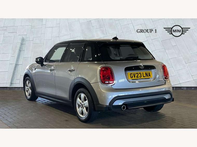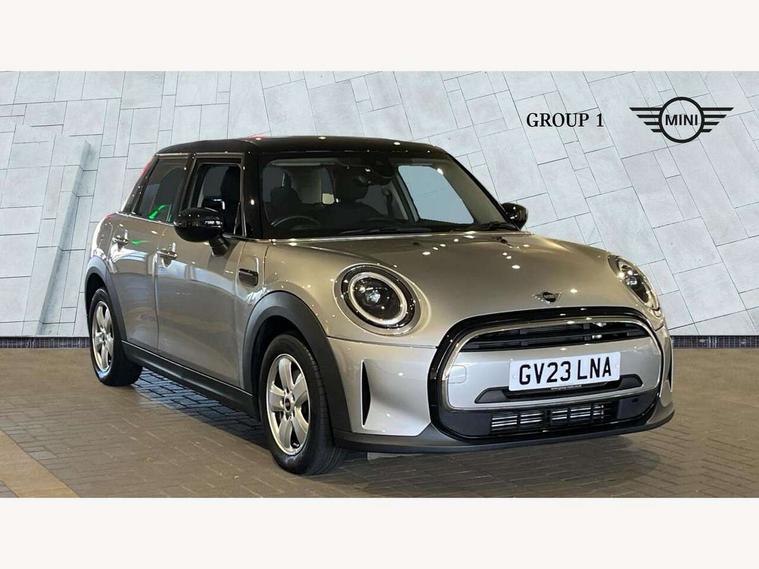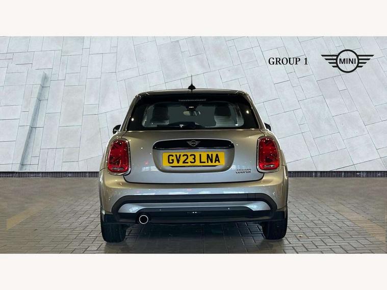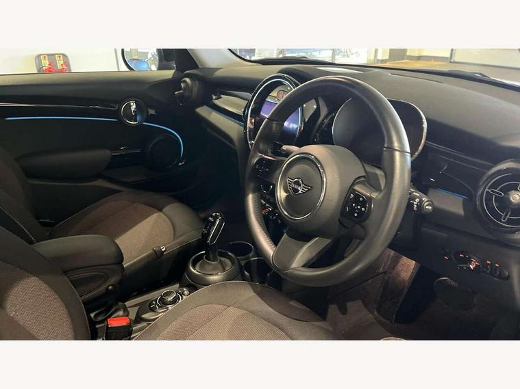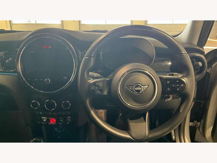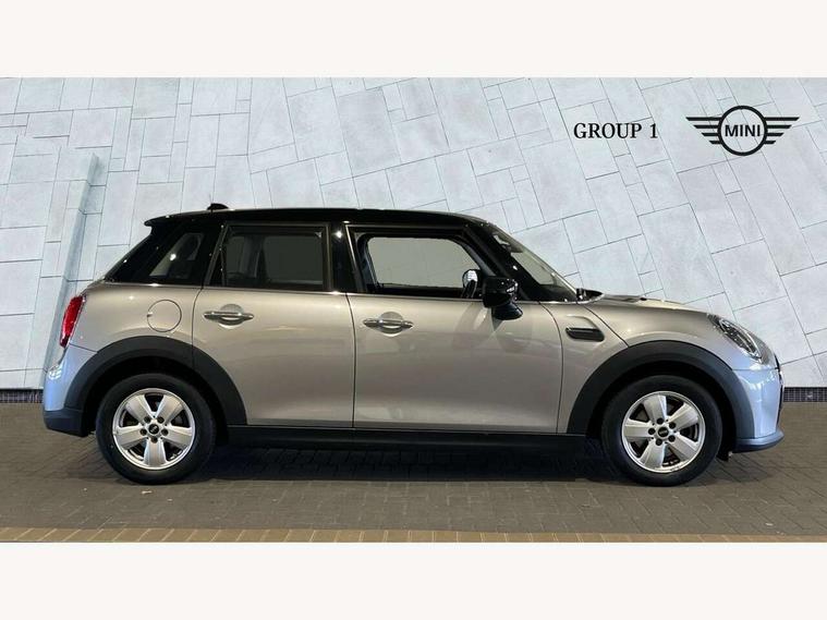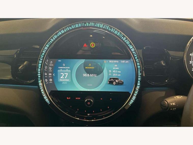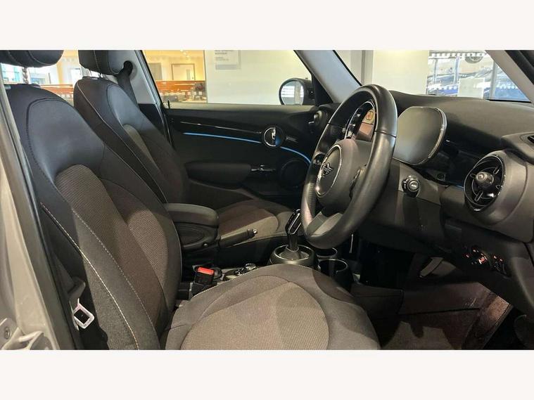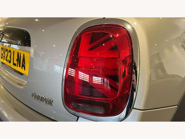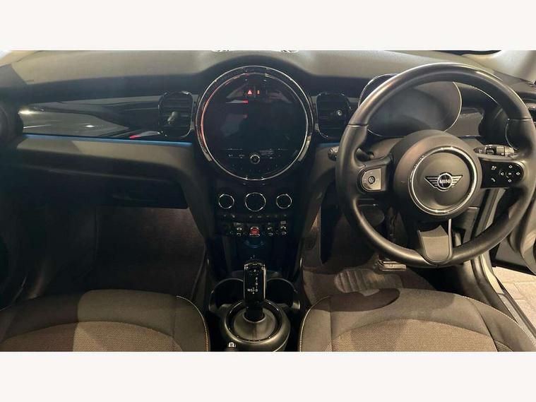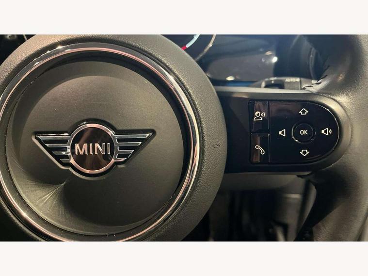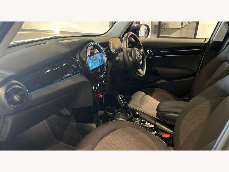 Apple CarPlay, Automatic start/stop function with brake energy recuperation, Compatible mobile phone bluetooth with audio streaming, Electro-mechanical speed dependant steering assistance, Flexible car sharing preparation, Mini E-call, MINI TeleServices, On board computer, Service interval indicator, Double Vanos system, Fully variable valve control, Gear change indicator display, High precision injection, Performance Control, Steptronic transmission with double clutch, 8.8" touchscreen with LED ring, FM tuner and DAB digital radio, 3rd brake light, Automatic headlight activation switch, Body colour fuel filler cap, Chrome border high gloss black slats radiator grille, Dynamic brake lights, Electric front+rear windows, Exhaust tailpipe on left with chrome finisher, Heated rear window, Heated windscreen washer jets, Metal door sill strips with MINI imprint, Model logo Cooper on right of tailgate, Rain sensor window wipers, Rear fog lights, Rear LED lights with union jack design, Rear side wing doors, Rear window wiper, Side scuttle panel with integrated indicator, Sun/heat protection glass, White indicator lenses, 12V Accessory socket in centre console, 3 seat bench in 2nd row, 4 lashing eyes in luggage compartment, 60/40 split folding rear seat, Ambient lighting, Carbon black colour line - Knee roll and door armrest, Chrome interior highlights, Cupholders, Front and rear head restraints, Front and rear isofix with front passenger airbag deactivation, Front and rear velour floor mats, Glove compartment, Height and length steering column adjustment, Interior lighting with 12 different colours across the dashboard, underneath door bezel with illuminated laser-engraved design on central display, Leatherette gearshift lever and handbrake gaiters, LED reading lights, vanity mirror lights, front foot well light and spotlight on front seats, Mechanical seat adjustment - forward/back & backrest for front seats and driver seat height adjust, Multifunction steering wheel, Satellite grey headlining including grab handles and clothes hooks, Single front passenger seat, Sport leather steering wheel with speed limiter and audio/communication controls, Storage compartments in doors, Sunvisors with vanity mirrors, 3 point seatbelts on all five seats, 6 Airbags - front, side, head and seat belt tensioners, Anti-lock braking system (ABS), Child locks on rear doors, DSC - Dynamic Stability Control, Front and rear disc brakes, Hill start assist, Single tone fanfare horn, Tyre pressure monitoring system, Alarm system with tilt sensor, monitoring doors, bonnet interior and tailgate, Electronic vehicle immobiliser, Start/stop toggle with keyless go, Piano black interior trim, Tool kit, Tyre repair kit,