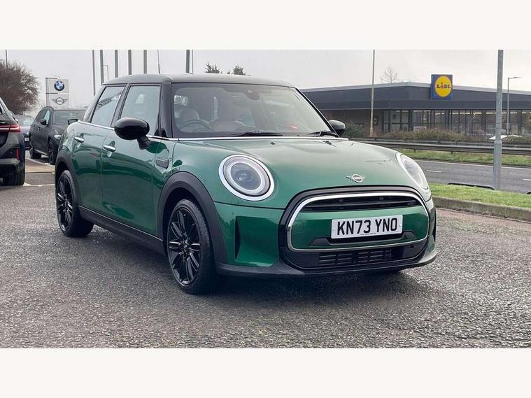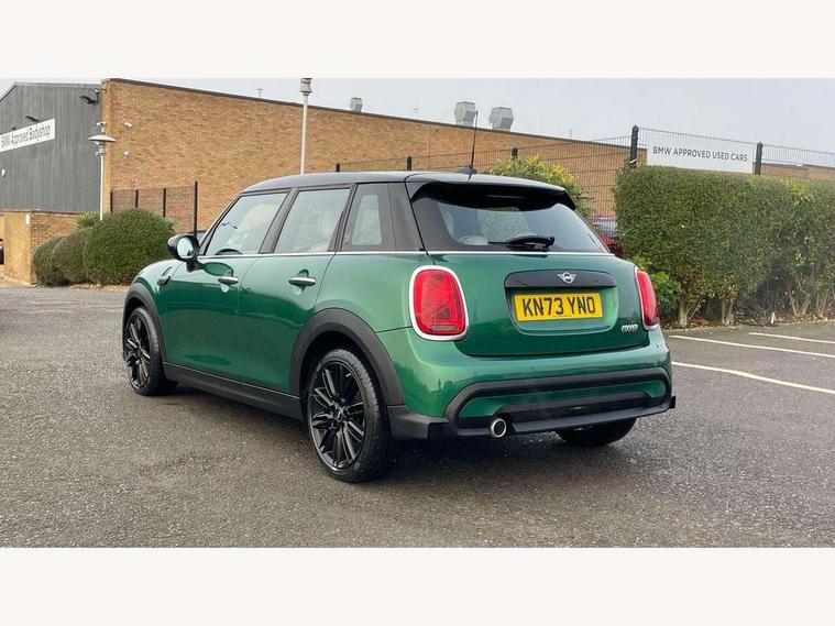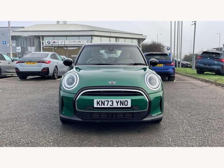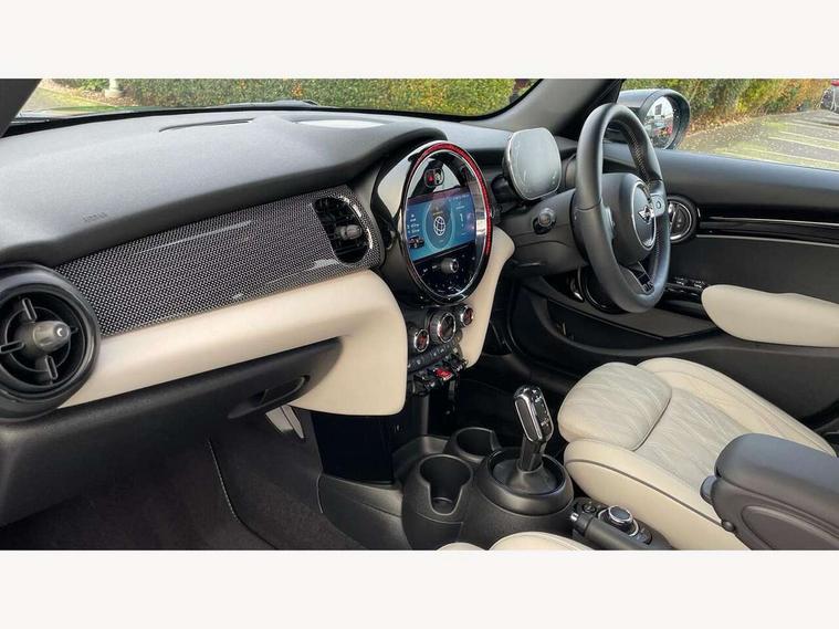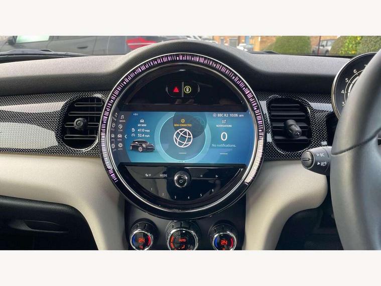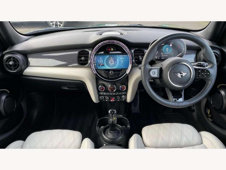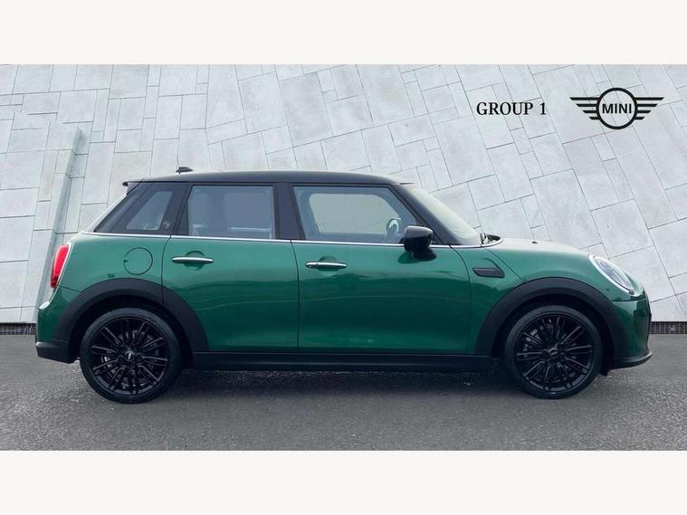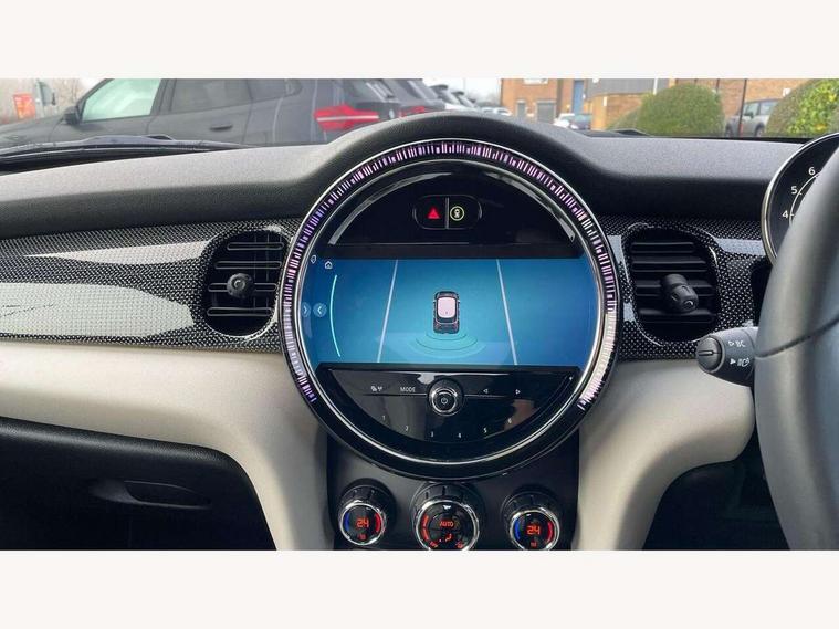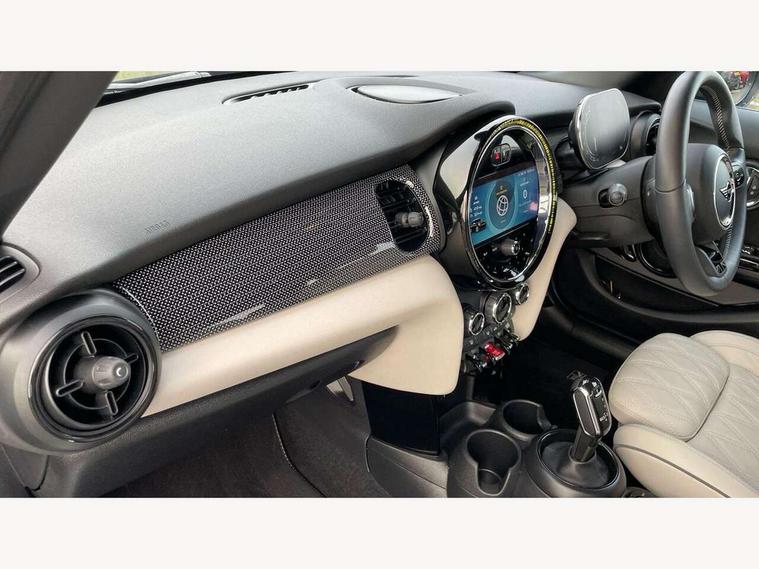 Apple CarPlay, Automatic start/stop function with brake energy recuperation, Compatible mobile phone bluetooth with audio streaming, Electro-mechanical speed dependant steering assistance, Flexible car sharing preparation, MINI Driving Modes - centre toggle switch to control driving setting (sport, mid and green), Mini E-call, MINI TeleServices, On board computer, Rear park distance control, Service interval indicator, Double Vanos system, Fully variable valve control, Gear change indicator display, High precision injection, Performance Control, Steptronic transmission with double clutch, 8.8" touchscreen with LED ring, FM tuner and DAB digital radio, 3rd brake light, Automatic headlight activation switch, Body colour fuel filler cap, Chrome line exterior - radiator grille bars, tailgate handle, lower front grille grating and rear central fog-light, Dynamic brake lights, Electric front+rear windows, Heated rear window, Heated windscreen washer jets, Metal door sill strips with MINI imprint, Model logo Cooper on right of tailgate, Rain sensor window wipers, Rear fog lights, Rear LED lights with union jack design, Rear side wing doors, Rear window wiper, Side scuttle panel with integrated indicator, Sun/heat protection glass, White indicator lenses, 12V Accessory socket in centre console, 3 seat bench in 2nd row, 4 lashing eyes in luggage compartment, 60/40 split folding rear seat, Anthracite headliner including grab handles and clothes hooks, Carbon black colour line - Knee roll and door armrest, Chrome interior highlights, Chrome line interior - air vents, gear lever base, door handles and speakers in doors, Cupholders, Front and rear head restraints, Front and rear isofix with front passenger airbag deactivation, Front and rear velour floor mats, Glove compartment, Height and length steering column adjustment, Interior lighting with 12 different colours across the dashboard, underneath door bezel with illuminated laser-engraved design on central display, Leatherette gearshift lever and handbrake gaiters, LED reading lights, vanity mirror lights, front foot well light and spotlight on front seats, Mechanical seat adjustment - forward/back & backrest for front seats and driver seat height adjust, MINI yours badge on exterior pillar, Multifunction steering wheel, Single front passenger seat, Storage compartments in doors, Sunvisors with vanity mirrors, Walknappa leather steering wheel with grey seam and MINI Yours badge on Piano Black lower steering wheel spoke, 3 point seatbelts on all five seats, 6 Airbags - front, side, head and seat belt tensioners, Anti-lock braking system (ABS), Child locks on rear doors, DSC - Dynamic Stability Control, Front and rear disc brakes, Hill start assist, Single tone fanfare horn, Tyre pressure monitoring system, Alarm system with tilt sensor, monitoring doors, bonnet interior and tailgate, Electronic vehicle immobiliser, Start/stop toggle with keyless go, Tool kit,