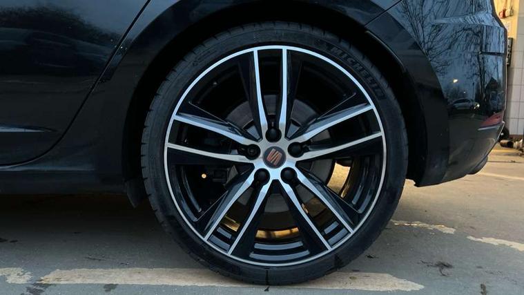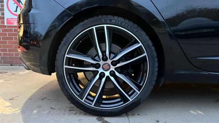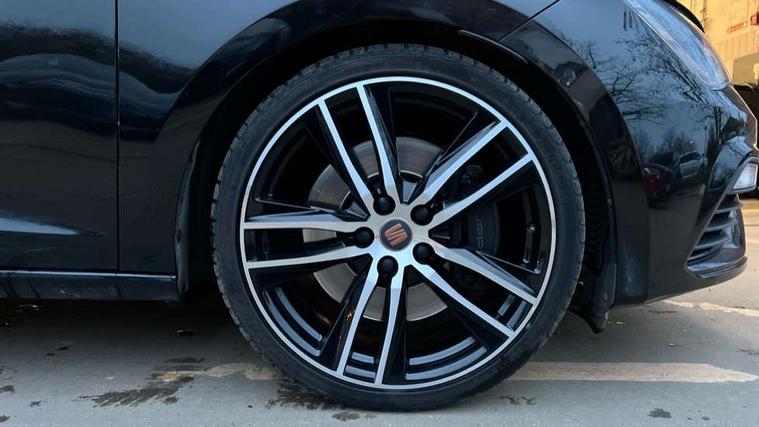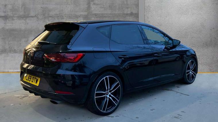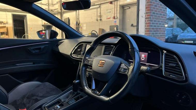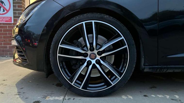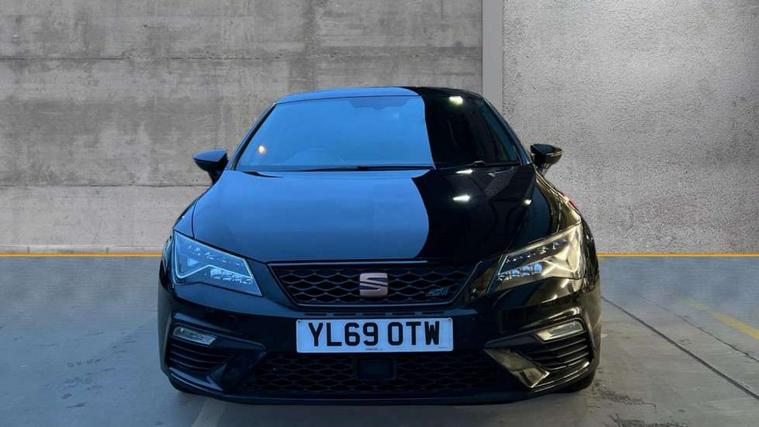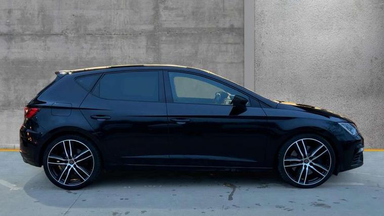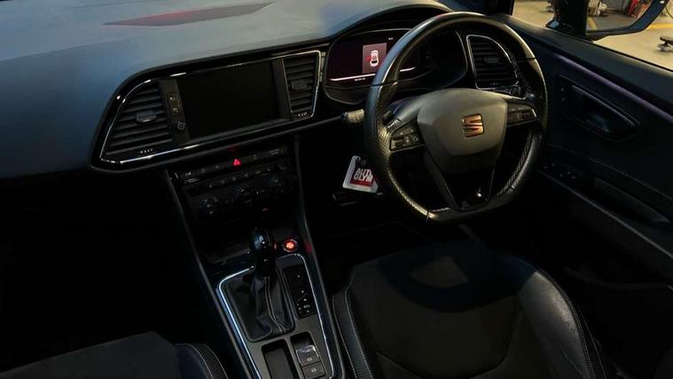 CUPRA performance interface, Digital cockpit, Electro-mechanical progressive power assisted steering, Front and rear parking sensors, Front assist with pedestrian protection, Full Link Smartphone Integration with Mirror Link, Apple Car Play, Google Android Auto with USB cable for Apple and Android compatibility, Media system plus with 8" display, 4 USB, 8 speakers, CD, voice control, DAB, bluetooth and handsfree, steering wheel mounted audio and phone control, Navigation system 3D map display, high resolution colour driver display, two SD card slots, RPM, trip computer, outside temp gauge, instrument light brightness, low fuel warning light, lights on reminder, gearshift indicator, SEAT drive profile CUPRA with 4 mode (Cupra/Normal/Sport/Individual), throttle response, sound actuator and gearshift, SEAT logo boot release, Service interval indicator, Dynamic chassis control, Lowered sports suspension, Auxiliary input socket, SEAT USB media cable, Black front grille, Body colour door handles, Body coloured bumpers, Dark tinted rear windows, Electric folding door mirrors, Electric front/rear windows, Electrically adjustable and heated door mirrors, Exclusive Cupra front and rear bumpers, Full LED headlights with LED day time running lights + LED rear tail lights + LED licence plate lights and LED front and rear fog lights, Gloss black exterior mirrors with integrated LED indicators, Gloss black front grille frame, High gloss black finish B and C pillars, Illuminated aluminium front door sill with CUPRA logo, Rear wash/wipe, Visible dual exhaust pipes, 12v power point in centre console, 60/40 split folding rear seat with armrest, Additional heating and ventilation outlet in rear of centre console, Aluminium pedals, Black interior roof, Boot storage net, Cargo rings in boot, Driver and passenger seat height adjust, Driver and passenger sun visor, covered and illuminated mirror, driver sun visor with card holder, Driver seat lumbar adjustment, Dual zone climate control, Dust/pollen filter, Flat bottomed perforated leather steering wheel with white stitching and CUPRA logo and leather gear knob, Front and rear head restraints, Front centre armrest with storage compartment, Front cupholders x 2, Front heated bucket seats in microsuede, Front/rear floor mats, Height adjustable front and rear headrests and third rear headrest, Height/reach adjust steering wheel, High centre console with integrated box & cup holder, rear air outlet, with armrest in front seats, Interior copper and black detailing, ISOFIX points in outer rear seats with top tether anchorage points, Luggage tie-down hooks, Multi-colour ambient interior lighting, Steering wheel gearshift paddles, Storage box under drivers and passenger seat, Convenience pack+ - Leon, Safety pack - Leon, 3 point seatbelts on all rear seats, ABS, traction control system and front differential lock system, Child proof door locks, Driver and front passenger airbags with front passenger airbag de-activation, front side, curtain, driver knee airbags, EBA, Electric handbrake, Electronic parking brake with auto hold, ESC with switch off key, Front and rear black brake calipers with cupra logo, Front seatbelt pretensioners, Front seatbelt reminder, Hill hold control, Multi-Collision braking, Tyre pressure monitoring system, 2 folding remote keys with window open/close function and boot opening/door mirror folding function, Central locking fuel filler cap, Engine immobiliser, Keyless entry and go with wireless phone charger, Locking wheel bolts, Remote central locking + deadlocks, Volumetric alarm with back up horn, Gloss black interior detailing, 19" Cupra Machined alloy wheels 30/2, Space saver spare wheel,
