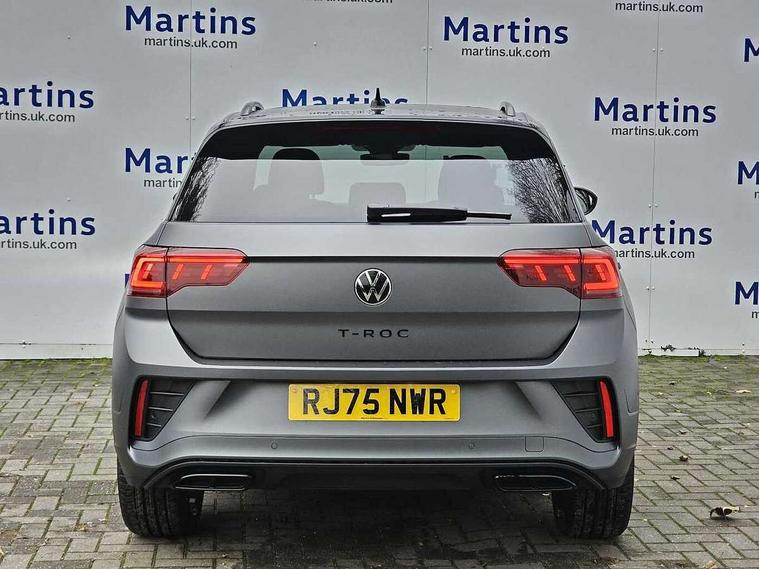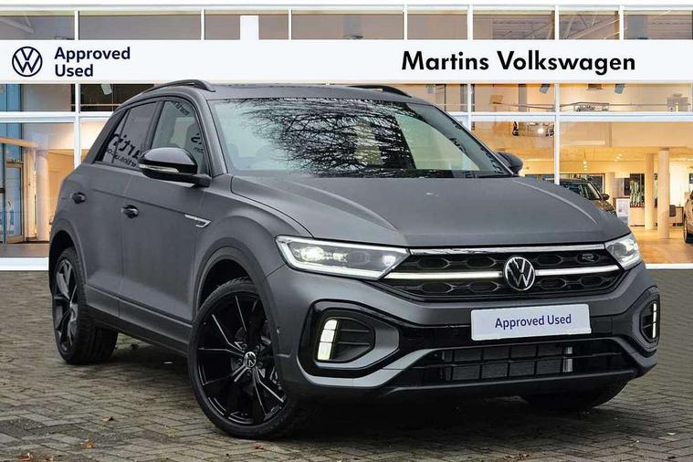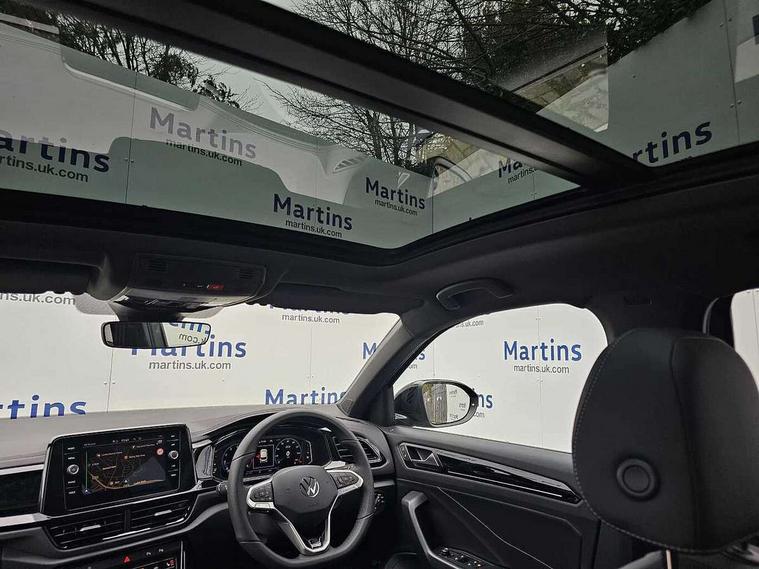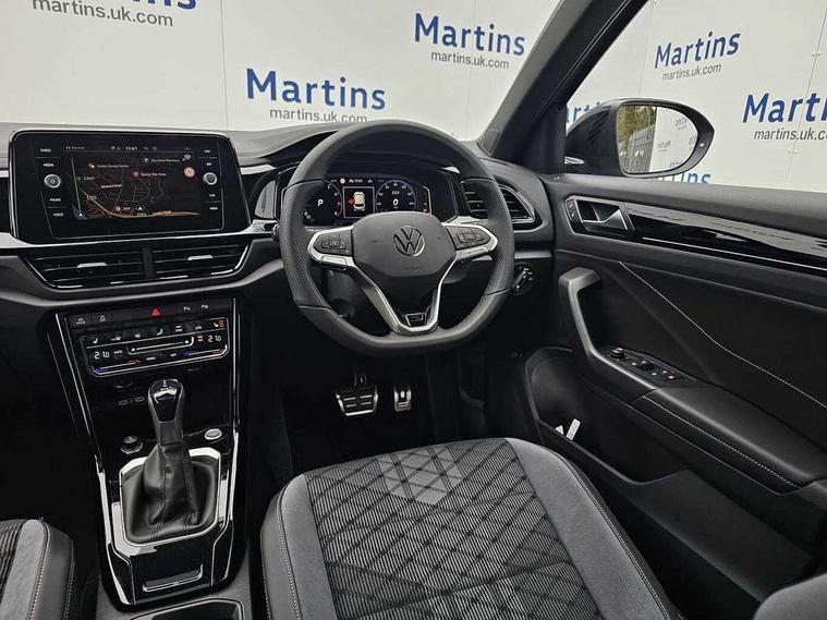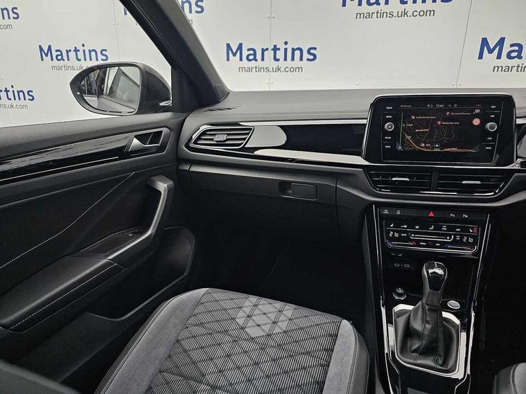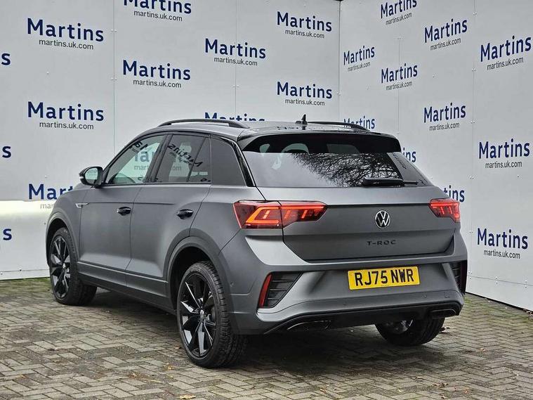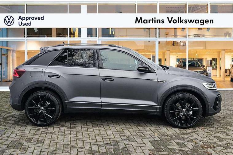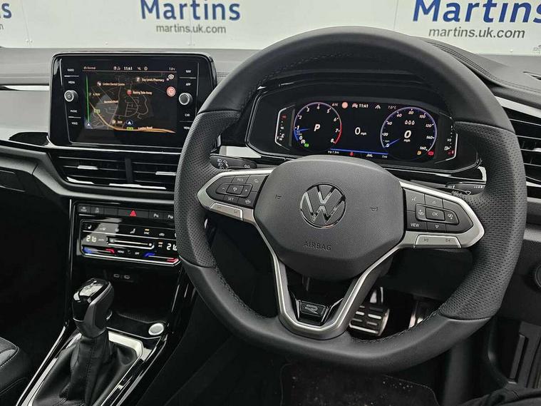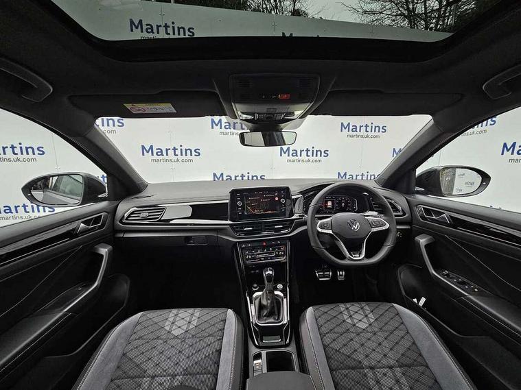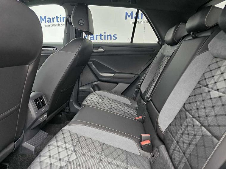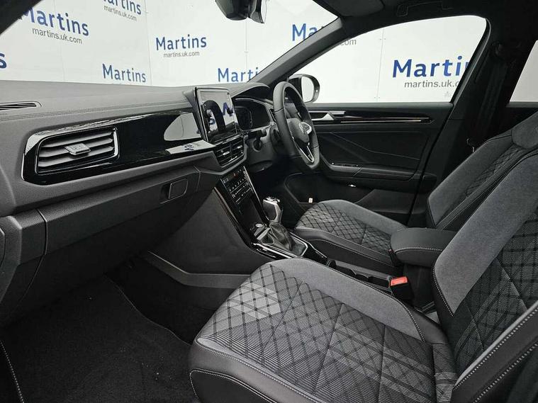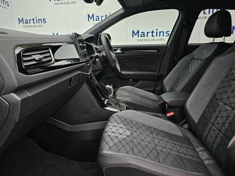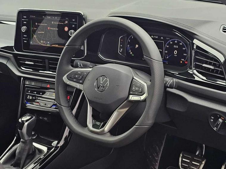 10.25" Digital cockpit pro, Advanced driver attention and drowsiness monitor, Emergency call service, Lane keeping system Lane Assist, Mobile phone interface, Modified key software - reduce switch off time for key status change to Long no motion, Online services, Park assist including front and rear parking sensors, Power assisted speed sensitive steering, Rear view camera, Service interval indicator, Tailgate/trunk lid release from outside, Think blue trainer driver tips and journey analysis, Warning sound and light for front seatbelts unfastened, Wireless app connect, Battery regeneration during braking, Rear shock absorption chassis with increased ride height, Start/stop function with battery regeneration, DAB Digital radio, Diversity antenna for FM reception, Music playback - MP3, WMA and AAC files, SD card slot, Simultaneous pairing of 2 compatible mobile devices, Title and cover art display, We Connect and We Connect Plus functionality, Advanced dynamic light assist for LED matrix headlights, Auto dimming interior rear view mirror, Automatic hazard lights activation under emergency braking, Black roof rails, Dynamic cornering light, Dynamic headlight range control with self adjusting whilst driving, Electrically adjustable and heated door mirrors, Extended roof spoiler, Exterior ambient lighting, Exterior mirrors aspherical on driver side, convex on front passenger side, External USB type C socket and charging sockets, Front windscreen wiper with intermittent wipe and 4 position delay, Heated rear window, Illuminated front grille, IQ LED matrix headlights, LED 3rd brake light, LED rear number plate lights, LED rear tail lights with dynamic turn signal, LED separate daytime running light, Light mode for poor weather, rain, fog or snow, Power windows with comfort operation and circuit breaker, Privacy glass for rear side windows and rear window, R-Line design body coloured bumpers, Rain sensor, Rear exhaust tailpipe, Rear fog light on one side and reversing lights on both sides, Rear side wing doors, Rear wash/wipe with intermittent wipe setting, Remote electrically foldable door mirrors, puddle lights and reverse activated passenger's door mirror, Tilting and sliding panoramic sunroof with rear panoramic sunroof, 12V power socket in centre console, 3 rear head restraints, 3 seat bench in 2nd row, 4 load lashing points in luggage compartment, Air care climatronic air conditoning system with active combination filter and 2-zone temperature control, Chrome plated radiator grille inserts, air vent surrounds and light switch surrounds, Door and side trim panel with leatherette insert, Drawer under drivers seat, Front + rear carpet mats, Front centre armrest, Front comfort sports seats, Front cupholders x 2, Front footwell illumination, Front reading light, Front scuff plates with R Line logo, Front seat back storage pockets, Glove compartment door with light, Instrument lighting, white adjustable panel illumination, Interior ambient lighting and surround lighting, Interior light delay, Isofix child seat preparation, Leather gearshift handle, Load-through provision with cup holder when folded down ('Unsplit rear seat bench, split folding backrest, with centre armrest), Luggage compartment lighting, Non-folding front passenger seat backrest, Single front passenger seat, Stainless steel pedals, Storage compartment in left and right luggage area, Storage compartment in rear doors, Storage compartments in driver and front passenger doors, Sunvisors with illuminated vanity mirrors, Variable boot floor, height adjustable and removable, Black design pack - T-Roc black edition plus, Easy open package with safelock - T-Roc, Sport pack with sports suspension - T-Roc, 3 point height adj front seatbelts + pretensioners, 3 point seatbelts in outer rear with ECE label, ABS, Child locks on rear doors, City emergency braking and pedestrian monitoring, Driver and front passenger airbag with front passenger airbag deactivation, Driver and front passenger safety-optimised head restraints, Drivers seatbelt reminder, Electronic parking brake, Electronic Stability Control (ESC) inc EDL (Electronic Differential Lock) and ASR (Traction Control), Front and rear passengers curtain airbag system including front side airbags, Front disc brakes, Hill start assist, Predictive pedestrian protection, Rear disc brakes, Two tone horn, Tyre pressure loss indicator, Volkswagen roadside assistance, Keyless locking and starting system keyless access with safelock, Gloss deep iron dash trim, 19" Misano black diamond turned alloy wheels with low rolling resistance and anti theft wheel bolts, Tool kit, Trims for alloy wheels, Tyre mobility kit including compressor and sealing foam,