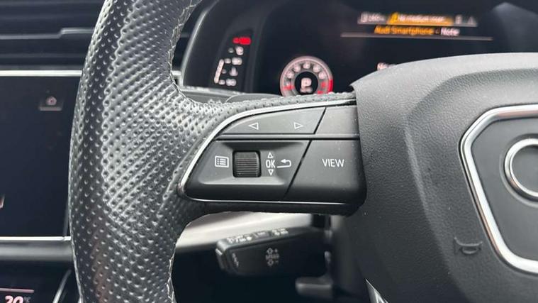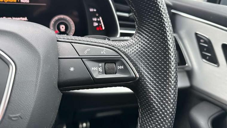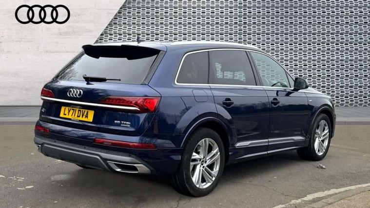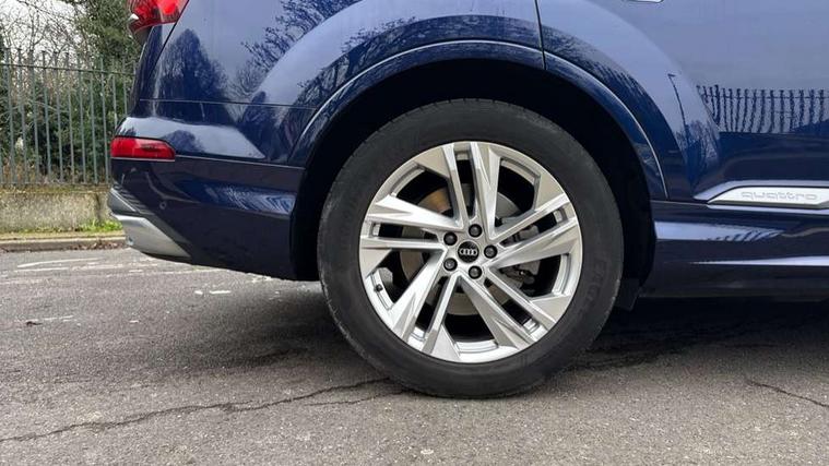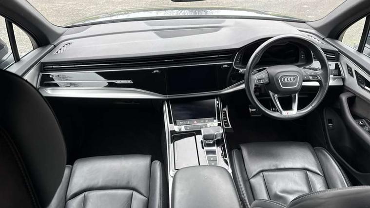 Audi connect safety and service (e-call), Audi connect with Amazon Alexa Integration, Audi drive select (Auto, Comfort, Dynamic, Efficiency, Individual, Off-road and All road), Bluetooth interface, Camera based traffic sign recognition, Electromechanical steering, MMI navigation plus with MMI touch screens includes 10.1" and 8.6" screens with haptic feedback, Natural voice recognition, Parking system plus with 360 degree display (front, rear and side sensors) - acoustic and visual park assist system, Power operated tailgate, Rear view camera, Smartphone interface includes wireless Apple carplay/Android Auto, Start/stop system, 48V Mild hybrid technology, 85 litre fuel tank, Adaptive air suspension, Quattro all wheel drive with self locking centre differential, Audi music interface - front 2 USB-C ports with charger and data functions, Audi sound system with 6 channel amplifier, 180 watt amplifying capacity and 10 loudspeakers including subwoofer, DAB digital radio module, 3rd brake light, Aluminium roof rails, Aluminium window trim, Audi matrix LED headlights with dynamic front and rear indicators, Auto dimming frameless rear view mirror, Body coloured door mirrors, Electrically adj heated/folding + automatically dimming exterior mirrors with memory + automatic kerb side function for passenger side exterior mirror, Heat insulating glass in windshield, Integrated LED indications in door mirrors, LED daytime running lights, LED rear tail lights, Privacy glass - dark tinted rear and rear side windows from B-pillar backwards, Rear side wing doors, Rear wiper, S Line badge on wings, S line bumpers in full body colour paint finish, S line roof spoiler, S line styling side ventilation grilles and side skirts, 2 seat bench in 3rd row, 2 zone automatic climate control, 3 seat bench in 2nd row, 7 seat layout with ISOFIX points for the front passenger seat and rear passenger seat, Black cloth headlining, Comfort front centre armrest, Electric adjustable front seat with 4 way lumbar support, driver memory functionality, Folding rear seats, Front head restraints, Front/rear floor mats, Heated front seats, Illuminated door sill trims with S logo, LED interior ambient lighting, Luggage compartment cover, Luggage compartment sill protection in stainless steel, Rear head restraints, Single front passenger seat, Stainless steel pedals, Sunvisors with illuminated vanity mirrors, 3 point seatbelts on all rear seats, Audi pre sense front, Child locks on rear doors, Driver and front passenger, front side and curtain airbags, Electromechanical parking brake, Electronic Stabilisation Control (ESC) including ABS, ASR and EDL, Extended pedestrian protection measures, Hill hold assist, Seatbelt monitoring, Tyre pressure loss indicator, Warning triangle and first aid kit, Anti theft alarm, Anti-theft wheel bolts and wheel loosening detection, Keyless Go, Remote central locking, Darkened matt brushed aluminium inlays, Tool kit, Tyre repair kit,