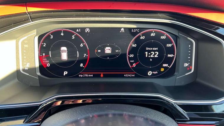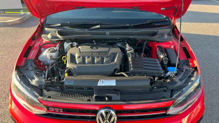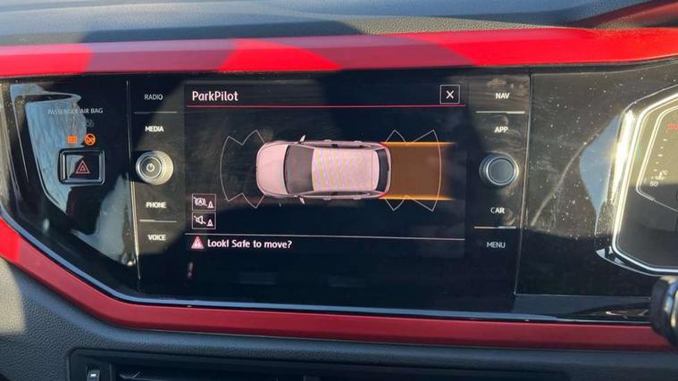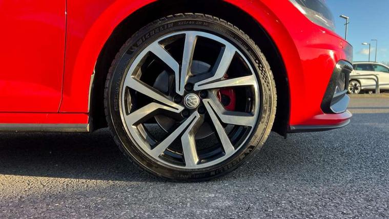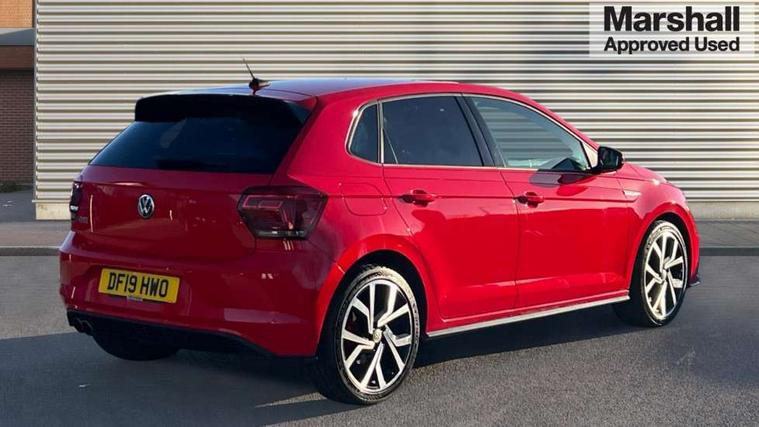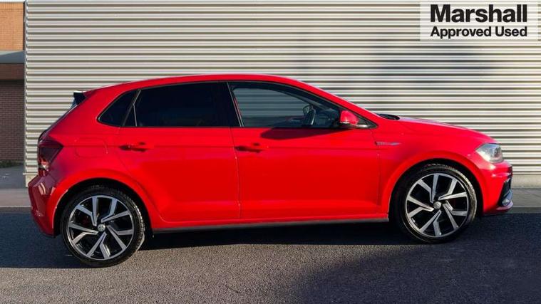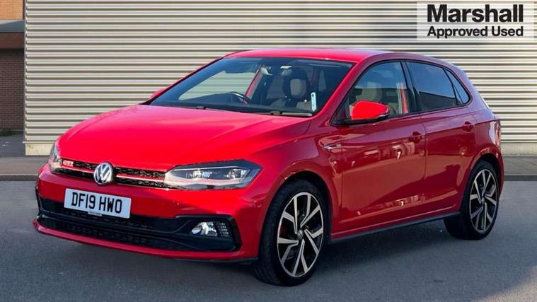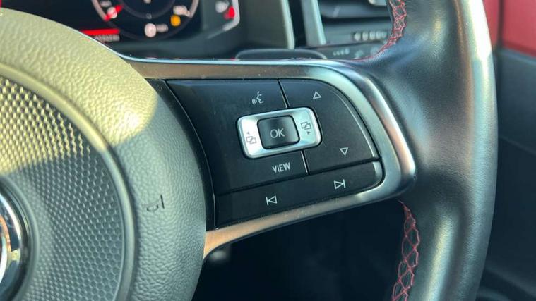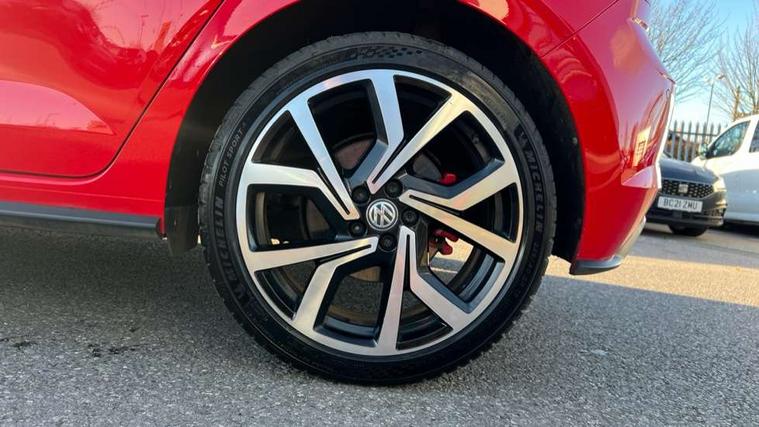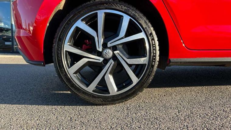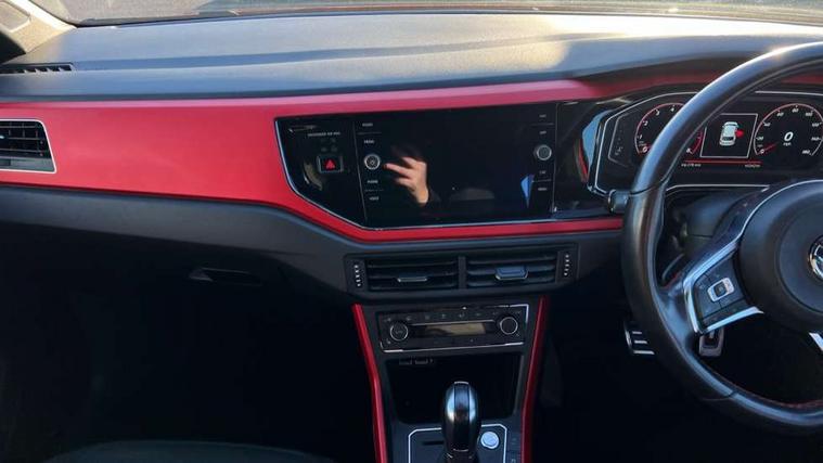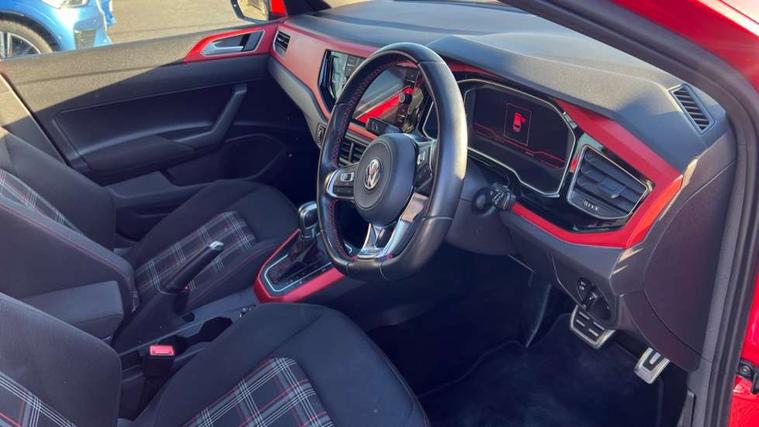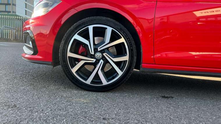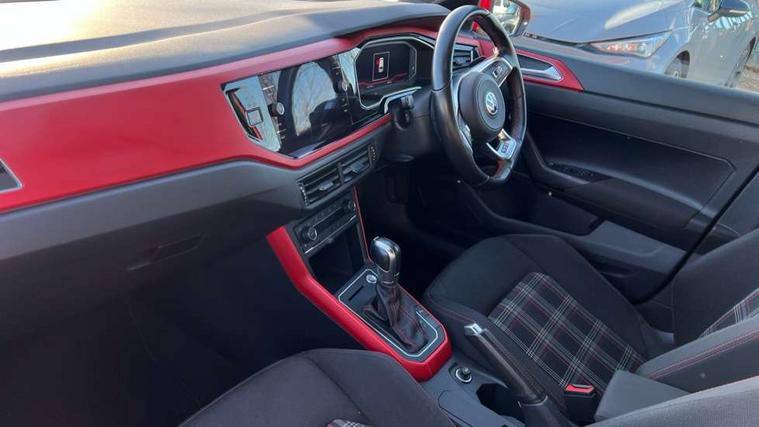 App-Connect, ACC - Adaptive cruise control with front assist, forward collision warning, distance monitoring, city emergency brake and speed limiter, Active Info Display, 10.3" high resolution TFT dash display screen with customised information, Bluetooth Telephone preparation, Driver alert system, Multifunction colour display, PAS - speed related, Service interval indicator, Start/stop system, Trip computer, Warning buzzer and light for front seatbelts unfastened, Battery regeneration during braking, Lowered sports suspension, XDS electronic differential lock, 6 speakers, Composition media system with radio, glovebox mounted CD, colour touch screen, SD card, aux-in, USB, multimedia interface, DAB Digital radio, Driver Personalisation profile selection, Automatic dimming interior rear view mirror with rain sensor, Black grille with chrome surround, Body colour bumpers, Body colour door handles, Body coloured side sills, Chrome insert to lower bumper, Chrome trimmed front air intake surrounds, Dusk sensor + automatic driving lights, Electric folding door mirrors, Electric front windows, Electric operated/heated door mirrors, Extended sill strips flared in black, Front fog lights including static cornering, Front wash/wipe with interval delay, Fully galvanised body, Gloss black rear spoiler, Heated rear window with auto timer, High level 3rd brake light, Honeycomb radiator grille with red stripe, LED darkened rear light clusters, LED daytime running lights, LED headlamps with automatic range adjustment, LED rear number plate lights, Manual coming/automatic leaving home lighting function, Rear electric windows, Rear tinted glass from B-pillar backwards approx 65% tinted, Rear windscreen washer and wiper with interval delay, Stainless steel door sill protections with GTI logo, Twin chrome exhaust tailpipes, Unique GTI badging, 12V power socket in centre console, 2 bag hooks in luggage compartment, 2 cupholders, 3 rear head restraints, 60/40 split folding rear seat, AlumInium look pedals and driver's footrest, Ambient lighting, Black roof lining and sun visors, Chrome-plated electric window button surround, Driver/front passenger seat height adjustment + underseat drawers, Driver/passenger sunvisors with illuminated vanity mirrors, Dust/pollen filter, Front + rear carpet mats, Front centre armrest with storage compartment, Front seat backrest storage nets, Front seats with lumbar support, Front/rear reading lights, Gear change selection via paddle shift on steering wheel, Glovebox, Handbrake grip button in chrome effect, Height/reach adjustable steering column, Instrument lighting, white adjustable panel illumination, Interior light with delay, Isofix Preparation 2 Rear child seats, Jack and tool kit, LED footwell lights, Luggage compartment cover, removable, Luggage compartment lighting, Matt chrome gear lever gaiter surround, Storage compartment in front doors, Storage compartment in rear doors, Storage compartment under front seats, Three spoke leather trimmed multifunction steering wheel with red contrast stitching, Titanium black headlining, Variable boot floor, Variable Luggage compartment, GTI styling pack - Polo, Light and sight pack - Polo, 3 point height adj front seatbelts + pretensioners, 3x3 point rear seatbelts, ABS, Automatic post collision braking, Driver/front passenger airbag, Driver/Passenger whiplash optimised head restraints, ESP with EDL + ASR, Front and rear passengers curtain airbag system including front side airbags, Front passenger airbag deactivation, Front/rear disc brakes, HBA (Hydraulic Brake Assist), Hill hold control, Red brake calipers, Two tone horn, Tyre pressure monitoring system, Alarm with remote central locking and interior protection, Electronic engine immobiliser, Remote keyless entry using key fob including Start/Stop button on centre console, Air vents in Matt chrome, Chrome plated electric mirror adjustment light switch surround, Gloss black instrument surrounds, Space saver spare wheel,