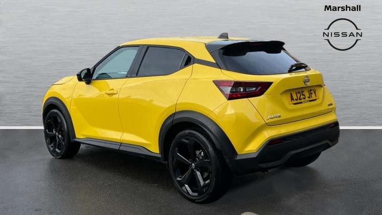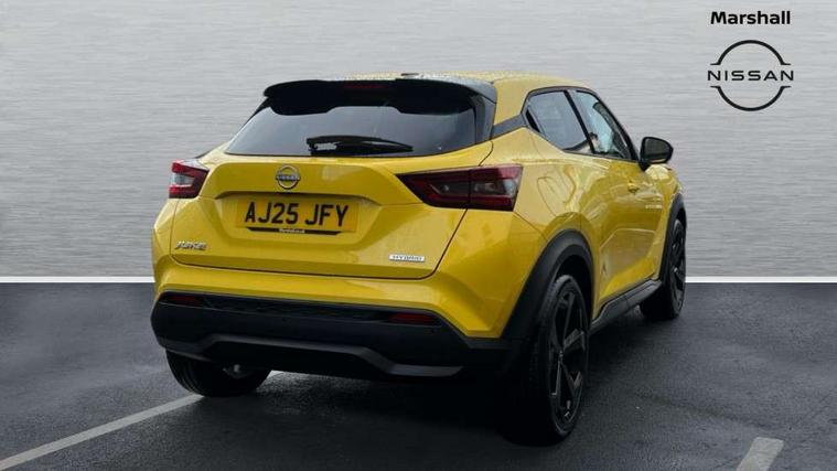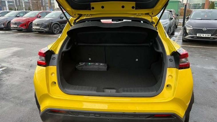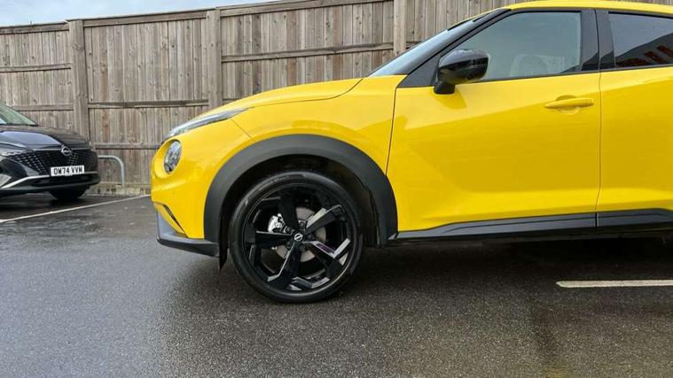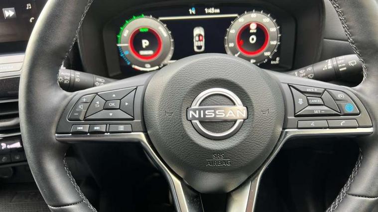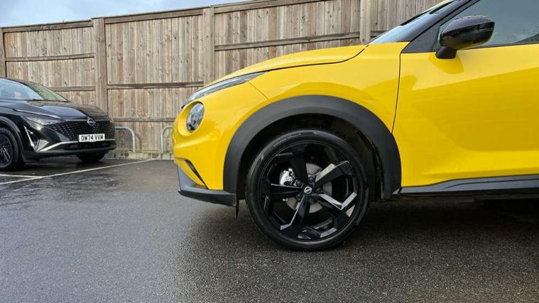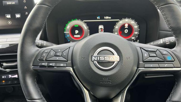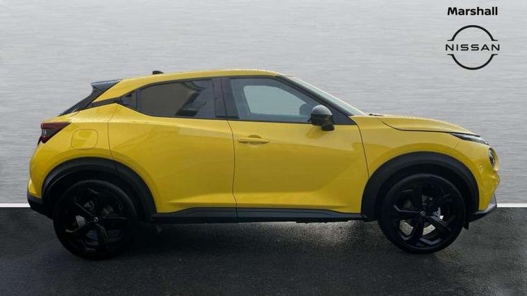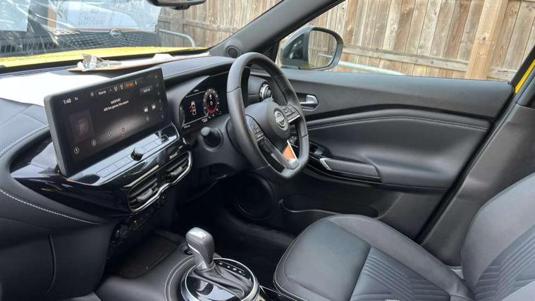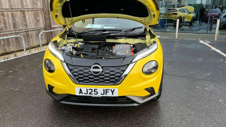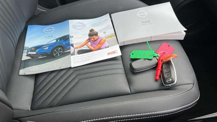 12.3" full colour TFT screen combimeter, Drive modes select (Eco, normal and sport), e-Pedal step, Emergency and breakdown call, EV mode switch, Front parking sensor, Intelligent driver alert system, Intelligent lane intervention, Lane departure warning system, Nissan connect 12.3" touch screen entertainment system, Nissan connect nav with TomTom traffic, Nissan connect services, Outside temperature sensor, Power Steering, Rear parking sensor, Stop/start button, Traffic sign recognition, Trip computer, Voice recognition, WiFi connectivity, Wireless Apple CarPlay and Google Android auto, Wireless Smartphone charger, 10 Bose speakers 8 speakers and 2 headrest speakers for driver/passenger seats, 2 X Rear console USB port, Bluetooth system, USB, Aux-in and 12V socket, Bose personal plus audio system, DAB Digital radio, Auto dimming frameless rear view mirror, Automatic hazard signal with emergency stop signal, Body colour door handles, Electrically adjustable door mirrors with integrated indicators, Follow me home headlights, Front and rear electric window with one touch driver window, High beam assist, LED 3rd brake light, LED daytime running lights, LED front fog lights, LED headlamps, LED rear fog lamp, LED rear lamps, One touch passenger window, Rear privacy glass, Rear side wing doors, Rear wiper, Roof spoiler, Shark fin roof antenna in solid Black, Solid black door mirrors, Three blink turn signal, 3 height adjustable rear headrests, 3 seat bench in 2nd row, 60/40 split folding rear seat, Card holder on driver sunvisor, Door ambient lighting, Driver seat back pocket, Driver side rear coat hanger, Driver/passenger sunvisors and vanity mirrors, Front and rear cabin lights, Front armrest, Front door pockets with bottle holders, Front head restraints, Front/rear passenger grab handles, Gear console ambient circle lighting, Height adjustable driver's seat, Internal chrome door handles, Luggage board, Luggage space lighting, Monoform sporty seats, Multifunction steering wheel, Passenger seat back pocket, Rear door bottle holders, Single front passenger seat, Smooth synthetic leather steering wheel, Synthetic leather kneepad, Synthetic leather shift knob, Synthetic leather upholstery, Telescopic steering wheel adjustment, Two cupholders in front centre console, Two rear isofix child seat anchorage points with top tether, Welcome light and console tray ambient lighting, Comfort pack - Juke, Heat pack with height adjustable passenger seats - Juke, ProPilot pack - Juke Auto, ABS with EBD and brake assist, Active ride control, Active Trace Control, Driver and passenger airbags, Driver and passenger side airbags, Electric handbrake with auto hold function, Electronic Stability Programme (ESP), Front and rear curtain airbags, Height adjustable seatbelts, Hill start assist, Intelligent emergency braking with pedestrian and cyclist recognition, Rear door child safety locks, Seatbelt reminder for driver/front passenger and rear seats, Three 3 point rear seatbelts, Traction control, Tyre pressure monitoring system, VDC Dynamic Vehicle Control, Alarm, Immobiliser, Intelligent key and start push button with walk away lock and approach unlock functions, Remote central locking, 19" Alloy wheels, Tyre puncture repair kit,