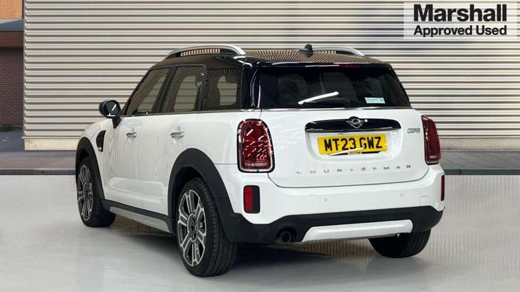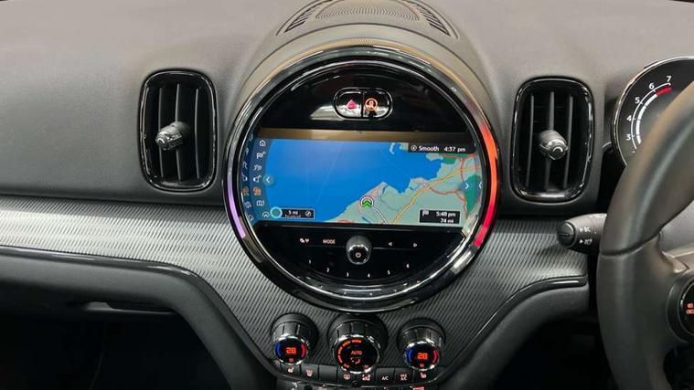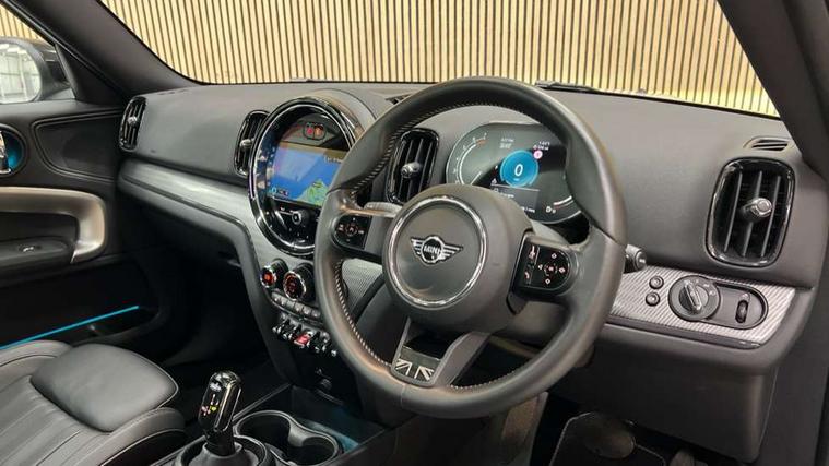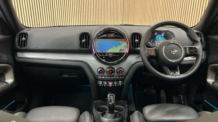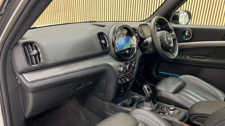 Active Guard incl speed limiting and lane departure functions with auto steering, and front collision warning with brake intervention, Automatic start/stop function with brake energy recuperation, Electro-mechanical speed dependant steering assistance, Instrument cluster, MINI Driving Modes - centre toggle switch to control driving setting (sport, mid and green), Mini E-call, MINI TeleServices, On board computer, Double Vanos system, Fully variable valve control, High precision injection, Performance Control, Steptronic transmission with double clutch, FM tuner and DAB digital radio, 3rd brake light, Body colour fuel filler cap, Day time driving lights, Door sill strips, Dynamic brake lights, Electric windows, Heated rear window, Heated windscreen washer jets, LED fog lights, MINI yours exterior badge in C-Pillar, driver and passenger side, Model logo, Model logo on Tailgate, Rain sensor with auto headlights, Rear fog lights, Rear side wing doors, Rear window wiper, Side scuttle panel with integrated indicator, Split rear doors, Sun/heat protection glass, White indicator lenses, 12V socket in centre console, 3 seat bench in 2nd row, 360L luggage compartment capacity, 4 lashing eyes in luggage compartment, 40:20:40 split folding rear seats, Anthracite headlining with grab handles and clothes hooks, Chrome interior highlights, Colour line - Carbon black, Cupholders, English handbook, Front headrests, Glove compartment, Height and length steering column adjustment, Interior lighting with 12 basic colours selectable via toggle switch in roof, Isofix rear child seat preparation, Leather gearshift lever and handbrake gaiters, LED reading lights, vanity mirror lights, front foot well light and spotlight on front seats, MINI Yours fine walk nappa leather steering wheel with contrast stitching in silver and MINI Yours badge, Multifunction steering wheel, Rear headrests, Single front passenger seat, Storage compartments in doors, Sunvisors with vanity mirrors, Tool kit, Excitement pack - Countryman, Navigation plus pack - Countryman, 2 tone horn, 3 point seatbelts on all seats, 6 Airbags - front, side, head and seat belt tensioners, Anti-lock braking system (ABS), DSC - Dynamic Stability Control, Electronic handbrake, Front and rear disc brakes, Hill start assist, Manual rear child locks, Tyre pressure monitoring system, Alarm system with tilt sensor, monitoring doors, bonnet interior and tailgate, Auto drive away locking, Deadlocking function, Electronic vehicle immobiliser, Locking wheel bolts, Start/stop toggle with keyless go,