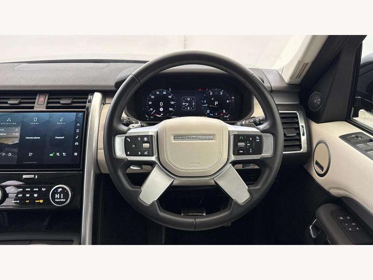 11.4" touchscreen, 3D surround camera, Adaptive cruise control, Android Auto, Apple car play, Blind spot assist, Driver condition monitor, Electric power assisted steering (EPAS), Emergency services call system, Front and rear parking aid, Interactive driver display, Lane keep assist, Power inner tailgate, Power tailgate/boot lid, Push button start, Rear collision monitor, Rear traffic monitor, Remote, Remote boot release, Service interval indicator, Speed proportional steering, Sportshift selector, Stop/start system, Traffic sign recognition with adaptive speed limiter, Trip computer, Wade Sensing, Wireless device charging, Adaptive dynamics, Dynamic stability control, Electronic air suspension, Front axle open differential, Digital Audio Broadcast radio-DAB, Dynamic volume control, Pivi pro connected, Acoustic laminated windscreen, Animated directional indicators, Auto dimming interior rear view mirror, Automatic headlight levelling, Automatic headlights, Black roof rails, Body colour bumpers, Body colour door handles, Centre high mounted stop light, Electric heated/power fold memory door mirrors with approach lights and auto dimming driver side, Electric windows with one touch open/close and anti-trap, Heated rear window, Heated windscreen, LED darkend tail lights, Matrix LED headlights with signature DRL, Privacy glass, Puddle lights, Rain sensing windscreen wipers, Rear fog lights, Rear side wing doors, Rear wash/wipe, Trailer stability assist, Variable intermittent wiper, 1 x 12V power socket in Row 1, Row 2, and loadspace, 1 x USB-C (power only), 1 x USB-A & 1 x USB-C (power & data) in Row 1, 2 seat bench in 3rd row, 2 x USB-C in Row 2 (power only), 2 x USB-C in Row 3 (power only), 3 seat bench in 2nd row, 60/40 electric heated folding rear seats with manual slide and powered recline, centre headrest and armrest, Central hinged twin lidded storage, Configurable cabin lighting, Electric adjustable steering column, First and second row door bins, Footwell lights, Front passenger seat ISOFIX, In-facia storage, Isofix child seat preparation for front passenger seat, Leather steering wheel, Loadspace cover, Loadspace Hook, Loadspace light, Lockable glovebox, Lower centre console storage, Luggage tie downs in loadspace, Multi function steering wheel, Overhead lighting console, Premium carpet mats, Rear ISOFIX, Shopping bag hook, Single front passenger seat, Storage glovebox, Sunvisors with illuminated vanity mirrors, Third row storage, Treadplates with metal inserts, Twin front cupholders with cover, USB with 12V socket in centre console, Online pack with data plan - Discovery, 3x3 point rear seatbelts, Anti-lock braking system (ABS), Brake pre-fill technology, Cornering brake control, Curtain airbags, Customer configurable autolock, Driver and passenger airbags, EBD - Electronic brakeforce distribution, Electronic traction control, Emergency brake assist, Emergency braking, ESP, Front side airbags, Gradient acceleration control, Hill descent control, Hill launch assist, Power operated child locks, Rear airbags, Roll stability control, Seat belt reminder, Torque vectoring brake, Tyre pressure monitoring system, Immobiliser, Intrusion sensor, Keyless entry, Locking wheel nuts, Remote central locking, All terrain tyres,
