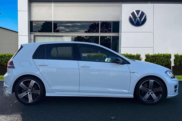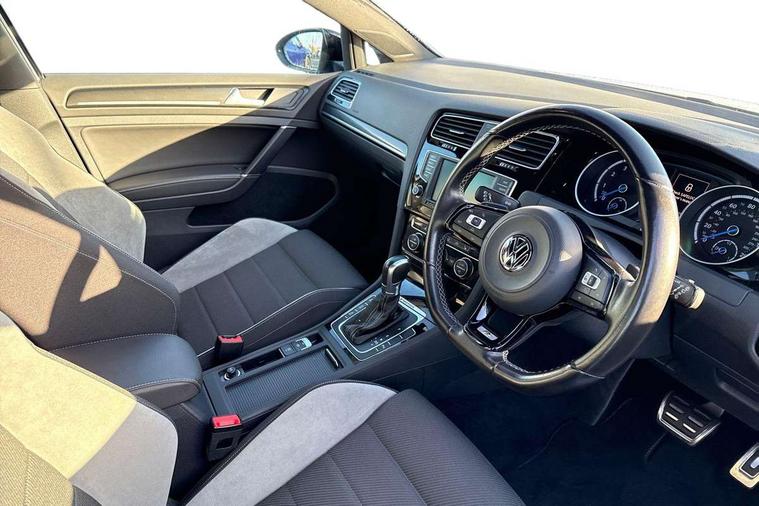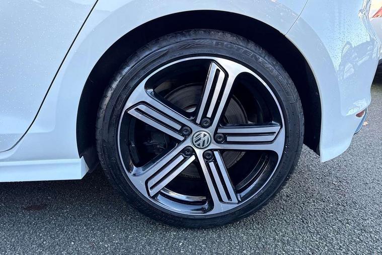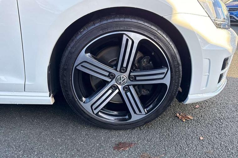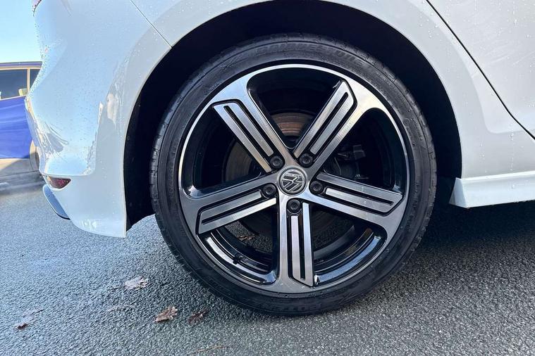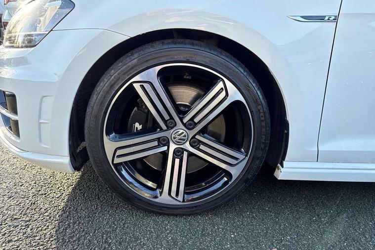 'Lights On' Reminder warning buzzer, ACC - Adaptive cruise control with front assist, forward collision warning, distance monitoring, city emergency brake and speed limiter, Bluetooth Telephone preparation, Brake pad wear indicator warning light, Driver alert system, Driver profile selection, Exterior temperature gauge, Flat tyre indicator, Infotainment system, Instrument cluster in white, Multi function display colour screen, Multifunction computer, Progressive power assisted steering, Rev counter, Trip and service interval display, Ultrasonic front and rear optical and audible parking sensors, Warning buzzer and light for front seatbelts unfastened, Lowered sports suspension, XDS plus electronic differential lock, CD/MP3/WMA, USB and SD card reader, aux-in, Composition media system, DAB Digital radio, MDI with USB/iPod connection cables, Auto dimming rear view mirror, Automatic coming/leaving home lighting function, Automatic headlights, Bi-Xenon headlights and headlight washers with LED daytime running lights, Black rear diffuser, Body colour bumpers, Body colour door handles, Chrome louvres in grille, Dusk sensor + auto driving lights, Electric folding door mirrors with puddle lamps, Electric front windows, Electric rear windows, Electrically adjustable and heated door mirrors, Heated rear windscreen, LED rear lights, Rain sensor, Range adjustable headlights, Rear roof spoiler, Rear windscreen washer and wiper with interval delay, Reverse activated kerb-view adjustment on passenger's door mirror, Twin chrome exhaust tailpipes, Windscreen wipers/ intermittent wipe + 4 position delay, 12V socket in luggage compartment, 3 rear headrests, 3 spoke steering wheel, 60/40 split folding rear seat, Air conditioning - 2 zone electronic climate control, Ambient lighting, Bag hook in luggage compartment, Black headlining, Boot lashing points, Chrome-plated electric mirror adjustment switch surround, Chrome-plated electric window button surround, Courtesy light delay, Cover for storage compartment in centre, Driver/front passenger seat height adjustment, Dust/pollen filter, Foldable front passenger seat backrest, Front + rear carpet mats, Front centre armrest with storage box and rear air vents, Front footwell illumination, Front seat back storage pockets, Gearshift paddles, Grab handles, Height/reach adjust steering wheel, Illuminated door sills, Illuminated vanity mirrors, Isofix preparation for 2 rear child seats, LED reading lights, Load through provision, Lockable, illuminated, cooled glovebox, Luggage compartment cover, Luggage compartment lighting, Multifunction leather steering wheel with leather gear knob/handbrake grip, Passenger underseat drawer, Rear centre armrest with 2 cupholders, Rear cupholder, Stainless steel pedals, Storage box in luggage compartment, Storage compartment in roof console with cover, Storage compartments in doors, Variable boot floor, height adjustable and removable, White adjustable panel illumination, Styling pack - Golf R/R-Line, 3 point height adj front seatbelts + pretensioners, 3 rear 3 point seatbelts, ABS, Automatic post collision braking, Black brake calipers, Child locks on rear doors, Door open warning reflectors, Driver/Front Passenger airbags, Driver/Passenger whiplash optimised head restraints, Drivers knee airbag, Electronic parking brake with auto hold, Electronic tyre pressure monitoring, ESP with EDL + ASR, Front and rear curtain airbags, Front passenger airbag deactivation, Front side airbags, Fuel cut off safety device, Hydraulic Brake Assist (HBA), Pre crash system, Warning triangle and first aid kit holder, Alarm with interior protection, Anti-theft wheel bolts, Electronic engine immobiliser, Remote central locking with 2 remote folding keys, Carbon decorative inserts in dash and door panel, Chrome air vent surrounds, Chrome-plated light switch surround, Gloss black decorative inserts in centre console, Steel space saver spare wheel,