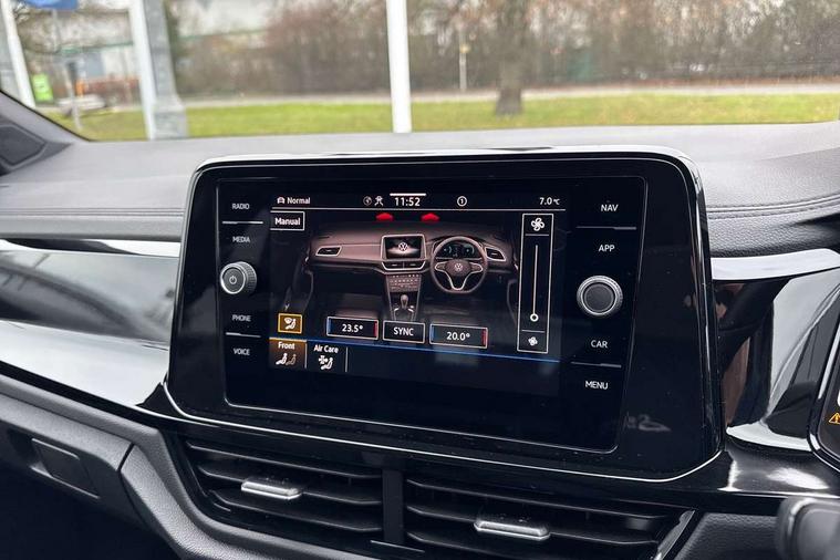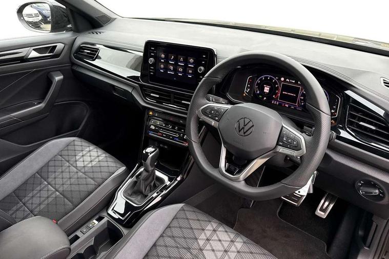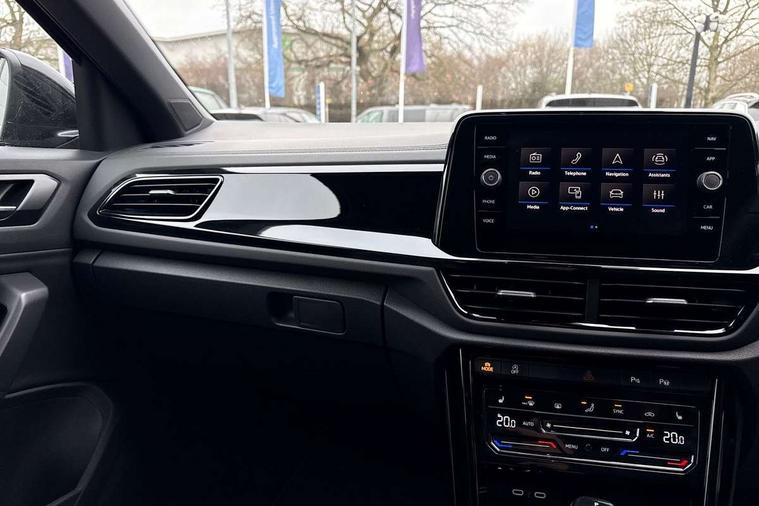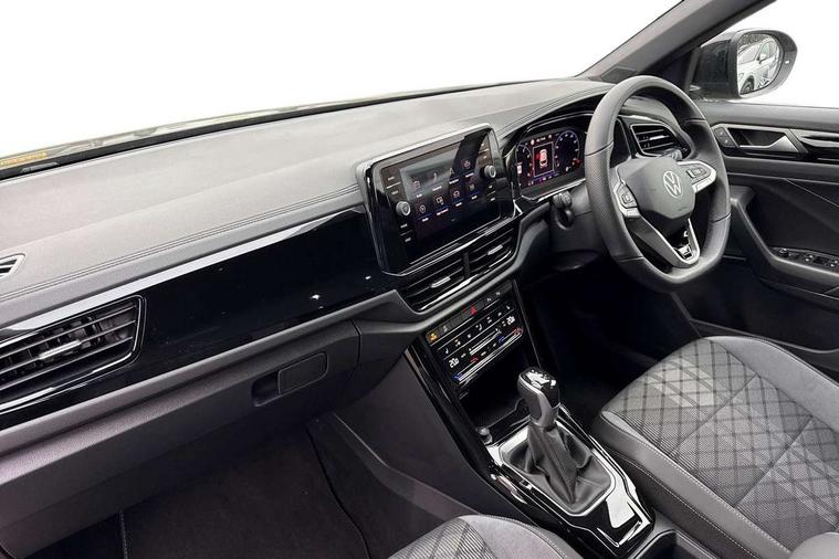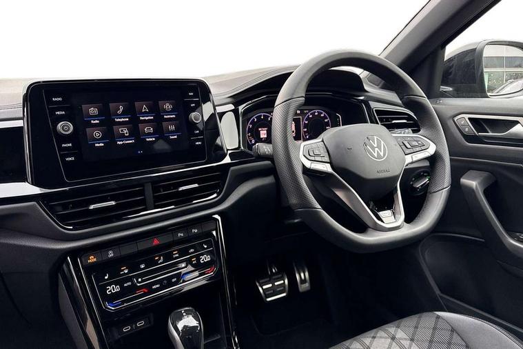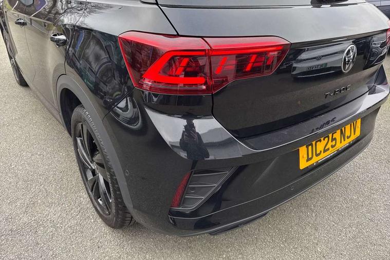 10.25" Digital cockpit pro, Advanced driver attention and drowsiness monitor, Emergency call service, Lane keeping system Lane Assist, Mobile phone interface, Modified key software - reduce switch off time for key status change to Long no motion, Online services, Park assist including front and rear parking sensors, Power assisted speed sensitive steering, Service interval indicator, Tailgate/trunk lid release from outside, Think blue trainer driver tips and journey analysis, Warning sound and light for front seatbelts unfastened, Wireless app connect, Battery regeneration during braking, Rear shock absorption chassis with increased ride height, Start/stop function with battery regeneration, DAB Digital radio, Diversity antenna for FM reception, Front and rear 6 speakers, Music playback - MP3, WMA and AAC files, Premium USB cable in choice of either Apple or Android smartphone compatibility, SD card slot, Simultaneous pairing of 2 compatible mobile devices, Title and cover art display, We Connect and We Connect Plus functionality, Auto dimming interior rear view mirror, Automatic hazard lights activation under emergency braking, Automatic headlight control with LED separate daytime running lights with coming/leaving home function, Dynamic cornering light, Electrically adjustable and heated door mirrors, Extended roof spoiler, Exterior mirrors aspherical on driver side, convex on front passenger side, External USB type C socket and charging sockets, Front windscreen wiper with intermittent wipe and 4 position delay, Heated rear window, Illuminated front grille, IQ LED matrix headlights, LED 3rd brake light, LED rear number plate lights, LED rear tail lights with dynamic turn signal, Light mode for poor weather, rain, fog or snow, Power windows with comfort operation and circuit breaker, R-Line design body coloured bumpers, Rain sensor, Rear exhaust tailpipe, Rear fog light on one side and reversing lights on both sides, Rear side wing doors, Rear wash/wipe with intermittent wipe setting, Remote electrically foldable door mirrors, puddle lights and reverse activated passenger's door mirror, 12V power socket in centre console, 3 rear head restraints, 3 seat bench in 2nd row, 4 load lashing points in luggage compartment, Air care climatronic air conditoning system with active combination filter and 2-zone temperature control, Artvelours cloth upholstery, Black roof lining, Chrome plated radiator grille inserts, air vent surrounds and light switch surrounds, Door and side trim panel with leatherette insert, Drawer under drivers seat, Driver seat height adjust, Driver's seat lumbar support, Front + rear carpet mats, Front centre armrest, Front comfort sports seats, Front cupholders x 2, Front footwell illumination, Front reading light, Front scuff plates with R Line logo, Front seat back storage pockets, Glove compartment door with light, Instrument lighting, white adjustable panel illumination, Interior ambient lighting and surround lighting, Interior light delay, Isofix child seat preparation, Leather gearshift handle, Leather wrapped multifunction steering wheel with paddle shift, Load-through provision with cup holder when folded down ('Unsplit rear seat bench, split folding backrest, with centre armrest), Luggage compartment lighting, Non-folding front passenger seat backrest, Passenger seat height adjuster, Passenger seat lumbar support, Single front passenger seat, Stainless steel pedals, Storage compartment in left and right luggage area, Storage compartment in rear doors, Storage compartments in driver and front passenger doors, Sunvisors with illuminated vanity mirrors, Variable boot floor, height adjustable and removable, Winter pack without heated windscreen washer jets - T-Roc, 3 point height adj front seatbelts + pretensioners, 3 point seatbelts in outer rear with ECE label, ABS, Child locks on rear doors, City emergency braking and pedestrian monitoring, Driver and front passenger airbag with front passenger airbag deactivation, Driver and front passenger safety-optimised head restraints, Drivers seatbelt reminder, Electronic parking brake, Electronic Stability Control (ESC) inc EDL (Electronic Differential Lock) and ASR (Traction Control), Front and rear passengers curtain airbag system including front side airbags, Front disc brakes, Hill start assist, Predictive pedestrian protection, Rear disc brakes, Two tone horn, Tyre pressure loss indicator, Volkswagen roadside assistance, Tool kit, Trims for alloy wheels, Tyre mobility kit including compressor and sealing foam,