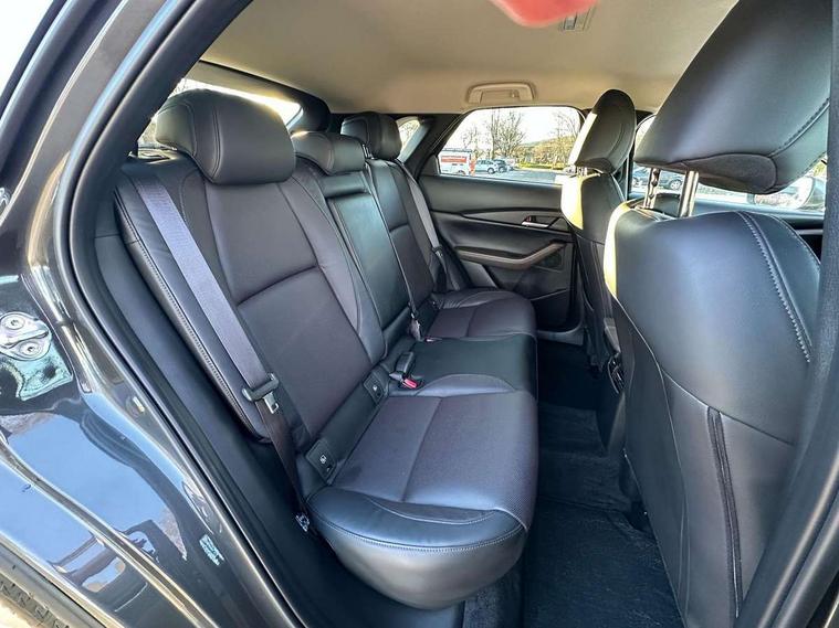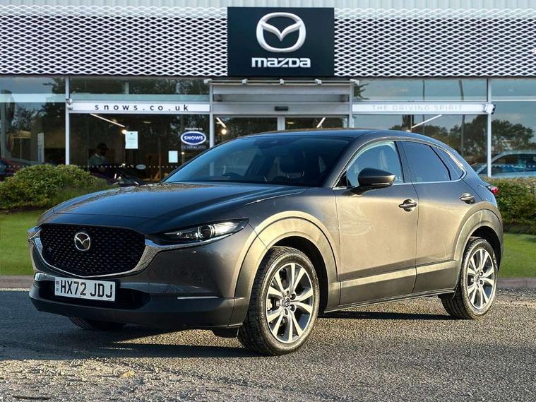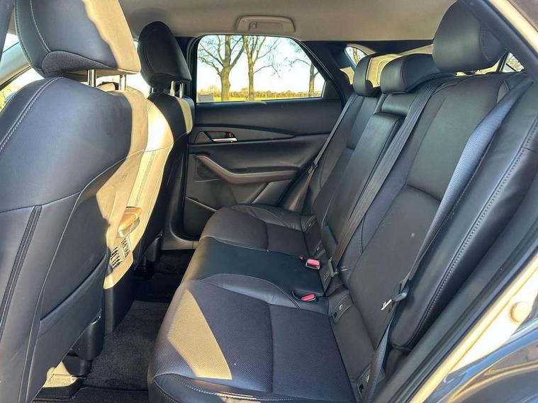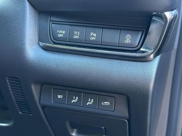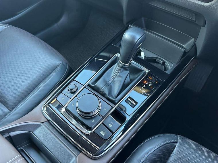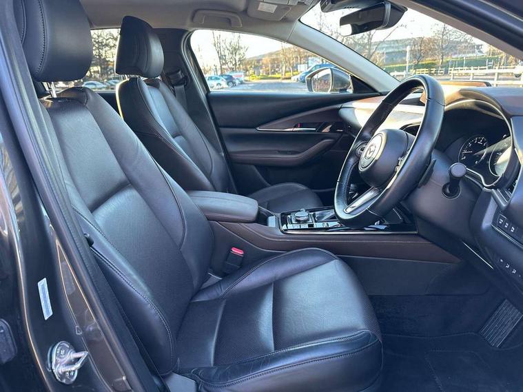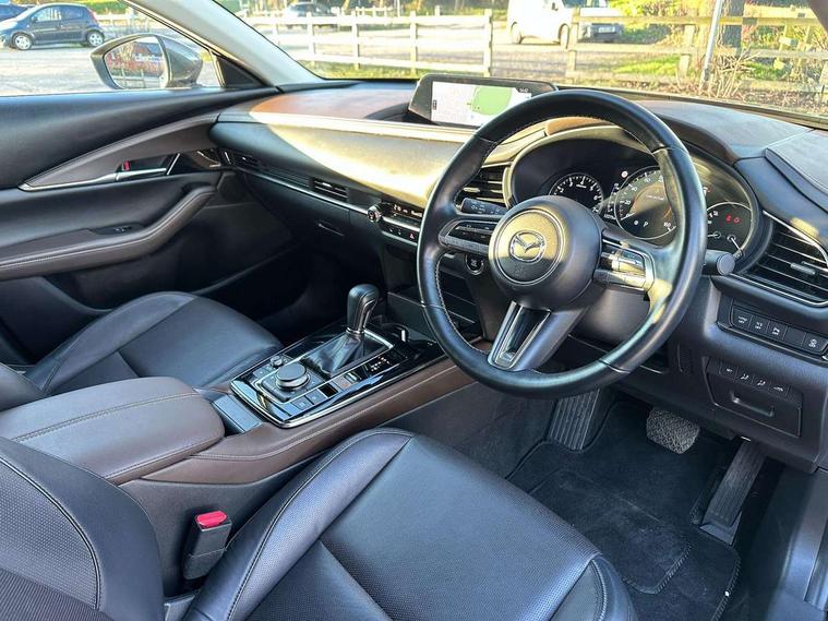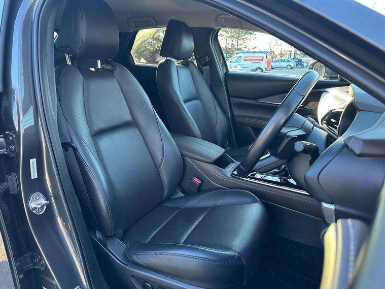 7" TFT Colour driver instrument panel display, 8.8" Colour centre touch screen display with Mazda Connect infotainment, Adaptive cruise control (Mazda radar cruise control) features stop and go, Apple car play/Android Auto, Blind spot monitoring with rear cross traffic alert, Drive mode selector, Driver attention alert system, E-call with GPS, Emergency stop signalling system, Engine start/stop button, Front and rear parking sensors, Integrated bluetooth, Integrated Mazda navigation system, Intelligent speed assist, Lane keep assist system (LAS) with Lane departure warning system (LDWS), Mazda connected services, PAS, Power lift gate, Reversing camera, Service indicator, Tailgate, Traffic sign recognition, Trip computer, Windscreen projected colour active driving display (HUD), Cylinder Deactivation, i-stop, 2 USB charging ports in front inner central armrest, AM/FM and DAB radio, Bose surround sound system with 12 Speaker, Bose center point, Bass match and audio pilot technology, Multimedia Commander including separate volume dial, Steering wheel mounted audio/bluetooth controls, Adaptive LED Headlights, Auto dimming driver's door mirror, Auto headlight levelling, B-pillar and C-pillar garnishes in piano black finish, Body coloured, electrically adjustable, heated auto power folding door mirrors with integrated indicators, Chrome finish signature wing in front grille, Coming/leaving home lighting function, Door mirrors with adjustable memory and tilt-down function when reversing, Dual chrome exhaust, Dusk sensing headlights, Electric front/rear windows with one touch auto up/down, Frameless auto dimming interior rear view mirror, Front kodo turn signal, Gloss black front grille, Gloss black rear roof spoiler, High beam assist, LED signature daytime running lights, Privacy glass (rear side windows and rear screen), Rain sensing front wipers with adjustable speed and intermittent wipe, Rear fog lights, Rear side wing doors, Rear wiper, Signature LED rear combination lights, Third brake light, 12V power outlet in centre console, 3 seat bench in 2nd row, 60/40 split fold down rear seats, Chrome horn pad ring, Chrome interior trim accents with steering wheel centre bezel, surround of engine start / stop button and glove box handle, Dashboard, door cards and front centre armrest in rich brown leather, Driver and front passenger visors with covered vanity mirror and driver ticket holder, Driver's seat, power tilt, slide, recline, height and lumbar adjustment, Driver, front passenger and two rear door storage, Driver, Front passenger and two rear grab handles with coathooks, Dual zone climate control air conditioning with rear air vents, Folding rear centre armrest with two cup holders, Front and rear (x3) head restraints, Front and rear LED lighting, Front armrest, Front centre storage with two cupholders with lid, Front passenger seatback pockets, Front passengers seat manual slide, recline and height adjustment, Glovebox illumination, Heated front seats with 3 stage setting, Heated steering wheel, ISOFIX child seat anchorage points attached on outer rear seats, Leather upholstery with interior accents, Leather wrapped gear shift knob, Leather wrapped steering wheel with telescopic and tilt adjustment, LED luggage compartment lighting, Light roof headlining and pillars, Paddle shift controls, Rear armrest inner material in cloth, Roof mounted sunglasses holder, Single front passenger seat, 3 point ELR front seat belts x2 with pretensioners, 3 point ELR rear seat belts, Anti-lock braking system (ABS), Drivers knee airbag, DSC - Dynamic Stability Control, Electronic parking brake with auto disengage function and auto hold function, Front and rear curtain airbags, Front dual stage driver and single stage front passenger airbags, Front passenger airbag cut-off switch, Front side airbags, Front smart city brake support, G-Vectoring control plus, Hill launch assist, Manual child lock in rear doors, Mild Hybrid system with regenerative braking, Seatbelt reminder for driver/front passenger and rear seats, Traction control system (TCS), Tyre pressure monitoring system (TPMS), Remote central locking with deadlocking and automatic door lock when driving, Smart keyless entry, Thatcham accredited alarm and immobiliser, Dark vinyl door panel inserts, 18" Silver alloy wheels, Emergency tyre repair kit,