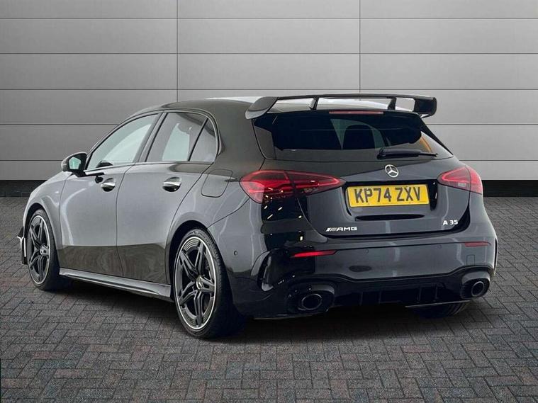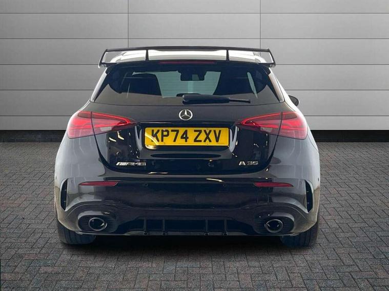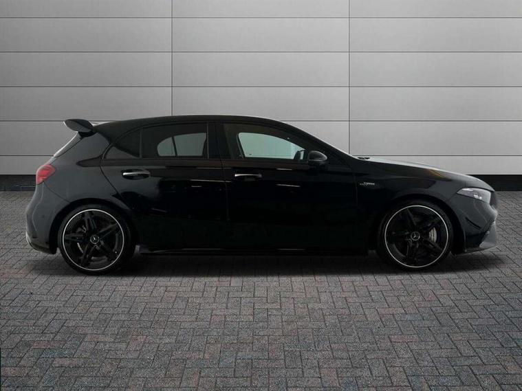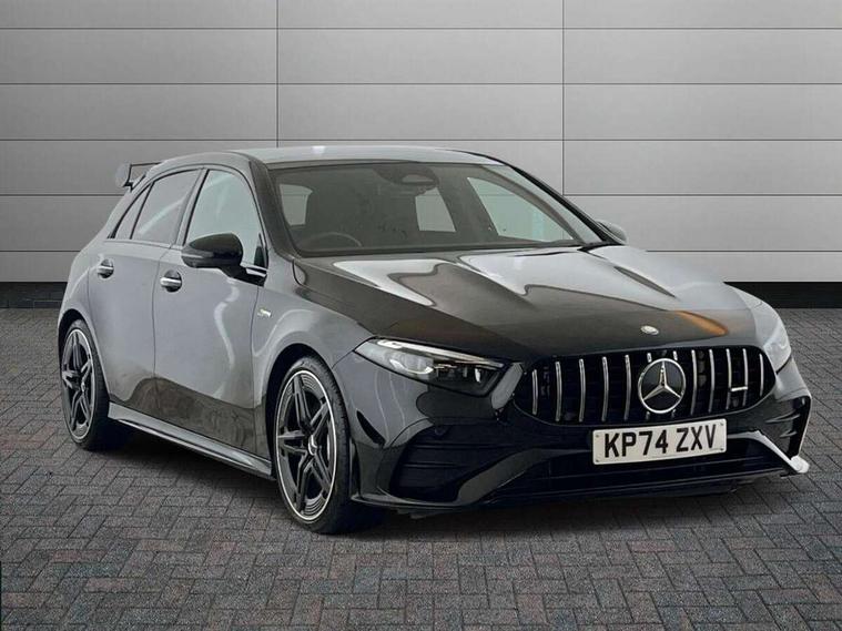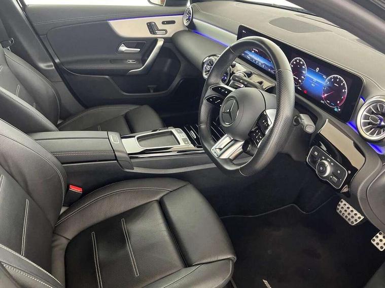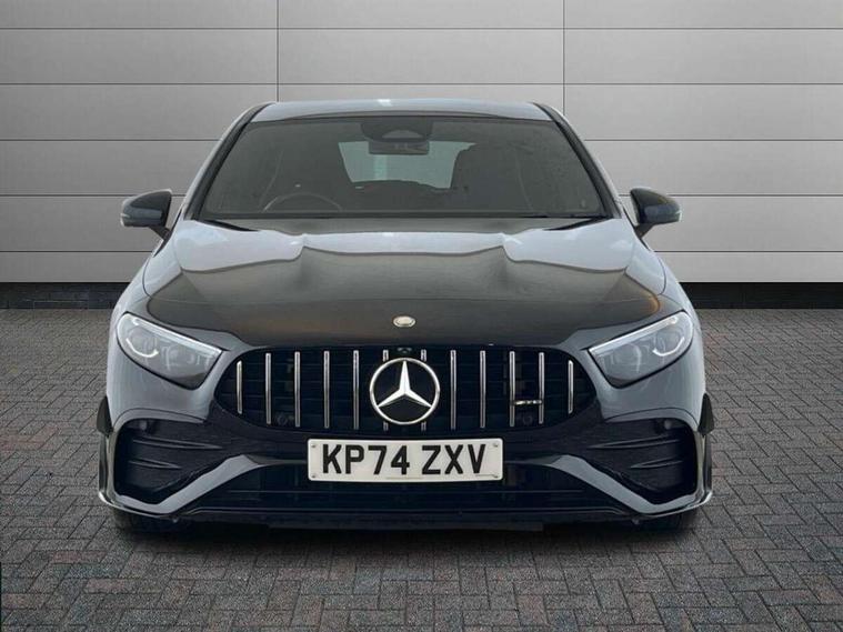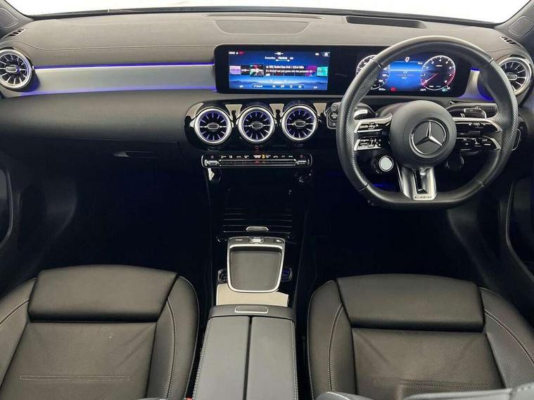 10.25 inch touchscreen central media display, 10.25" Digital instrument cluster display screen, Attention assist, Brake pad wear indicator warning light, Car wash mode, Direct steering, Direction indicators with lane change function, Dual bluetooth interfaces, DYNAMIC SELECT with driving programs (Slippery, Comfort, Sport, Sport+ and Individual), Easy pack tailgate hands-free access, ECO start/stop function, Engine start/stop button, Fingerprint scanner, Fluid level warning indicator for fuel, oil, coolant and washer fluid, Fluorescent jacket for driver, Hard-disk navigation, Head up Display, Hey Mercedes Voice activation, Lamp failure indicator, MBUX augmented reality for navigation, MBUX Interior assistant, Mercedes me connect including emergency call system, accident recovery, breakdown and maintenance management, Mercedes me remote services, Outside temperature gauge, Owners manual in English, Pre-installation of private car share, Preinstallation for Mercedes Benz link, Remote boot closing, Service indicator (ASSYST), Smartphone integration with Apple CarPlay and Android auto, Speed sensitive power steering, Tailgate, Traffic sign assist, Trip computer in multifunction display with current consumption indicator, Wireless charging, AMG suspension, Suspension with adaptive damping system, DAB Digital radio, MBUX multimedia system, Mercedes Benz advanced sound system (225 W) with 10 speakers, 1 central speaker, speakers on doors, a tweeter on door, one sub woofer + boost amplifier, 4 Electric Front and Rear windows, Adaptive brake lights, AMG body styling - AMG front apron with front splitter and AMG rear apron and visible exhaust tailpipe trim elements, AMG Front apron with flics as air deflector elements on the outer air intakes, AMG radiator grille with twin blade lamella and AMG Lettering, AMG Rear apron with specific diffuser look with four vertical fins and two round chrome plated tailpipe trim elements with a diameter of 90 mm, AMG spoiler lip on roof, Beltline strips in High gloss Black, Body colour bumpers, Body colour door handles with chrome inserts, Body colour side skirt, Electric adjustable and heated door mirrors with integrated LED side indicators, Front splitter and trim elements on the louvres in the outer air inlets, Front wings wheel arches with TURBO 4MATIC lettering, Headlamp assist automatic headlamp activation, Heat insulating dark tinted rear and rear side windows, Heated glass rear windscreen + timer control, LED daytime running lights, LED High level third brake light, LED tail lamp, Multibeam LED headlamps with adaptive highbeam assist and cornering function, Panoramic sliding sunroof, Privacy glass, Radio aerial, Rain sensing windscreen wipers with two sensitivity settings, Rear fog lights, Rear side wing doors, Rear windscreen wiper, Surround lighting with logo projection, Wider wheel arches for AMG wheels, Window line trim strip in black, 3 seat bench in 2nd row, 40:20:40 split folding rear seats, Air conditioning - Two zone thermotronic luxury automatic climate control with display, AMG floor mats, AMG Performance steering wheel in nappa leather, Automatic child seat recognition sensor, Black air vents with surround in silver chrome, Black roof lining, Brushed stainless steel sports pedals with rubber studs, Electrically adjustable front memory seats including lumbar support and backrest inclination, Front centre armrest with stowage, Front seat backs luggage nets, Height/reach adjustable steering column, Illuminated AMG front door sills with changeable cover, Interior lighting - 64 colour Ambient lighting, Interior mirror with reading lamps in black and frameless, Rear armrest with 2 cupholders, Seat occupancy sensor for front passenger seat, Silver coloured aluminium gear shift paddles on steering wheel, Single front passenger seat, Sports seats with integrated headrests, Stowage compartment in centre console with retractable cover, Sunvisors with illuminated vanity mirrors, Twin front cupholders, Aerodynamic pack - A Class, AMG night pack - A Class, Light and sight package - A Class, Mirror package - A Class, Parking pack with 360 degree camera - A Class, Seat comfort pack - A Class, USB pack plus - A Class, Winter pack - A Class, 3 rear 3 point seatbelts, ABS with Brake Assist, Active bonnet, Adaptive brake assist with hold function and hill start assist, Black seatbelts, Bonnet with power domes, Childproof locks manually operated for rear doors and electrically operated for rear power windows, Crash responsive emergency lighting, Driver and passenger head and side airbags, Drivers knee airbag, Dual stage driver/passenger airbags, Electronic parking brake, ESP curve dynamic assist, ESP with ASR, Exit warning, Front and rear seatbelt reminder, Front brake calipers with AMG lettering, ISOFIX and top tether child seat fixing points in two outer rear seats, Tyre pressure monitoring system, Warning triangle and first aid kit, Window airbags, Alarm system/interior protection/immobiliser, Guard 360 degree vehicle protection, Keyless entry lock/unlock, Keyless Go, Remote central locking and crash sensor with emergency opening function, Light longitudinal grain aluminium trim, 19" AMG 5 twin spoke light alloy wheels aerodynamically optimised painted in matt black with high sheen rim flange, Summer tyres, Tirefit sealant kit,