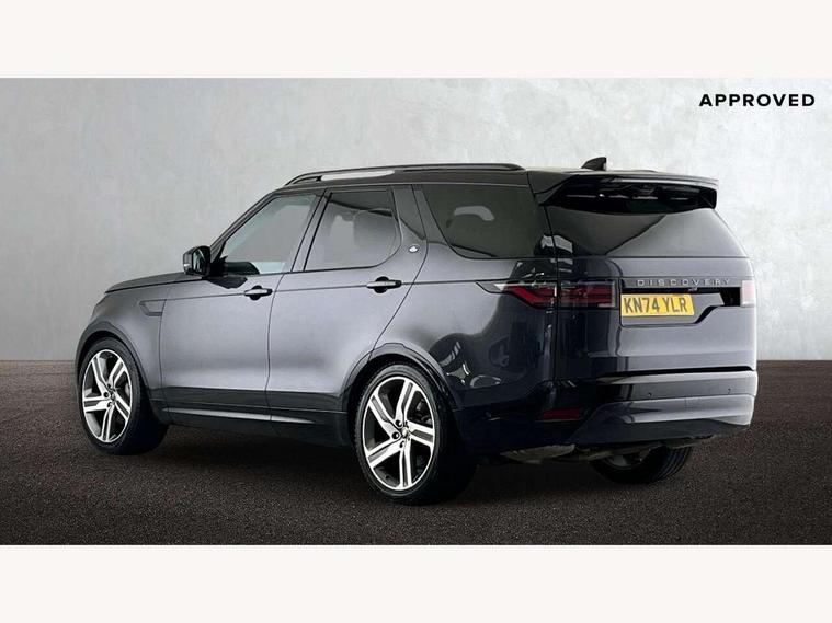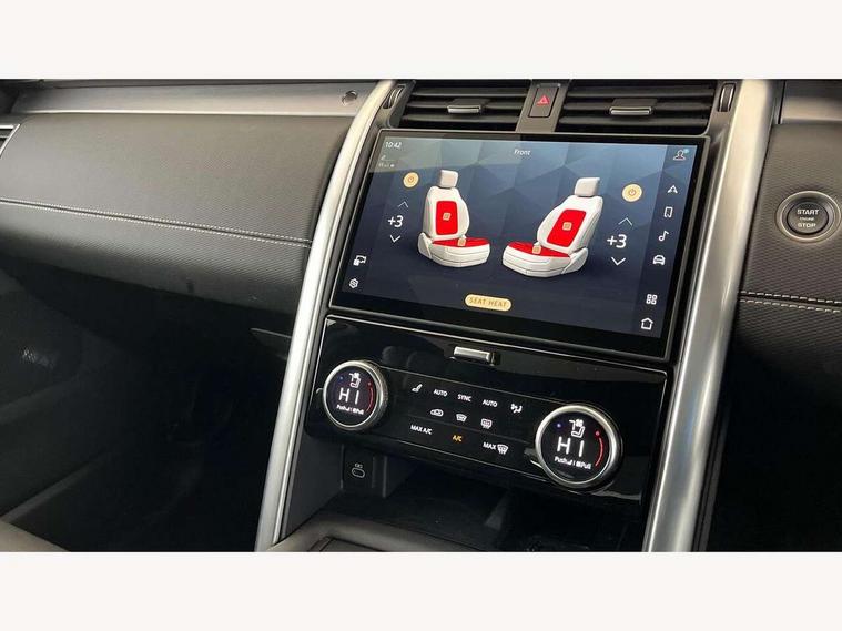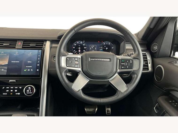 11.4" touchscreen, 3D surround camera, Adaptive cruise control, Android Auto, Apple car play, Blind spot assist, Driver condition monitor, Electric power assisted steering (EPAS), Emergency services call system, Front and rear parking aid, Interactive driver display, Lane keep assist, Power inner tailgate, Power tailgate/boot lid, Push button start, Rear collision monitor, Rear traffic monitor, Remote, Remote boot release, Service interval indicator, Speed proportional steering, Sportshift selector, Stop/start system, Traffic sign recognition with adaptive speed limiter, Trip computer, Wade Sensing, Adaptive dynamics, Dynamic stability control, Electronic air suspension, Front axle open differential, Digital Audio Broadcast radio-DAB, Dynamic volume control, Pivi pro connected, USB/aux input socket, Acoustic laminated windscreen, Animated directional indicators, Auto dimming interior rear view mirror, Automatic headlight levelling, Automatic headlights, Body colour bumpers, Body colour door handles, Centre high mounted stop light, D300 badge, Electric heated/power fold memory door mirrors with approach lights and auto dimming driver side, Electric windows with one touch open/close and anti-trap, Heated rear window, Heated windscreen, LED darkend tail lights, Matrix LED headlights with signature DRL, Narvik black Discovery script, Privacy glass, Puddle lights, Rain sensing windscreen wipers, Rear fog lights, Rear side wing doors, Rear wash/wipe, Trailer stability assist, Variable intermittent wiper, 12V power sockets, 12V USB charging socket in loadspace, 2 seat bench in 3rd row, 3 seat bench in 2nd row, 60/40 electric heated folding rear seats with manual slide and powered recline, centre headrest and armrest, Central hinged twin lidded storage, Configurable cabin lighting, Ebony morzine headlining, Electric adjustable steering column, First and second row door bins, Footwell lights, Front and rear 12V with front USB, Front passenger seat isofix location point, In-facia storage, Isofix child seat preparation for front passenger seat, Leather steering wheel, Loadspace cover, Loadspace Hook, Loadspace light, Lockable glovebox, Lower centre console storage, Luggage tie downs in loadspace, Multi function steering wheel, Overhead lighting console, Premium carpet mats, Rear ISOFIX, Shopping bag hook, Single front passenger seat, Storage glovebox, Sunvisors with illuminated vanity mirrors, Third row storage, Treadplates with metal inserts, Twin front cupholders with cover, USB with 12V socket in centre console, Black exterior pack - Discovery Dynamic SE/HSE, Online pack with data plan - Discovery, 3x3 point rear seatbelts, Anti-lock braking system (ABS), Brake pre-fill technology, Cornering brake control, Curtain airbags, Customer configurable autolock, Driver and passenger airbags, EBD - Electronic brakeforce distribution, Electronic traction control, Emergency brake assist, Emergency braking, ESP, Front side airbags, Gradient acceleration control, Hill descent control, Hill launch assist, Power operated child locks, Rear airbags, Roll stability control, Seat belt reminder, Torque vectoring brake, Tyre pressure monitoring system, Immobiliser, Intrusion sensor, Keyless entry, Locking wheel nuts, Remote central locking, All terrain tyres,