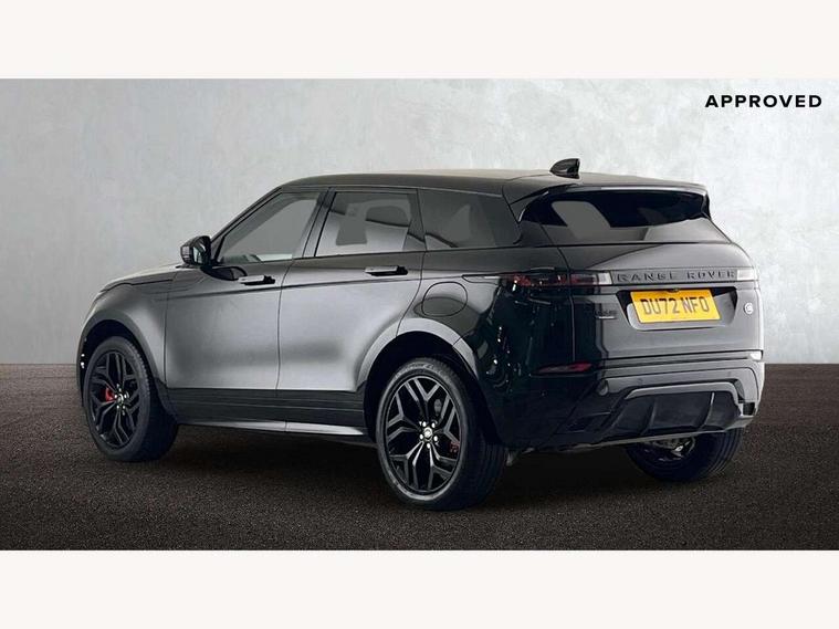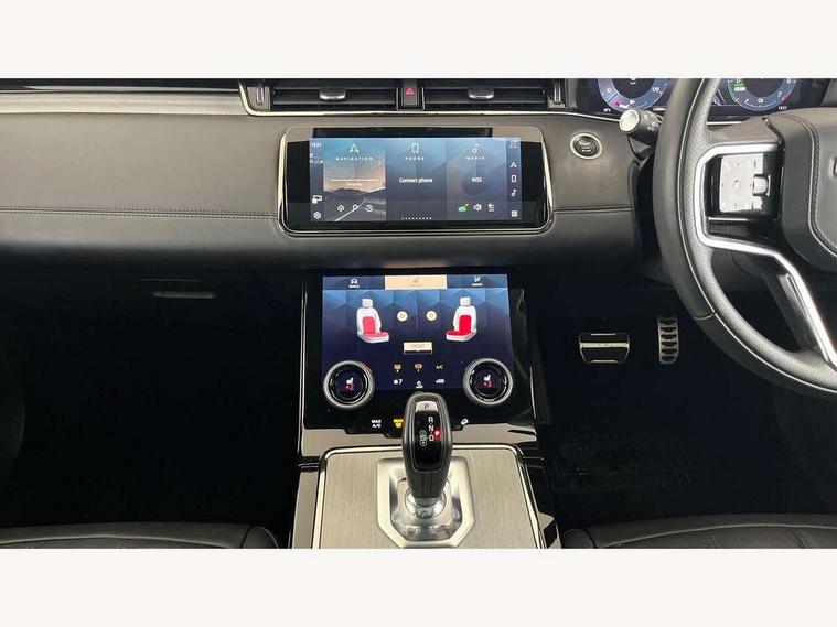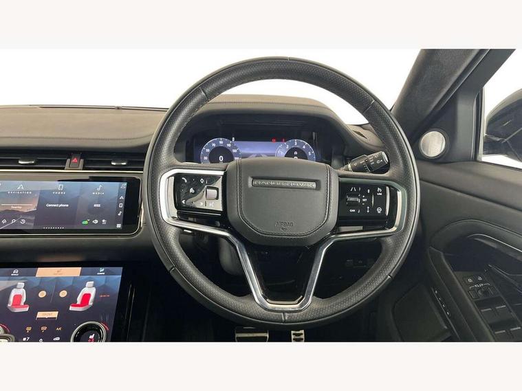 10" deployable touchscreen with lower touchscreen, Adaptive cruise control, Android Auto, Apple car play, Blind spot assist, Bluetooth connectivity, Brake pad wear indicator warning light, Driver condition monitor, eCall emergency system, Electronic power assisted steering (EPAS), Front and rear parking aid, InControl remote, Land Rover InControl apps, Lane keep assist, Pivi pro connected includes upgraded infotainment, connected navigation pro, Nuance speech licence, Powered gesture tailgate/boot lid, Push button starter, Rear collision monitor, Rear traffic monitor, Traffic sign recognition with adaptive speed limiter, Voice control system, 7 kW onboard charger, All terrain progress control, Configurable dynamics, Electric rear axle drive, Home charging cable, Large fuel tank, Passive suspension, Public charging cable, Terrain Response 2 Auto, Digital Audio Broadcast radio-DAB, Meridian surround sound system with 650W subwoofer and 14 speakers, Steering wheel mounted controls, Auto headlights, Autobiography badge, Automatic headlight levelling, ClearSight interior rear view mirror, Electric windows with one touch open/close and anti trap, Evoque and R-Dynamic badge, Flush deployable exterior door handles, Heated rear window with timer, Heated washer jets, Heated windscreen, Matrix LED headlights with signature DRL, intelligent high beam assist, signature Hi-Line tail lights and animated directional indicators, Power fold, auto-dimming, heated door mirrors with approach lights and auto dimming driver side, R-Dynamic branding illuminated metal tread plates in loadspace and row 1 with brand name script and non illuminated metal in row 2, Rain sensing windscreen wipers, Rear fog lights, Rear side wing doors, Rear wiper, Tailgate spoiler, Third brake light, 14 way electric heated/cooled front and rear seats with driver memory, 2 way man headrest, electric 4 way lumbar support, bolsters + headrest adj, 40:20:40 split folding rear seats with centre headrest and armrest, Ambient interior lighting, Bright metal pedals, Electrically adjustable steering column with memory function and easy entry/exit, Full extended leather upgrade, Heated steering wheel, Isofix system on outer rear seats, Overhead lighting console, Overhead stowage for sunglasses, Passive front head restraints, Perforated full leather steering wheel, Premium cabin lighting, Premium carpet mats, Rear air vents, Rear centre headrest, Rear head restraints, Satin chrome gearshift paddles, Single passenger seat, Sunvisors with illuminated vanity mirrors, Twin sliding front centre armrest, 3 rear 3 point seatbelts, Anti-lock braking system (ABS), Customer configurable autolock, DSC - Dynamic Stability Control, Electronic brake force distribution, Electronic parking brake, Electronic traction control, Emergency braking, Front and rear seatbelt reminder, Hill descent control, Hill launch assist, Low traction launch, Power operated child locks, Red brake calipers, Roll stability control, Six airbags - Driver and passenger airbags/driver knee airbag/front side airbag and curtain airbags, Torque vectoring brake, Tyre pressure monitoring system, Alarm, Immobiliser, Intrusion sensor, Keyless entry, Locking wheel nuts,