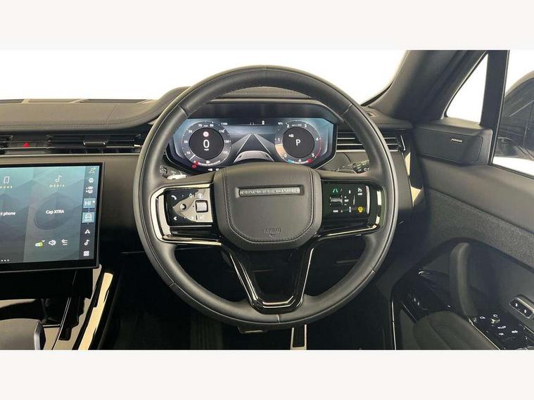 13.1" Touchscreen, 3D 360 degree surround camera with wade sensing, Adaptive cruise control with steering assist, Android Auto, Apple car play, Blind spot assist, Bluetooth connectivity streaming, Driver condition response, Eco mode, Electric power assisted steering (EPAS), Interactive Driver display instrument cluster, Lane departure warning system, Lane keep assist, Push button start, Rear collision monitor, Rear traffic monitor, Remote, Traffic sign recognition with adaptive speed limiter, Trip computer, Wireless device charging, 8 speed automatic transmission, Adaptive dynamics, All wheel drive system, Automatic access height, Dynamic air suspension, Terrain Response 2, DAB Radio (Digital Audio Broadcasting), Incontrol protect - SOS emergency call with automatic collision detection, optimised assistance call and Incontrol remote app essential, Pivi pro connected, USB/aux input socket, Adaptive brake lights, Automatic headlight levelling, Automatic headlights, Centre high mounted stop light, Electric heated/power fold memory door mirrors with approach lights and auto dimming driver side, Electric windows with one touch open/close and anti trap, Flush deployable exterior door handles, Follow me home lighting, Front and rear recovery eyes, Headlight power wash, Heated rear window, Heated washer jets, Heated windscreen, LED tail lights, Metal load space scuff plates, No badges, Rain sensing windscreen wipers, Rear animated directional indicators, Rear fog lights, Rear side wing doors, Rear wash/wipe, Remote window closing, Side repeater indicators in mirror, Trailer stability assist, Winter wiper park position, 3 seat bench in 2nd row, 60:40 seats with power recline and loadthrough, Air quality sensor, Auto air recirculation, Bright metal foot pedals, Centre console with armrest, Customer configurable single point entry, Driver's footrest, Easy boot loading, Ebony console door armrests and seatbelts, Electric adjustable steering column, Extended leather upgrade, Front and rear cupholders, Front door storage space, Front head restraints, Front map lights, Front seat back map pockets, Front stowage pocket, Front/rear passenger grab handles, Gearshift paddles, Heated steering wheel, Isofix child seat preparation, Loadspace cover, Loadspace Hook, Loadspace light, Loadspace mounting provisions, Lockable glovebox, Luggage tie-downs in loadspace, Multifunction steering wheel, Pollen filter, Power socket, Rear centre armrest, Rear head restraints, Rear ISOFIX, Single front passenger seat, Three 12V accessory power outlets, Upper secondary glovebox, Online pack with data plan - Range Rover Sport, 3 point seatbelts on all seats, Anti-lock braking system (ABS), Brake pre-fill technology, Configurable autolock, Cornering brake control (CBC), DSC - Dynamic Stability Control, EBD - Electronic brakeforce distribution, Electric parking brake, Electronic traction control, Emergency braking, Front seatbelt pretensioners, Front side airbags, Height adjustable front seatbelts, Hill descent control, Hill launch assist, Low traction launch, Occupant protection assist, Passenger seat occupant detector with front airbags, Power operated child locks, Roll stability control, Seatbelt warning, TPMS (Tyre pressure monitoring system), Immobiliser, Intrusion sensor, Keyless entry, Locking wheel nuts, Perimetric and volumetric anti theft alarm, Remote locking, Moonlight noble chrome interior finishers,