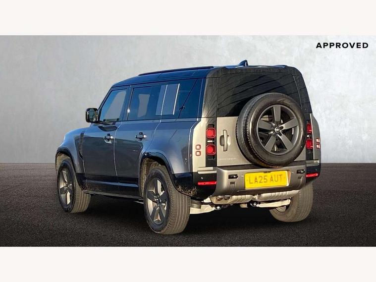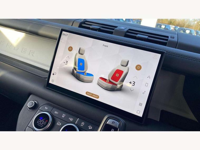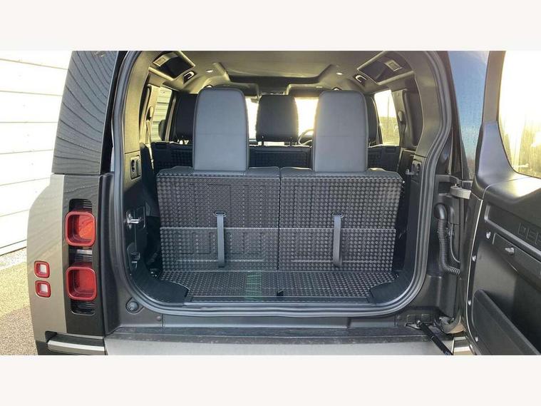 1 x USB-C (power only) & 1 x USB-C (power & data) in Row 1, 2 x USB-C in Row 2, 11.4" touchscreen, 2 x USB-C in Row 3, 360 degree parking aid, 3D Surround Camera with 360 View, 180 Rear View, Front Traffic Detection, Forward Vehicle Guidance, Tow Hitch Assist and clear sight Ground View, Adaptive cruise control, Android Auto, Apple CarPlay, Blind spot assist, Bluetooth system, Brake pad wear indicator, Clear exit monitor, Connected navigation pro, Driver condition monitor, Electric power assisted steering (EPAS), Interactive driver display, Lane keep assist, Push button start, Rear collision monitor, Rear traffic monitor, Traffic sign recognition with adaptive speed limiter, Trip computer, Wireless device charging, 8 speed automatic transmission, All wheel drive system, Twin speed transfer box, DAB Radio (Digital Audio Broadcasting), Meridian 700w surround sound audio system with 15 speakers, Pivi pro connected, Automatic headlight levelling, Automatic headlights, Black exposed rear recovery eyes, Body coloured bonnet, Centre high mounted stop light, Electric heated/power fold door mirrors with approach lights and auto dimming driver side, Electric windows with one touch open/close and anti-trap, Follow me home lighting, Front fog lights, Heated rear window with timer, Heated windscreen, Illuminated metal treadplates with brand name script, LED tail lights, Matrix LED headlights with signature DRL, Privacy glass, Puddle lights, Rain sensing windscreen wipers, Rear fog lights, Rear side wing doors, Rear wiper, Side hinged tailgate, Sliding panoramic roof, Standard tail door, Trailer stability assist, X-Dynamic badge, 12V power socket in loadspace, 2 seat bench in 3rd row, 3 seat bench in 2nd row, Alpine lights, Configurable cabin lighting, Durable rubber cabin flooring, Durable rubber loadspace flooring, Electric reach + rake adjustable steering column, Electrically adjustable steering column, Extended leather upgrade, Footwell lights, Front head restraints, Front passenger isofix child seat attachment, Heated steering wheel, Loadspace cover, Loadspace Hook, Multifunction steering wheel, No flat load floor storage, Overhead stowage for sunglasses, Rear headrests, Rear ISOFIX, Rear reading lights, Single front passenger seat, Soft close tail door, Storage glovebox, Sunvisors with illuminated vanity mirrors, Twin front cupholders, Air suspension pack - Defender SE/HSE/X-Dynamic SE/X-Dynamic HSE, Non-smoker package, Online pack with data plan - Defender, 7 three point seatbelts, ABS, Brake hold function, Cornering brake control (CBC), Customer configurable autolock, Driver and passenger airbags, DSC - Dynamic Stability Control, EBD - Electronic brakeforce distribution, Electric parking brake (EPB), Emergency brake assist, Emergency braking, ESP + traction control, Front airbags with passenger seat occupant detector, HDC - Hill descent control, Hill launch assist, Low traction launch, Power operated child locks, Remote for (e-Call, Optimised assistance call, InControl app, Climate, beep and flash and door), RSC - Roll stability control, Seat belt reminder, TPMS (Tyre pressure monitoring system), Alarm, Immobiliser, Intrusion sensor, Keyless entry, Locking wheel nuts, Secure tracker pro,
