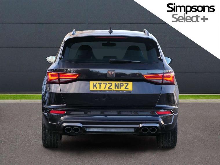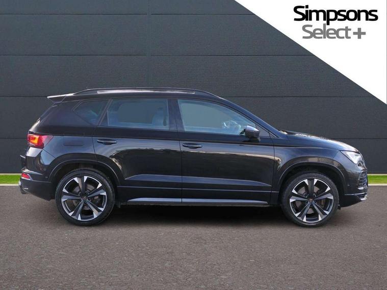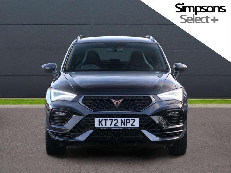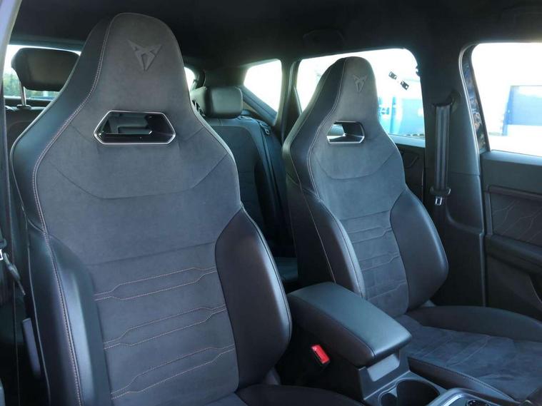 Cruise control system with speed limiter, CUPRA drive profile -Normal, Sport, CUPRA and Individual modes, steering/throttle response, gearshift mode, sound actuator and dynamic chassis control, Digital cockpit, E-call, Front and rear view camera, Outside temperature gauge, Progressive power assisted steering, Self parking functionality (includes front and rear parking sensors), Top view camera, Trip computer, Wireless full link smartphone integration, Wireless phone charger, CUPRA sport suspension, Beats audio system, Steering wheel mounted audio/phone controls, Body colour bumpers with dark aluminium diffusor, Body coloured wheel arch surrounds, Dark tinted rear windows, Daytime running lights, Door mirrors with welcome CUPRA light silhouette, Dynamic headlight range control with self adjusting whilst driving, Electric adjustable/heated/folding door mirrors, Front and rear electric windows, Front grille frame in chrome, Full LED headlamps with lens and LED front fog lamps with cornering function, Gloss black door mirrors, Gloss black roof rails, Gloss black side mouldings, Gloss black side window trim, Illuminated aluminium front door sill, LED rear tail lights with dynamic indicators, Rear fog lights, Rear side wing doors, Rear spoiler, Rear wash/wipe, Specific CUPRA design front bumper, Third brake light, Visible twin black exhaust pipes in both sides with dark aluminium diffuser, 12V socket in front, 3 seat bench in 2nd row, 60/40 split folding rear seat, Aluminium pedals, Bucket sport seats in dinamica upholstery, Cupra steering wheel emblem, Document holder under left front seat, Dual zone climate control, Front and rear head restraints, Front centre armrest, Front seat back storage pockets, Heated steering wheel, Height adjustable driver and passenger seat with lumbar adjustment, ISOFIX points in outer rear seats with top tether anchorage points, Leather steering wheel and gear knob, Multicoloured ambient lighting with LED interior illumination, Pedal cluster, Rear armrest and easy back seat release mechanism from boot, Single front passenger seat, Steering wheel mounted gearshift paddles, Storage compartment in roof console for sunglass, Storage compartment under driver's seat, Convenience pack - Ateca, Interior lighting pack - Ateca, Navigation system plus pack with DAB - Ateca, 3x3 point rear seatbelts, ABS, Traction control system (TCS), Electronic stability control (ESC) and Electronic differential lock system (XDS), Airbags - Driver and front passenger airbag with deactivation, front side, two curtain and driver's knee airbags, Black brake callipers with CUPRA logo, Electric parking brake with auto hold function, Front and rear seatbelt reminder, Front assist with autonomous emergency braking, Hill hold control, Manual rear child locks, Single tone horn, Tiredness recognition system, Tyre pressure monitoring system, Alarm, Keyless entry, Locking wheel bolts,