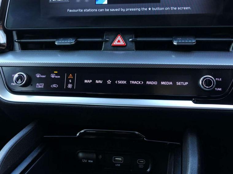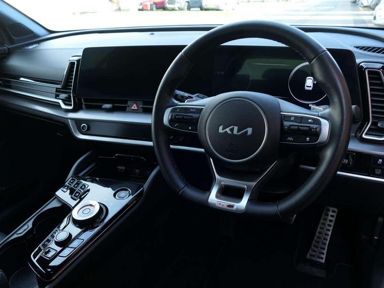 12.3" Display with navigation, 12.3" supervision colour cluster display, 360 degree around view monitor, Apple car play/Android Auto with voice control, Blind spot collision avoidance assist, Blind spot view monitor, Drive mode selector, E-call, Forward collision avoidance assist (FCA) - city/pedestrian/cyclist/junction covering, Front and rear parking sensors, Highway Driving Assist (HDA), Intelligent speed limit assist, Kia Connect (UVO), Lane Following Assist (LFA), Lane keep assist, Low washer fluid warning, Parking collision avoidance assist (PCA), Remote smart parking assist, Reversing camera system integrated into centre fascia screen, Smart cruise control with stop and go functionality, Smart power tailgate, Speed sensitive power steering, Trip computer, Windscreen washer level indicator, Wireless Smartphone charger, Intelligent Stop and Go, Bluetooth audio streaming, DAB Radio with MP3, Harman Kardon premium sound system, Rear USB port, Steering wheel mounted audio controls, USB C type charging ports on centre console, USB C type charging ports on side of front seats, USB port for connection of a media device, All round electric windows with drivers and front passenger auto up/down function, Automatic headlight control system, Automatic window defogger, Backlite glass heated with timer, Body colour and black bumper with silver accents, Body colour exterior door handles, Body colour radiator upper garnish and door garnish, Dual LED adaptive headlamps, Electric panoramic glass sunroof (Electric one touch with safety function), Electrically adjustable/heated/folding door mirrors with LED indicators, Front and rear chrome skid plates, Gloss black door mirrors, Gloss black radiator grille, Gloss black side sill and wheel arch body mouldings, Glossy black roof rack, High beam assist, Interior electrochromic mirror, LED daytime running lights, LED front fog lamps, LED High mounted stop light, LED rear combination lamp, Rain sensing wipers with aero blades, Rear fog lamp, Rear privacy glass, Rear side wing doors, Rear spoiler, Rear wiper, Satin finished beltline, Silver coloured inserts to bumpers, Tinted rear glass, Trailer stability assist, 10 way driver/8 way passenger electrically power adjustable seats, 12V power socket in front centre fascia and luggage compartment, 3 seat bench in 2nd row, 3 x passenger assist grips, 40/20/40 split folding rear seat, All-round height adjustable headrests, Ambient lighting, Black headlining, Centre console storage box, Cupholders in rear armrest, D-Shaped sports leather steering wheel and perforated inserts with GT-Line logo, Door courtesy lamps, Drink holder at centre armrest, Driver and front passenger side sunvisors with illuminated vanity mirrors, Driver seat memory function, Drivers seat power lumbar support, Front and rear door storage, Front seat and rear pockets, Front/rear centre armrests, Gear shift indicator, Glovebox illumination, Heated front and outer rear seats, Heated steering wheel, Interior door lock/unlock function, ISOFIX Child seat top tethers and anchor fixings outer rear seats, LED interior personal lamp, LED lighting in overhead console, Luggage area LED light, Luggage area load cover, Luggage net with hooks, Metal paint interior door handles, Paddle shift controls, Rear cabin light, Rear coat hooks, Single front passenger seat, Sports pedals, Suede leather upholstery, Three zone climate control, Tilt/telescopic adjustable steering wheel, Ventilated front seats, Ventilation ducts to rear compartment, Active front headrests, All round 3-point seatbelts, Anti-lock braking system (ABS), Dual front side airbags, Dual horn, Electronic parking brake, Electronic stability control with downhill brake control, Front passenger airbag cut-off switch, Front seatbelt pretensioners + load limiters, Height adjustable front seatbelts, Hill start assist control (HAC), Impact sensing auto door unlocking, Multi collision brake assist, Rear door child safety locks, Rear seat alert system, Traction control, Twin curtain airbags, Twin front airbags, Tyre pressure monitoring system, Advanced anti-theft system including immobiliser and alarm, Door deadlocks, Engine Start/Stop Button with Smart Entry System, Locking wheel nuts, Speed sensitive auto door locking, Visible vehicle identification number, Aluminium pattern finish centre fascia and door garnish, 18" GT-Line alloy wheels, Michelin tyres, Tyre mobility kit,
