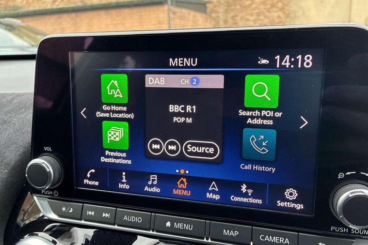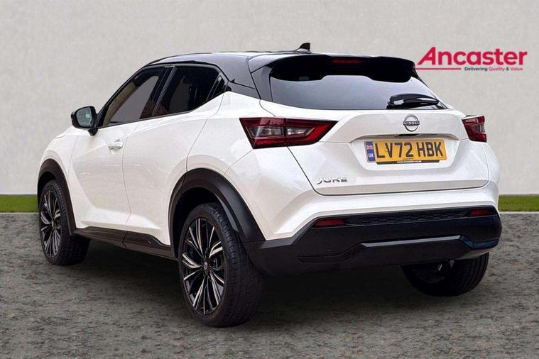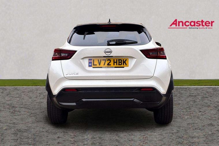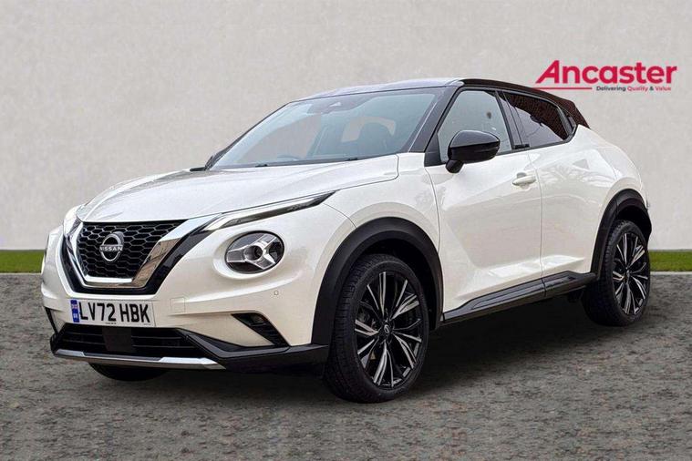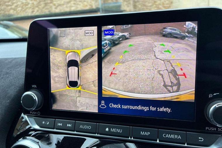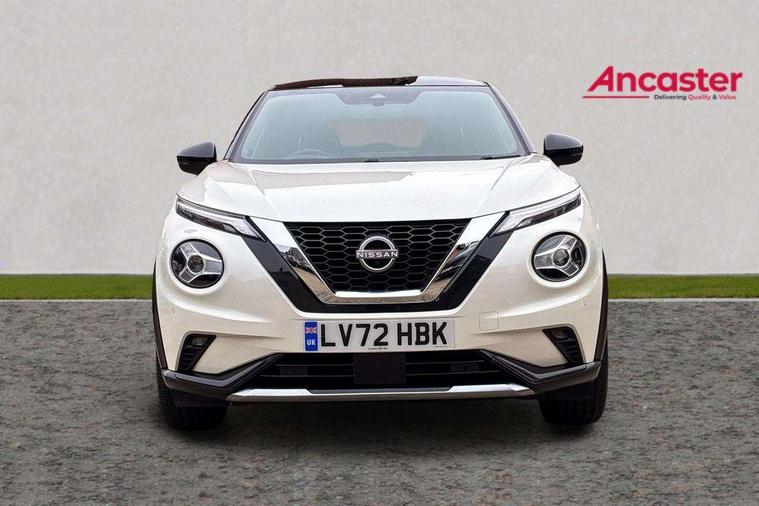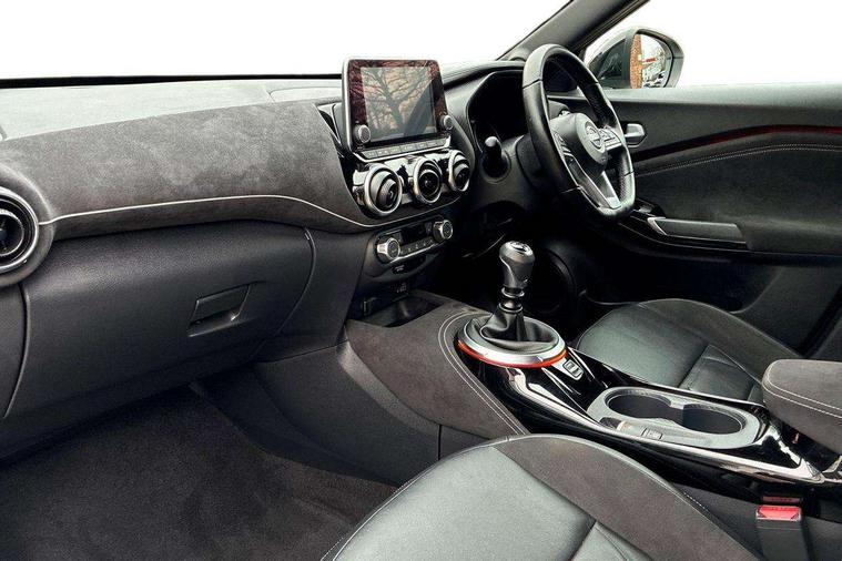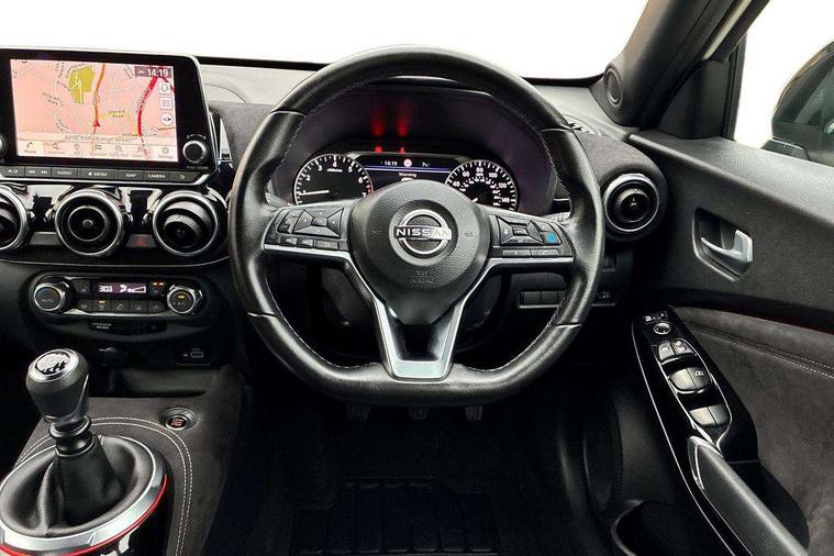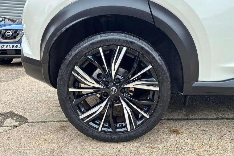 7" full colour TFT screen combimeter, Apple CarPlay and Google Android auto, Drive modes select (Eco, normal and sport), Emergency and breakdown call, Front parking sensor, Idle start/stop system, Intelligent lane intervention, Lane departure warning system, Nissan connect 8" touch screen entertainment system, Nissan connect nav with TomTom traffic, Nissan connect services and Wifi connection, Outside temperature sensor, Power Steering, Rear parking sensor, Traffic sign recognition, Trip computer, Voice recognition, Gasoline particulate filter, 10 Bose speakers 6 speakers and 2 headrest speakers for driver/passenger seats, Bluetooth system, USB, Aux-in and 12V socket, Bose personal sound stage control, DAB Digital radio, Rear console USB port, Auto dimming interior rear view mirror, Auto headlights, Automatic hazard signal with emergency stop signal, Body colour bumpers, Body colour door handles, Electrically adjustable door mirrors with integrated indicators, Follow me home headlights, Front and rear electric window with one touch driver window, Heated and auto folding door mirrors, High beam assist, LED daytime running lights, LED front fog lights, LED headlamps, LED rear fog lamp, LED rear lamps, Rain sensor windscreen wipers, Rear privacy glass, Rear side wing doors, Rear wiper, Satin silver front bumper finisher, Thermaclear heated windscreen, Three blink turn signal, 3 height adjustable rear headrests, 3 seat bench in 2nd row, 60/40 split folding rear seat, Automatic climate control, Card holder on driver sunvisor, Door ambient lighting, Driver and passenger sliding and reclining seats, Driver seat back pocket, Driver side rear coat hanger, Driver/passenger sunvisors and vanity mirrors, Front and rear cabin lights, Front armrest, Front door pockets with bottle holders, Front head restraints, Front passenger isofix child seat anchorage point, Front/rear passenger grab handles, Gear console ambient circle lighting, Grey synthetic leather kneepad, Heated front seats, Height adjustable driver's seat, Height adjustable passenger seat, Internal chrome door handles, Leather gearshift knob, Leather steering wheel, Luggage board, Luggage space lighting, Monoform sporty seats, Multifunction steering wheel, Passenger seat back pocket, Rear door bottle holders, Single front passenger seat, Telescopic steering wheel adjustment, Two cupholders in front centre console, Two rear isofix child seat anchorage points with top tether, Welcome light and console tray ambient lighting, Advanced safety shield pack - Juke, ABS with EBD and brake assist, Active ride control, Active Trace Control, Driver and passenger airbags, Driver and passenger side airbags, Electric handbrake with auto hold function, Electronic Stability Programme (ESP), Front and rear curtain airbags, Height adjustable seatbelts, Hill start assist, Intelligent emergency braking with pedestrian and cyclist recognition, Rear door child safety locks, Seatbelt reminder for driver/front passenger and rear seats, Single tone horn, Three 3 point rear seatbelts, Traction control, Tyre pressure monitoring system, VDC Dynamic Vehicle Control, Ventilated rear brake discs, Alarm, Immobiliser, Intelligent key and start push button with walk away lock and approach unlock functions, Remote central locking, 19" Akari alloy wheels,