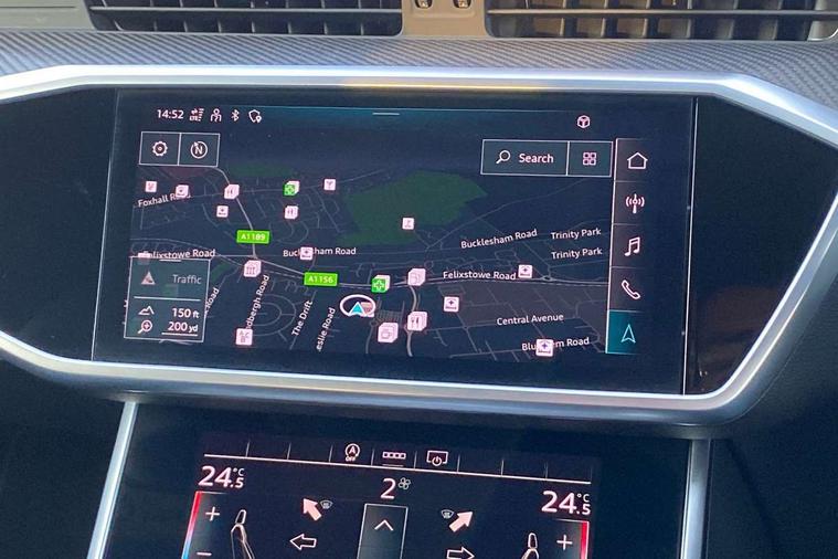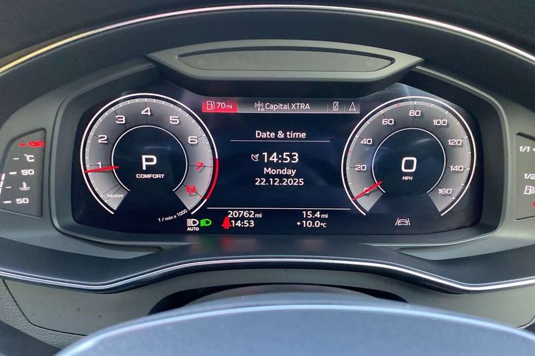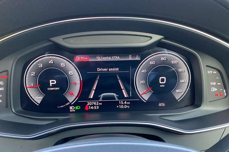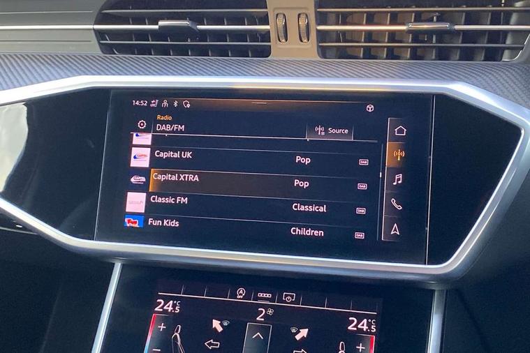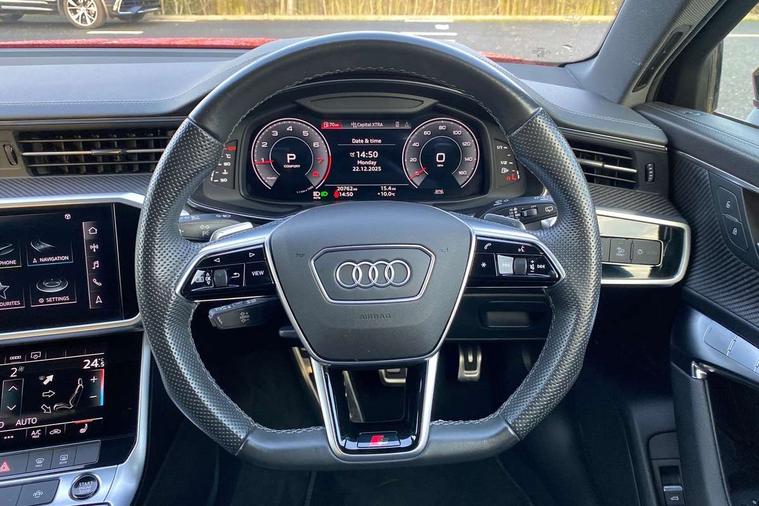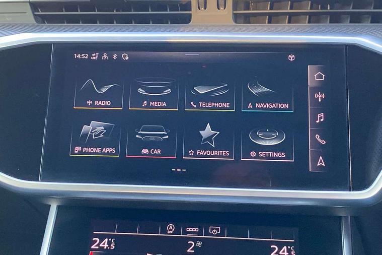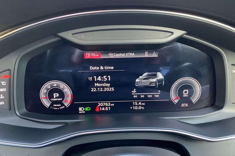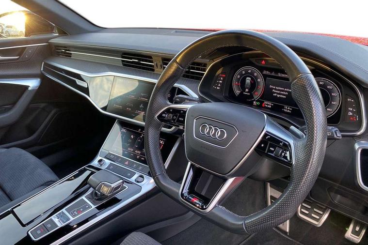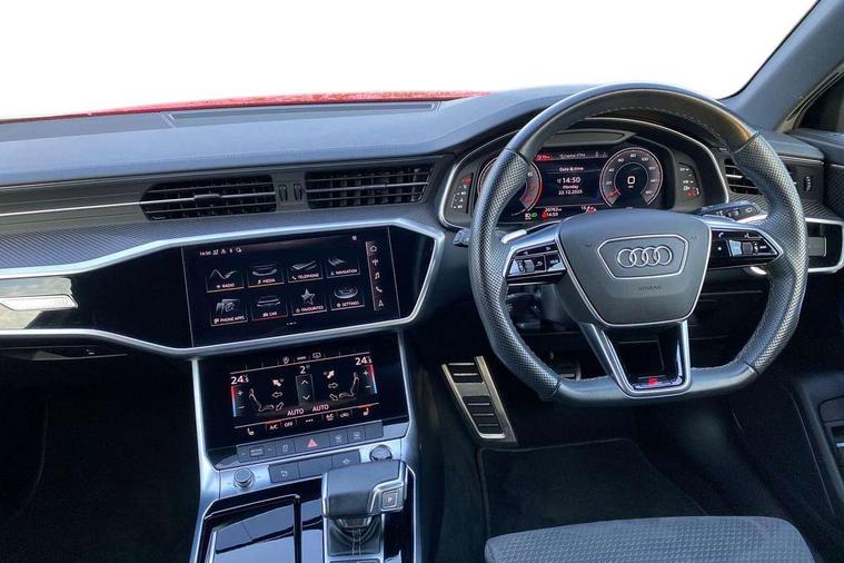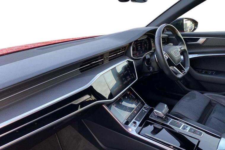 7" high resolution colour driver information display system, Audi connect safety and service (e-call), Audi connect with Amazon Alexa Integration, Audi drive select, Audi parking system plus - acoustic and visual park assist system for front and rear, Automatic start/stop system with coasting functionality, Bluetooth interface, Lane departure warning system, Power operated tailgate, Progressive steering, Rear view camera, Service interval indicator, Smartphone interface includes wireless Apple carplay/Android Auto, Voice control system, Sports suspension, Audi front music interface, Audi sound system, Auxiliary input socket, DAB Digital radio, USB connection, All weather LED headlights, Black roof rails, Electric front/rear windows, Frameless auto dimming interior rear view mirror, Front intermittent wipers, Gloss black highlights on the exterior area of the Audi Single frame, Gloss black highlights on the front and rear bumpers, Gloss black highlights on the radiator grille, Gloss black highlights on the side windows trim strips, Headlight washers, Heat insulating darkened glass in side and rear windows, Heat insulating glass in windshield, LED rear lights, LED signature front daytime running light, LED third brake light, Matt black rear diffuser with diffuser strip and tailpipes in chrome, Matt black side air intake grille with inlay in matt aluminium, Privacy glass, Rain and light sensors, Rear roof spoiler, Rear side wing doors, Rear wiper, 2 zone deluxe electronic climate control, 4 way electric lumbar support for driver and front passenger, 40/20/40 split folding 3 rear seat bench in 3 parts with rear centre armrest, Black cloth headlining, Black front and rear carpet floor mat, Black steering wheel insert, Electrically adjustable front seats with driver memory, Front centre armrest, Front head restraints, Heated front seats, Height/reach adjust steering wheel, Illuminated door sill trims with S logo, Illuminated sun visors with vanity mirrors, ISOFIX child seat mounting and Top Tether with front passenger airbag deactivation, Leather gear knob, Luggage compartment system, Rear headrests, Single front passenger seat, Stainless steel pedals and foot rest, LED Interior Ambient Lighting Pack - A6, Non smoking pack - A6, Technology pack - A6, 3 point seatbelts on all seats, Airbags - Front side, front and rear including head, Audi pre-sense front, Black seatbelts, EBD - Electronic brakeforce distribution, Electromechanical parking brake, Electronic Stability Control (ESC) including ABS, ASR and EDL, Extended pedestrian protection measures, Manual child proof rear door locks, Seatbelt monitoring, Tyre pressure warning light, Warning triangle and first aid kit, Anti theft alarm with tow away protection, Anti-theft wheel bolts and wheel loosening detection, Immobiliser, Keyless Go, Remote central locking, Carbon twill inlays, 20" 5 V spoke star design Audi sport cast aluminium alloy wheels in matt titanium look,