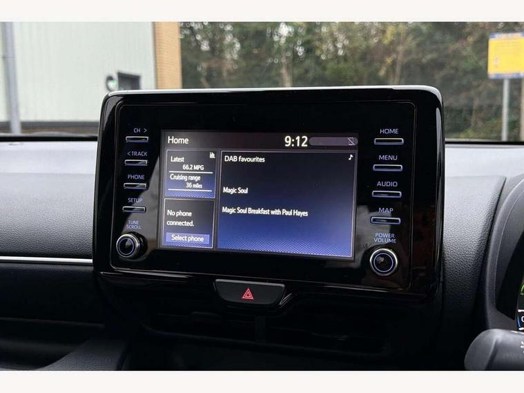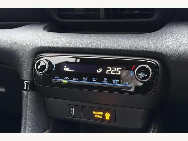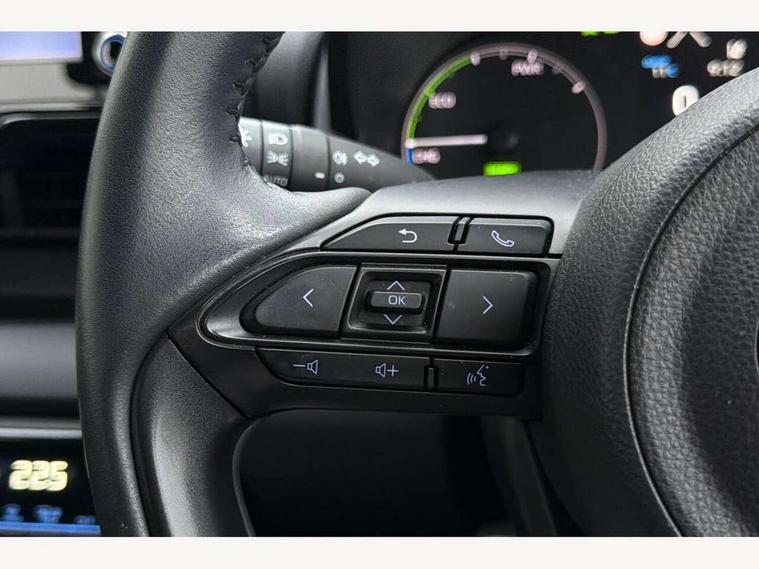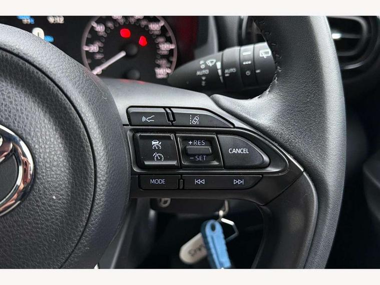 4.2" coloured TFT multi information display with analogue speedometer, Adaptive cruise control, Adjustable speed limit with speed warning, Bluetooth connectivity, E-call, Electric power steering, Hybrid energy display, Multi information display switches on steering wheel, Reversing camera, Smartphone integration with Apple CarPlay and Android auto, Tailgate, Voice recognition, Vehicle Stability Control (VSC), 4 speakers, 7" Multimedia display touch screen, Toyota Touch 2 with DAB, USB connection, Acoustic windscreen glass, Auto windscreen wipers, Automatic headlights, Body coloured door mirrors, Bulb indicators, Chequered front grille, Daytime running lights, Electric adjustable heated door mirrors, Follow me home headlights, Front auto power windows with anti jam protection, Halogen projector headlights, LED High mounted stop lamp, Manual headlight levelling, Rain sensor, Rear side wing doors, Rear spoiler, Rear wiper, Shark fin antenna, Turning signal integrated indicators in door mirrors, Variable front intermittent wipers, 3 adjustable rear headrests, 3 seat bench in 2nd row, 3 spoke leather steering wheel, 60/40 split folding rear seat, Active headrests, Adjustable boot height, Auto air conditioning, Coat hooks in rear grab handles, Cup holders (2 front & door), Data Communication Module (DCM) connected services, Fabric upholstery, Front armrest, Glovebox, Grey roof lining, Height adjustable driver's seat, Isofix seat fixing, Leather gearshift, Pollen filter, Shopping bag hooks, Single front passenger seat, Tilt/telescopic steering column, 3 point seatbelts on all rear seats, ABS+EBD+Brake assist, Electronic parking brake, Emergency brake light system (EBS), Front passenger airbag on/off switch, Front seatbelt reminder, Hill start assist control (HAC), Rear child proof door locks, Rear seat belt reminder, Supplemental Restraint System (SRS) 8 airbags: Driver & passenger's airbags, dual side curtain airbags, side impact airbags, front centre airbag, Toyota Safety Sense 2, Precollison + Night time Pedestrian & Cyclist Detection, Lane Trace Assist, Auto High Beam, Intelligent ACC & Road Sign Assist, Tyre pressure warning system, 2x Master key, Alarm/immobiliser, Remote powered central double locking doors, Soft touch instrument panel, Space saver spare wheel,