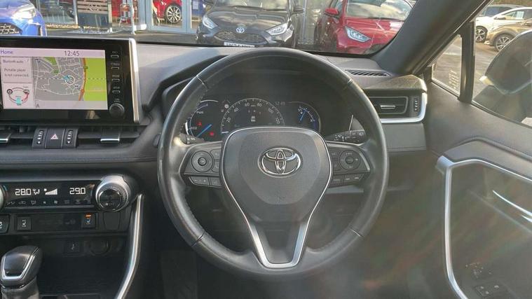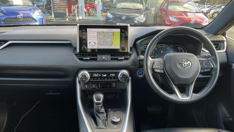 7" colour TFT display, Adaptive cruise control with lane trace assist, Adjustable speed limiter, Apple car play and Android auto, Blind spot monitoring with rear cross traffic alert, Bluetooth system, Cyclist Detection, Drive mode selector, eCall emergency call system, ECO-driving indicator, Electric power steering, EV audible alert, Hybrid system indicator, Lane departure warning system, Lights on warning, Night Time Pedestrian Detection, Pedestrial detection, Power boot opening and closing, Rear parking camera, Rear parking sensors, Remote boot door release in cabin, Tachometer, Touch 2 Go navigation system including 3D maps and voice control, Traffic sign recognition, Trip computer, Voice control system, Vehicle Stability Control (VSC), 6 speakers, 8" Multimedia display touch screen, Auxiliary socket for external MP3 player, DAB audio, Steering wheel mounted audio controls, Toyota touch media system, USB connection, Auto dimming interior mirror, Auto high beam, Automatic headlamp levelling, Automatic headlights, Automatically retractable door mirrors, Bi-tone black roof, Black door mirrors, Black rear spoiler, Black roof rails, Black Shark-fin antenna, Body colour door handles, Body coloured bumpers, Door mirror puddle lights, Electric adjustable door mirrors, Emergency brake-light signal (EBS), Follow me home headlights, Front fog lights, Gloss black front bumper insert, Gloss black rear bumper insert, Headlight cleaners, Heated door mirrors, LED daytime running lights, LED High mounted stop lamp, LED rear lights, Meshed upper front grille, Power front windows, Power rear windows, Privacy glass, Projector LED headlights, Rear screen wiper - intermittent, Rear windscreen defogger, Silver front under-run, Silver rear under-run, Trailer Sway Control, Turning signal integrated indicators in door mirrors, 3 rear headrests, 60/40 split fold rear seat back, Black roof lining, Boot light, Clean air filter, Driver and front passenger personal light, Driver and front passenger Whiplash Injury Lessening seats, Driver and passenger sunvisors with illuminated vanity mirrors, Dual sided deck board in boot, Dual zone automatic air conditioning, Floor mats, Folding rear centre armrest, Front and rear bottle holders, Front centre armrest, Front footwell lights, Front headrests, Front seat and rear pockets, Front sport seats, Front/rear roof mounted assist grips, Heated driver and front passenger seats, Isofix child seat preparation, Leather gear shift with chrome surround, Light blue ambient lighting on front cupholders and open tray, Manual telescopic and tilt 3-spoke leather steering wheel with Chrome insert, Manually reclining and sliding front passenger seat, Pollen filter, Power height-adjustable sliding reclining and lumbar support for driver seat, Rear coat hooks, Rear door armrests, Rear passenger air vents, Reclining rear seats, Satin chrome interior door handles, Sunglasses holder, Synthetic leather upholstery, 3x3 point rear seatbelts, ABS/EBD, Adjustable front driver and passenger seat belt extender, Brake assist function, Child proof door locks, Collision mitigation braking system, Driver/Front Passenger airbags, Driver/front passenger side airbags, Drivers knee airbag, Electronic parking brake, Electronic Stability Programme (ESP), Emergency brake light system (EBS), Front and rear curtain airbags, Front and rear seatbelt reminder, Hill start assist, Passenger airbag cut-off device, Seatbelt pretensioners with load limiters, Traction control, Tyre pressure warning, Alarm/immobiliser, Glass-breaking alarm sensors, Light - on and Key in reminder, Remote central locking, Smart entry + Smart start, Speed sensitive auto door locking, Tilt detection sensors, Piano black centre console with silver insert, Soft-touch black lower dashboard, Soft-touch black upper dashboard with silver insert, Full size spare wheel,