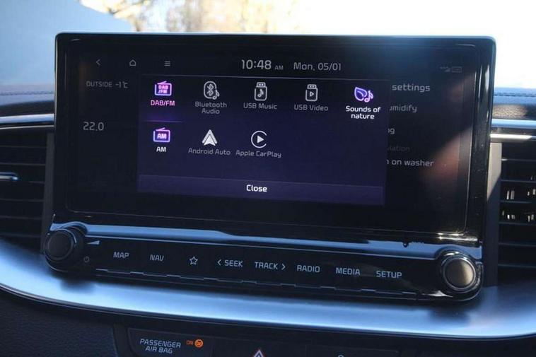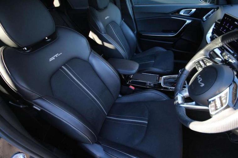 10.25" touchscreen satellite navigation, 12.3" TFT supervision cluster display, Apple car play/Android Auto with voice control, Blind spot Collision Warning (BCW), Bluetooth with Voice Recognition & Music Streaming, Drive mode select (Normal and Sport), Driver Attention Warning (DAW), Driver memory function, Emergency call service, Emergency stop signalling system, Forward Collision-Avoidance Assist (FCA) - City/Pedestrian/Cyclist, Intelligent speed limit warning, Kia connect UVO, Lane Following Assist (LFA), Lane keep assist, Manual speed limit assist, Motor driven power steering, Rear cross-collision assist, Reversing camera system with dynamic guidelines (Integrated into centre fascia screen), Smart cruise control, Smart park assist system (SPAS) with parallel/perpendicular with front/rear parking sensor, Trip computer, Wireless Mobile Phone Charger, Intelligent Stop and Go, DAB Radio with MP3, Illuminated USB ports, JBL Premium sound system with 8 speakers, Steering wheel mounted controls, USB Fast Charger in Front Centre Console, USB port for connection of a media device, All-round Electric Windows with Front Auto Up & Down Function, Auto dimming rear view mirror, Automatic defog system, Automatic headlights control, Body colour bumpers, Body colour exterior door handles, Body coloured and dark chrome rear skid plate, Body coloured side sill mouldings, Dark chrome window surround, Electric adjustable/heated/folding door mirrors with LED Indicators, Heated rear window with timer, High beam assist, High gloss black and dark chrome radiator grille, High gloss black door mirrors, High Gloss Black rear spoiler, LED daytime running lights, LED front fog lights, LED Headlights, LED High-mounted Brake Light, LED honeycomb rear light, LED rear combination lights, Panoramic sunroof with tilt/slide function and automatic electric roll blinds, Privacy glass (rear side windows and tailgate), Rain sensing front wipers, Rear side wing doors, Rear wash/wipe, Satin chrome dual exhaust trim, Tinted glass, Wide view drivers door mirror, Windscreen Washer Level Warning, 1 x Front 12V socket, 12V power socket in luggage compartment, 3 seat bench in 2nd row, 3 x passenger assist grips, 60/40 split folding rear seat, All-round height adjustable headrests, Aluminium pedals, Centre console storage box/armrest, Cupholders in centre console, Cupholders in rear armrest, Dash illumination dimmer switch, Door courtesy lamps, Driver & Front Passenger Sunvisors with Vanity Mirror Illumination & Ticket Holder, Driver + front passenger electric lumbar support, Driver's power seat height adjuster, Dual Height Luggage Area Floor, Dual zone automatic air conditioning, Faux leather door centre trim, Front and rear door storage, Front cabin map light with sunglasses case, Front Passenger Seat Height Adjuster, Front seat back pockets, Heated front seats, Heated rear seats, Heated steering wheel, Interior door lock/unlock function, ISOFIX Child seat top tethers and anchor fixings, Leather D-Cut steering wheel, Leather handbrake, Leather/suede upholstery, Luggage area light, Luggage area parcel shelf, Luggage hooks, Rear centre armrest, Rear coat hooks, Satin chrome interior door handles, Single front passenger seat, Tilt/telescopic adjustable steering wheel, All round 3-point seatbelts, Anti-lock braking system (ABS), Brake assist system, Dual front side airbags, Dual horn, EBD - Electronic brakeforce distribution, Electronic parking brake, Electronic stability control (ESC) and vehicle stability management (VSM), Front passenger airbag cut-off switch, Height adjustable front seatbelts, Hill start assist control (HAC), Impact sensing auto door unlocking, Rear door child safety locks, Seatbelt reminder warning, Twin curtain airbags, Twin front airbags, Tyre pressure monitoring system, Alarm system, Engine Immobiliser & Deadlocks, Engine Start/Stop Button with Smart Entry System, Locking wheel nuts, Speed sensitive auto door locking, Black high gloss front console garnish & door trim, Satin Chrome Fascia Trim, 18" GT-Line S alloy wheels, Tyre mobility kit,