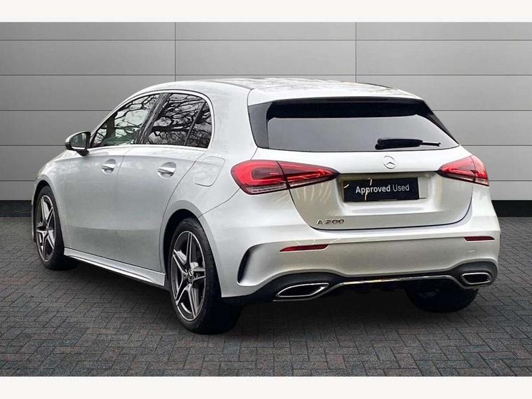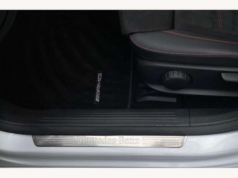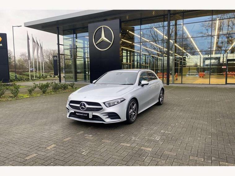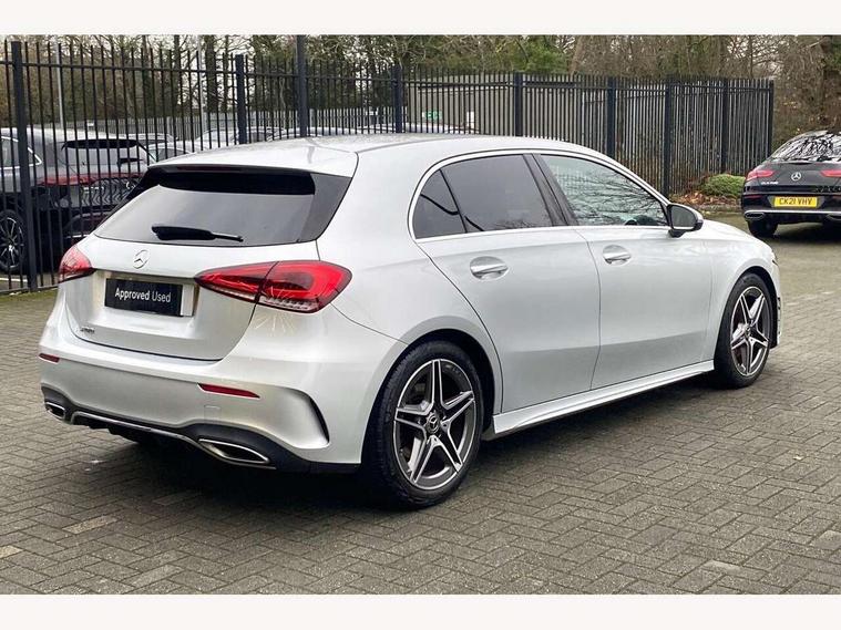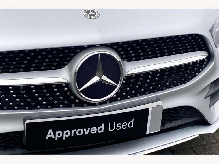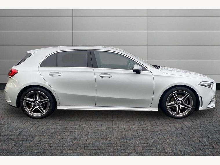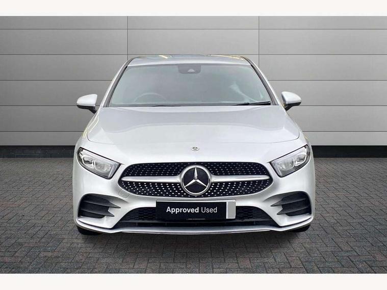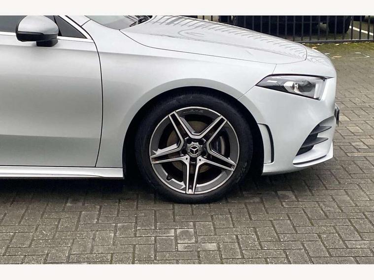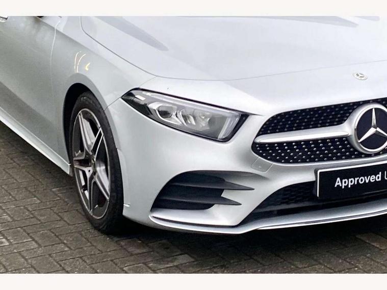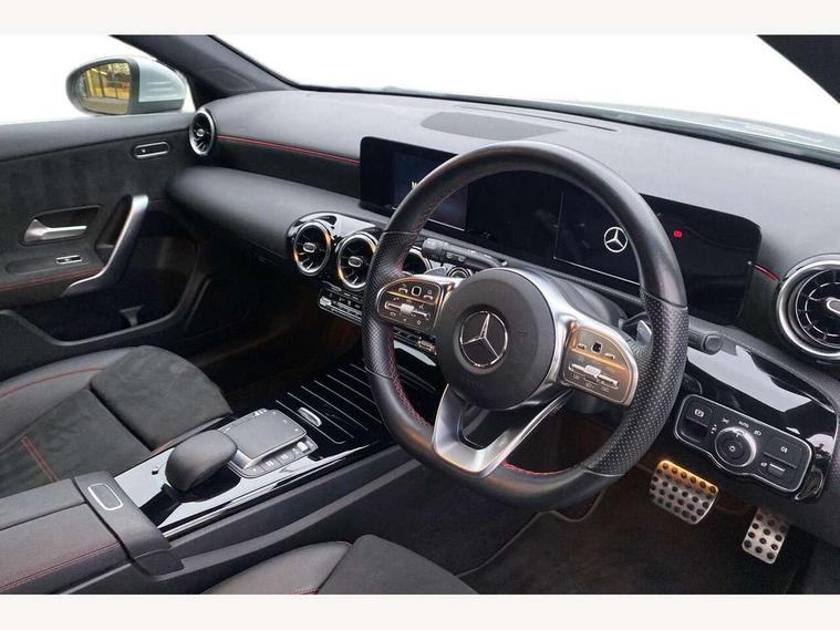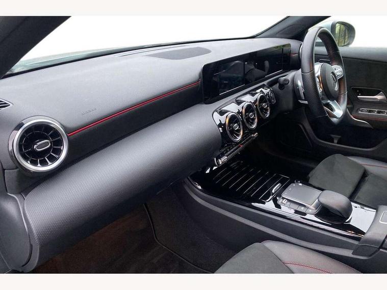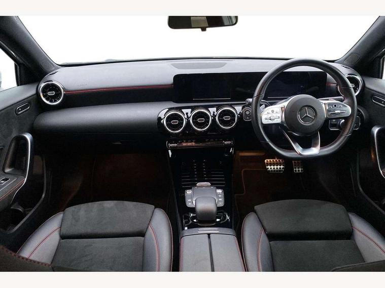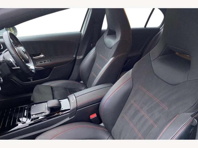 180 degree rear view camera with parking guidelines, 7" colour screen in instrument panel, 7" touchscreen media display, Attention assist, Brake pad wear indicator warning light, Car wash mode, Cruise control + speed limiter, Direct steering, Dual bluetooth interfaces, DYNAMIC SELECT with a choice of driving modes (ECO, Comfort, Sport and Individual), ECO start/stop function, Fluid level warning indicator for fuel, oil, coolant and washer fluid, Hard-disk navigation, Hey Mercedes Voice activation, Lamp failure indicator, Mercedes me connect including emergency call system, accident recovery, breakdown and maintenance management, Mercedes me remote services, Outside temperature gauge, Owners manual in English, Pre-installation for private car sharing, Preinstallation for Mercedes Benz link, Service indicator (ASSYST), Speed sensitive power steering, Trip computer, Lowered comfort suspension, Rear axle torsion beam, 2 USB ports (type C) in rear stowage compartment and one in front of center console, 6 speakers, DAB Digital radio, MBUX multimedia system with DAB digital radio and touchpad including satellite navigation, Mercedes-Benz sound system - 100W, 4 Electric Front and Rear windows, Adaptive brake lights, AMG bodystyling - Front apron with splitter in chrome, rear apron with chrome trim and chrome visible trim elements in tailpipe, Black weather strip, Body colour bumpers, Body colour door handles, Body colour side skirt, Body coloured door mirrors, Chrome beltline trim, Diamond radiator grille with chrome pins and silver louvre + chrome insert, Electric adjustable and heated door mirrors with integrated LED side indicators, Exhaust system - Twin visible tailpipes in polished stainless steel, Headlamp assist automatic headlamp activation, Heated glass rear windscreen + timer control, LED high performance headlamps with integrated LED daytime running lights, LED tail lamp, LED third brake light, Privacy glass, Radio aerial, Rain sensing windscreen wipers with two sensitivity settings, Rear fog lights, Rear wiper, Window line trim strip in chrome, 3 Spoke flat bottom leather multi function steering wheel with perforated leather in grip area, 40:20:40 split folding rear seats, Artico man-made leather/Microfibre Dinamica upholstery with red contrast stitching, Auto Mercedes-Benz child seat recognition sensor, Black air vents with surround in silver chrome, Black roof lining, Brushed stainless steel sports pedals with rubber studs, Controller on centre console with chrome surround, Floor mats with stitched edging and AMG lettering, Front centre armrest with storage compartment, Front door sills with Mercedes Benz lettering, Front seat backs luggage nets, Front seat cushion length adjustment, Galvanished gear shift paddles on steering wheel, Heated front seats, Height/reach adjustable steering column, Interior mirror with reading lamps in black and frameless, Manual height adjustable front seats, Rear head restraints, Seat occupancy sensor for front passenger seat, Sports seats with integrated headrests, Stowage compartment in centre console with retractable cover, Sunvisors with illuminated vanity mirrors, Touchpad on center console, Twin front cupholders, Two zone thermotronic luxury automatic climate control, Light and sight pack - A Class, Seat comfort pack - A Class, 3 rear 3 point seatbelts, ABS with Brake Assist, Active bonnet, Active brake assist includes forward collision warning system with autonomous braking, Adaptive brake assist with hold function and hill start assist, Black seatbelts, Childproof locks manually operated for rear doors and electrically operated for rear power windows, Crash responsive emergency lighting, Driver and passenger head and side airbags, Drivers knee airbag, Dual stage driver/passenger airbags, Electronic parking brake, ESP curve dynamic assist, ESP with ASR, Front and rear seatbelt reminder, Front brake callipers with Mercedes Benz lettering, ISOFIX and top tether child seat fixing points in two outer rear seats, Tyre pressure monitoring system, Warning triangle and first aid kit, Window airbags, Alarm system/interior protection/immobiliser, Keyless Go, Remote central locking and crash sensor with emergency opening function, Urban guard vehicle protection system with immobiliser and interior protection, Dinamica microfibre trim in black, 18" AMG 5 twin spoke light alloy wheels in titanium grey with highsheen finish, Summer tyres, Tirefit sealant kit,