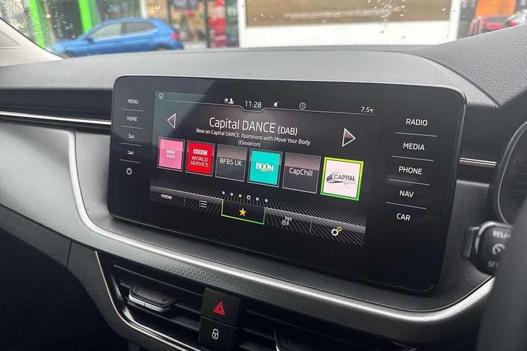 Amundsen satellite navigation with 9.2" glass colour touchscreen with virtual cockpit, web radio, Android Auto, Bluetooth system, Colour multifunction trip computer, eCall emergency system, PAS, Rain and light assist with auto dimming rear view mirror, Rear view camera, Speed limiter, Tailgate, Traffic sign recognition, Virtual cockpit, Voice control system, Wireless SmartLink for Apple Car Play, 2 USB - C ports, 8 loudspeakers, DAB Digital radio, 3rd brake light, Automatic headlamp activation with Coming home and Leaving home feature, Body colour door mirrors and handles, Chrome grille surround, Dimming rear view mirror with black frame, Electric folding door mirrors, Electrically adjustable and heated door mirrors, Front and rear electric windows, Front fog lights with cornering function, LED rear tail lights with dynamic indicators, Privacy glass, Rear side wing doors, Rear wiper, Tinted windows, 12V Accessory socket in centre console, 3 seat bench in 2nd row, Chrome inner door handles, Chrome on gear and handbrake lever, Chrome strip on the dash and door panel, Dual zone climate control, Front head restraints, Glasses storage in roof liner, Instrument cluster with chrome painted decor ring, ISOFIX for rear passenger seat, Leather gearknob and handbrake lever, Manual lumbar support for front seats, Net in centre console, Reading lights for driver and front passenger, Single front passenger seat, Sun visor with make up mirror for front passenger, Textile floor mats, Third rear headrest, Umbrella, 3x3 point rear seatbelts, Curtain airbags, Emergency call and proactive services, Front head and side airbags, Hill hold control, Manual rear child locks, One tone horn, Passenger airbag switch off function, Seat belt reminder for all seats, Alarm, Anti-theft wheel bolts, Keyless entry with start/stop button, Remote central locking with 2 remote folding keys, SAFE function for remote central locking, Latice grey decorative insert with copper hot stamping, Temporary space saver wheel,