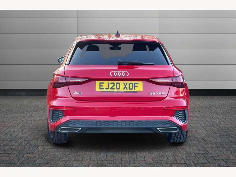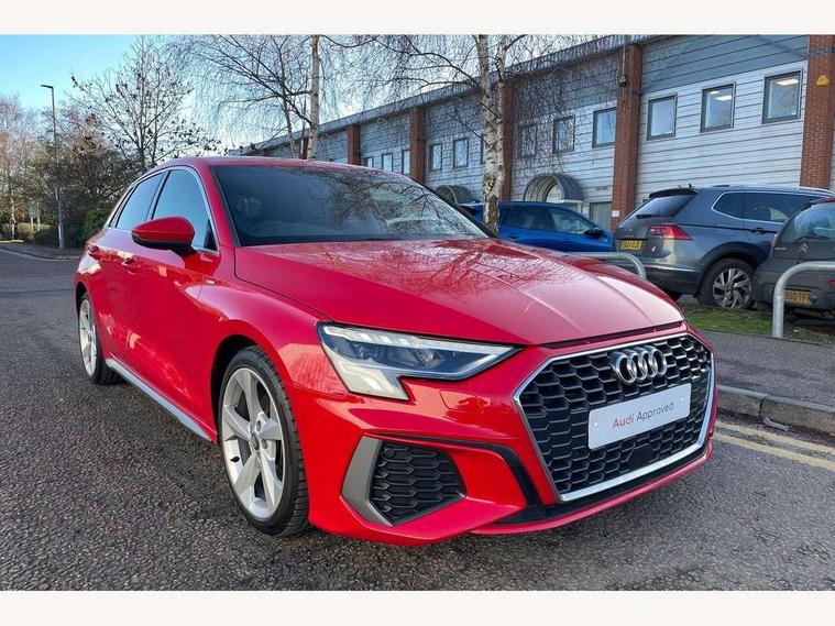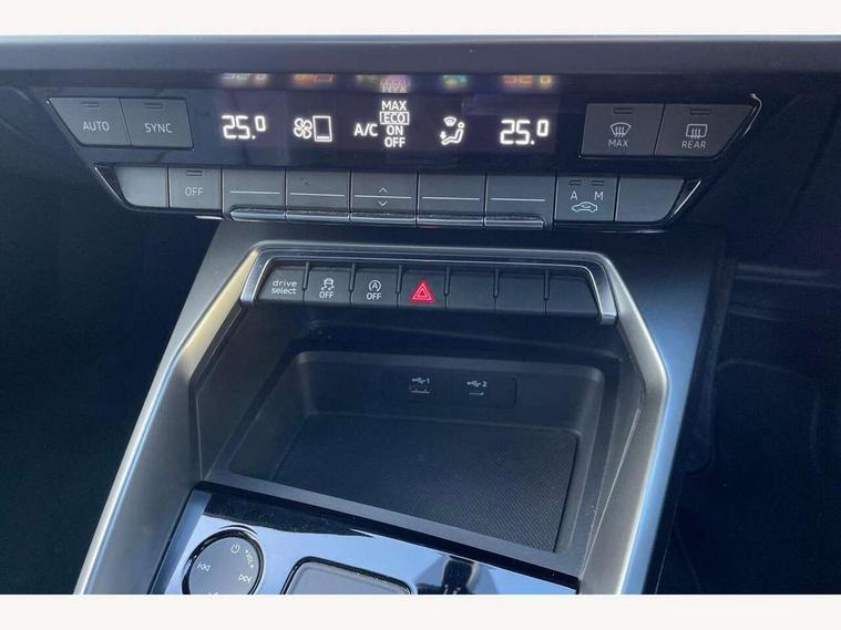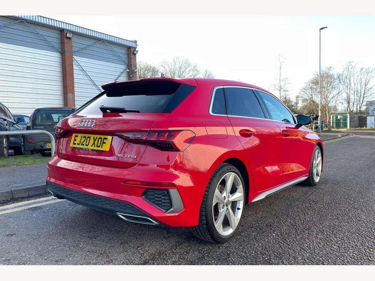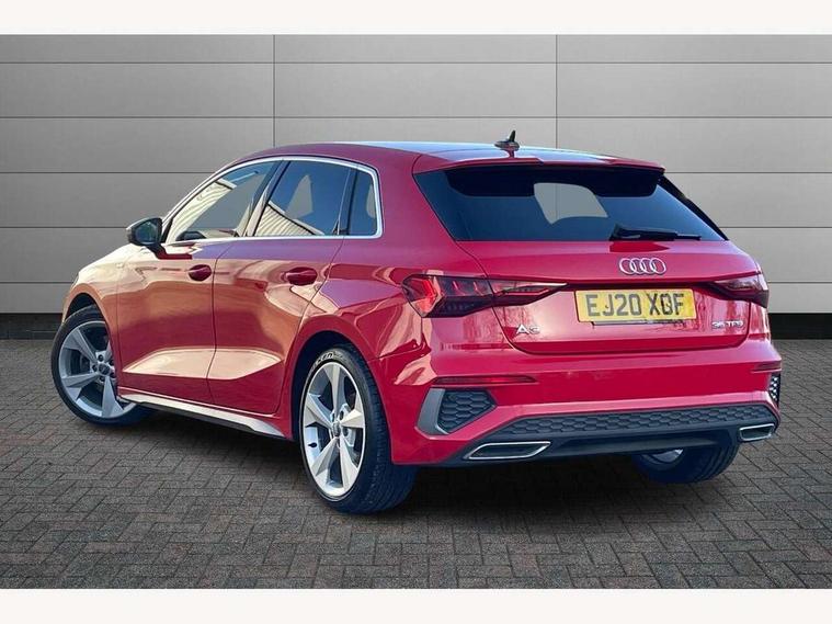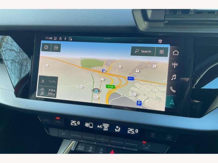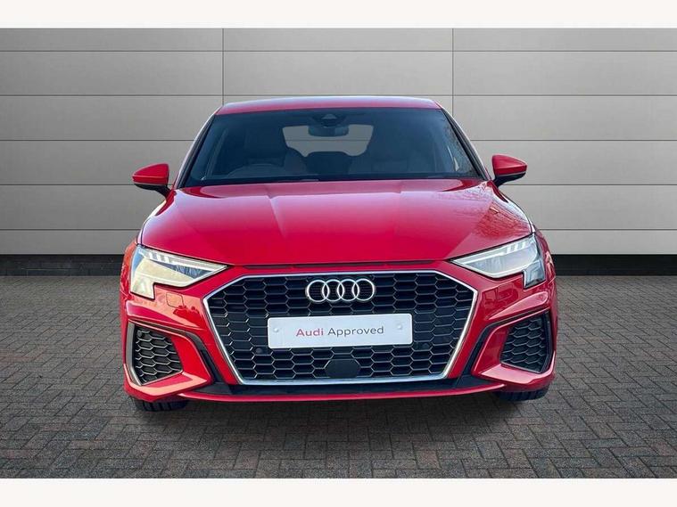 Audi connect emergency call and service, Audi drive select (Auto, Comfort, Dynamic, Efficiency and Individual), Audi smartphone interface, Audi Virtual Cockpit - 10.25" digital and colour instrument cluster, Automatic start/stop system with recuperation, Bluetooth interface, Collision avoidance assistant, Electromechanical power speed sensitive steering, Lane departure warning system, MMI Navigation Plus with high resolution 10.1" colour touch screen display, Service indicator, Trip computer, Voice control system with natural language interaction, 1xUSB-A and 1xUSB-C connection, 6 passive loudspeakers, DAB Digital radio, Acoustic glass windscreen, Aluminium window trim, Auto dimming frameless rear view mirror, Body colour exterior mirrors, Electrically adjustable/heated/folding/dimming door mirrors with kerb view includes integrated LED indications + kerb view function for passenger side, Front electric windows, Illuminated aluminium inserts front door sills with S logo, LED daytime running lights, Light and rain sensors, Privacy glass - dark tinted rear window, rear door and side windows, Rear electric windows, Rear side air outlets in grained matt black, Rear wiper, S line bumpers, S roof spoiler, 12V socket and storage compartment in front centre console, 40/20/40 split folding rear seat bench with cupholder, Black cloth headlining, Dual zone electronic climate control, Front and rear centre armrest in leather, Front and rear headrests, Front/rear floor mats, Height and reach adjustable steering wheel, Interior lighting - glove compartment light and right hand side, Luggage compartment floor covering, Manual boot compartment lid, Manually adjustable front seats, Seat side bolsters, Stainless steel pedals and front footrest, Twin leather upholstery with front sports seats S embossed logo, Aluminium interior elements pack - A3 Sportback, S line styling pack - A3 Sportback, 3x3 point rear seat belts, Driver and front passenger airbag with passenger airbag deactivation, Electronic Stabilisation Control (ESC) including ABS, ASR and EDL, First aid kit with warning triangle and 2 safety vests, Hill hold assist, Pre-sense front with pedestrian and cyclist detection, Seatbelt monitoring, Tyre pressure loss indicator, Anti theft alarm, Anti-theft wheel bolts, Electronically operated child lock, Immobiliser, Remote control central locking, Accent surfaces in the dashboard and centre console in platinum grey silk effect paint finish, Dark spectrum aluminium inlays,