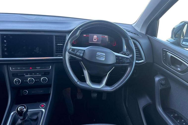 8" Digital cockpit, Colour multi-function on board computer display, Cruise control system with speed limiter, E-call, Outside temperature gauge, PAS, SEAT drive profile with driving experience button - Normal, Sport, Eco and Individual mode, steering and throttle response, Self parking functionality (includes front and rear parking sensors), Start/stop system, Tailgate, Trip computer, Wireless full link smartphone integration, Wireless phone charger, Steering wheel mounted audio/phone controls, Black wheel arch surrounds, Body colour bumpers, Chrome front grille frame, Chrome roof rails, Chrome side window trim, Daytime running lights, Door mirrors with welcome light silhouette, Dynamic headlight range control with self adjusting whilst driving, Electric adjustable/heated/folding door mirrors, Front and rear electric windows, Full LED headlamps with lens and LED front fog lamps with cornering function, LED rear tail lights with dynamic indicators, Rear fog lights, Rear side wing doors, Rear wash/wipe, Simulated exhaust pipes, Variable front intermittent wipers, 12V socket in front, 3 seat bench in 2nd row, 60/40 split folding rear seat, Cloth upholstery with front comfort seats, Drawer under right front seat, Dual zone climate control, Front and rear head restraints, Front centre armrest, Front seat back storage pockets, Height adjustable driver and passenger seat with lumbar adjustment, ISOFIX points in outer rear seats with top tether anchorage points, Leather steering wheel and gear knob, Rear armrest and easy back seat release mechanism from boot, Single front passenger seat, Interior lighting pack - Ateca, Navigation system pack with DAB - Ateca, 3x3 point rear seatbelts, ABS, Traction control system (TCS), Electronic stability control (ESC) and Electronic differential lock system (XDS), Airbags - Driver and front passenger airbag with deactivation, front side, two curtain and driver's knee airbags, Electric parking brake with auto hold function, Front and rear seatbelt reminder, Front assist with autonomous emergency braking, Hill hold control, Manual rear child locks, Single tone horn, Tiredness recognition system, Traction control, Tyre pressure monitoring system, Alarm, Keyless entry, Locking wheel bolts, Remote central locking, Chrome interior detailing, 18" Performance machined alloy wheels 36/2 in nuclear grey,