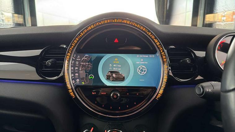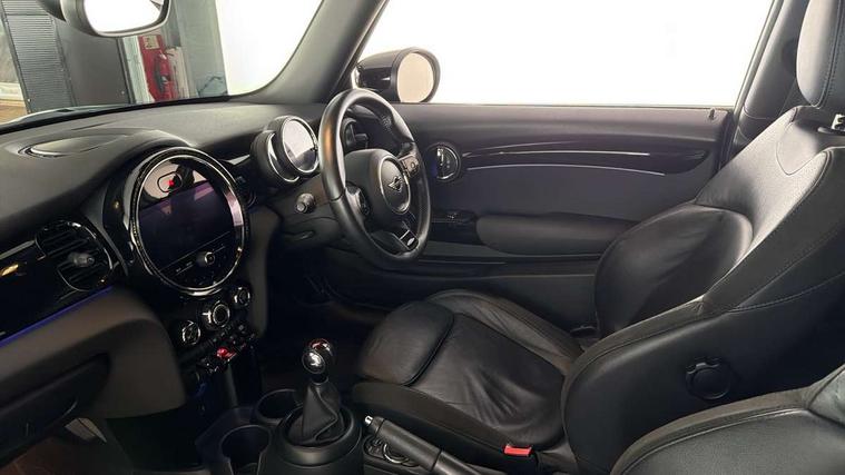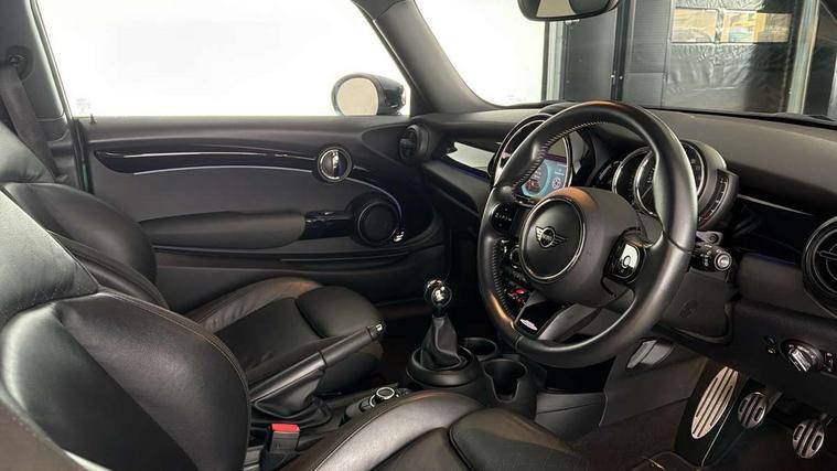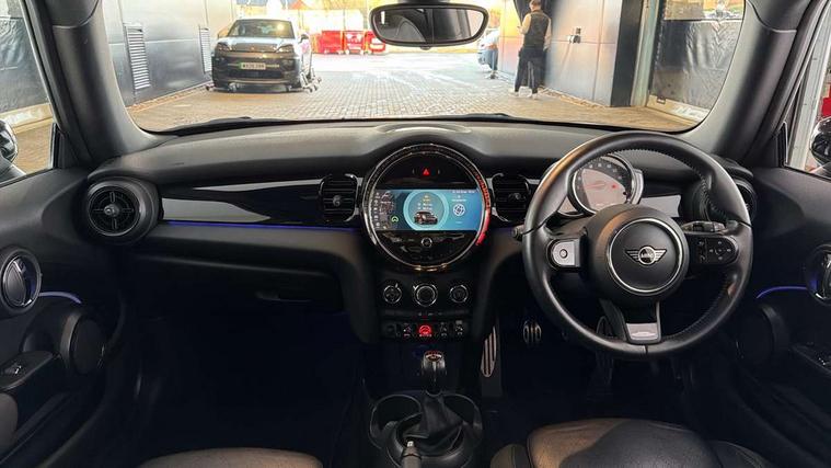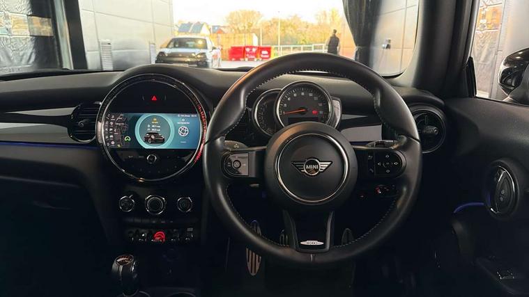 Apple CarPlay, Automatic start/stop function with brake energy recuperation, Compatible mobile phone bluetooth with audio streaming, Cruise control with brake assist, Electro-mechanical speed dependant steering assistance, Flexible car sharing preparation, Instrument cluster, MINI Driving Modes - centre toggle switch to control driving setting (sport, mid and green), Mini E-call, MINI TeleServices, On board computer, Rear park distance control, Service interval indicator, 6 Speed manual transmission including gear change indicator display, Double Vanos system, Fully variable valve control, High precision injection, Intelligent adaptive suspension, Performance Control, 8.8" touchscreen with LED ring, FM tuner and DAB digital radio, 3rd brake light, Automatic headlight activation switch, Body colour fuel filler cap, Chrome border high gloss black slats radiator grille, Dynamic brake lights, Electric front windows, Exhaust tailpipe on left with chrome finisher, Heated rear window, Heated windscreen washer jets, JCW Aerodynamic kit - Front and rear bumpers with sporty JCW styling and part-painted side sills with MINI John Cooper Works door sill finishers, John Cooper Works rear spoiler, LED headlight with closed ring and daytime driving lights, Metal door sill strips with MINI imprint, Model logo Cooper on right of tailgate, Rain sensor window wipers, Rear fog lights, Rear LED lights with union jack design, Rear window wiper, Side scuttle panel with integrated indicator, Sun/heat protection glass, White indicator lenses, 12V Accessory socket in centre console, 2 seat bench in 2nd row, 4 lashing eyes in luggage compartment, 60/40 split folding rear seat, Anthracite headliner including grab handles and clothes hooks, Carbon black colour line - Knee roll and door armrest, Chrome interior highlights, Cupholders, Front and rear isofix with front passenger airbag deactivation, Front floor mats in velour, Glove compartment, Height and length steering column adjustment, Interior lighting with 12 different colours across the dashboard, underneath door bezel with illuminated laser-engraved design on central display, JCW Sport seats with integrated headrests, adjustable thigh support and John Cooper Works logo, Leatherette gearshift lever and handbrake gaiters, LED reading lights, vanity mirror lights, front foot well light and spotlight on front seats, Manual air conditioning, Mechanical seat adjustment - forward/back & backrest for front seats and driver seat height adjust, Multifunction steering wheel, Passenger seat height adjuster, Single front passenger seat, Storage compartments in doors, Sunvisors with vanity mirrors, Walknappa leather steering wheel with grey seam and John Cooper Works badge on Piano Black lower steering wheel spoke, Piano black exterior pack - Mini Hatchback Cooper, 3 point seatbelts on all four seats, 6 Airbags - front, side, head and seat belt tensioners, Anti-lock braking system (ABS), DSC - Dynamic Stability Control, Front and rear disc brakes, Single tone fanfare horn, Tyre pressure monitoring system, Alarm system with tilt sensor, monitoring doors, bonnet interior and tailgate, Electronic vehicle immobiliser, Start/stop toggle with keyless go, Piano black interior trim, Tool kit,