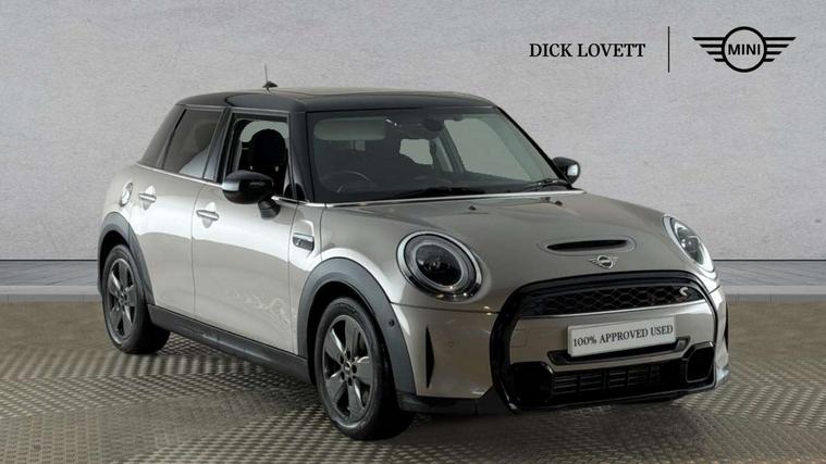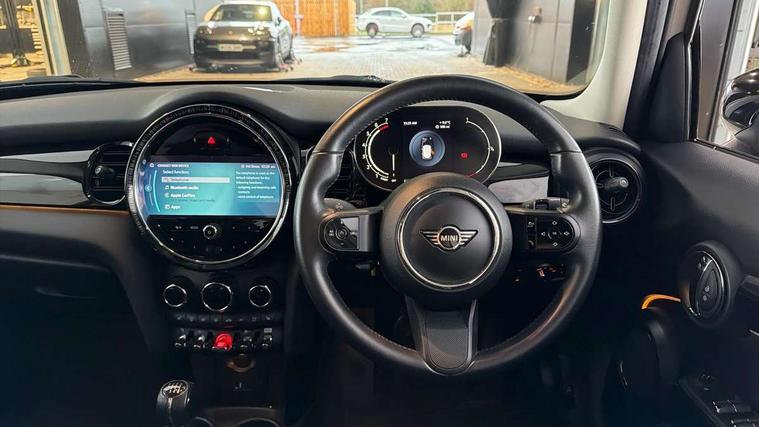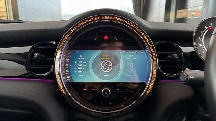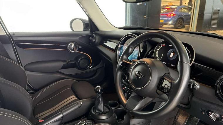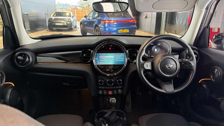 Automatic start/stop function with brake energy recuperation, Compatible mobile phone bluetooth with audio streaming, Cruise control with brake assist, Electro-mechanical speed dependant steering assistance, Flexible car sharing preparation, Instrument cluster, MINI Driving Modes - centre toggle switch to control driving setting (sport, mid and green), Mini E-call, MINI TeleServices, On board computer, Service interval indicator, 6 Speed manual transmission including gear change indicator display, Double Vanos system, Fully variable valve control, High precision injection, Performance Control, 6 speakers in front door trims and underneath front seats, 8.8" touchscreen with LED ring, FM tuner and DAB digital radio, Automatic headlight activation switch, Bonnet scoop, Chrome fuel filler cap, Dynamic brake lights, Electric front+rear windows, Heated rear window, Heated windscreen washer jets, LED headlight with closed ring and daytime driving lights, Metal door sill strips with Cooper S imprint, Model logo Cooper S on right of tailgate, Radiator grille chrome border with honeycomb structure including S Badge, Rain sensor window wipers, Rear fog lights, Rear LED lights with union jack design, Rear window wiper, Side scuttle panel with integrated indicator, Sun/heat protection glass, Two central exhaust tailpipes with chrome finisher, White indicator lenses, 12V Accessory socket in centre console, 4 lashing eyes in luggage compartment, 60/40 split folding rear seat, Carbon black colour line - Knee roll and door armrest, Chrome interior highlights, Cupholders, Front and rear head restraints, Front and rear isofix with front passenger airbag deactivation, Glove compartment, Height and length steering column adjustment, Interior lighting with 12 different colours across the dashboard, underneath door bezel with illuminated laser-engraved design on central display, Leatherette gearshift lever and handbrake gaiters, LED reading lights, vanity mirror lights, front foot well light and spotlight on front seats, Manual air conditioning, Mechanical seat adjustment - forward/back & backrest for front seats and driver seat height adjust, Multifunction steering wheel, Satellite grey headlining including grab handles and clothes hooks, Sport leather steering wheel with speed limiter and audio/communication controls, Storage compartments in doors, Storage pocket on back of front seats, Sunvisors with vanity mirrors, Velour floor mats, 3 point seatbelts on all five seats, 6 Airbags - front, side, head and seat belt tensioners, Anti-lock braking system (ABS), DSC - Dynamic Stability Control, Front and rear disc brakes, Hill start assist, Two tone horn, Tyre pressure monitoring system, Alarm system with tilt sensor, monitoring doors, bonnet interior and tailgate, Electronic vehicle immobiliser, Start/stop toggle with keyless go, Piano black interior trim, Tool kit, Tyre repair kit,