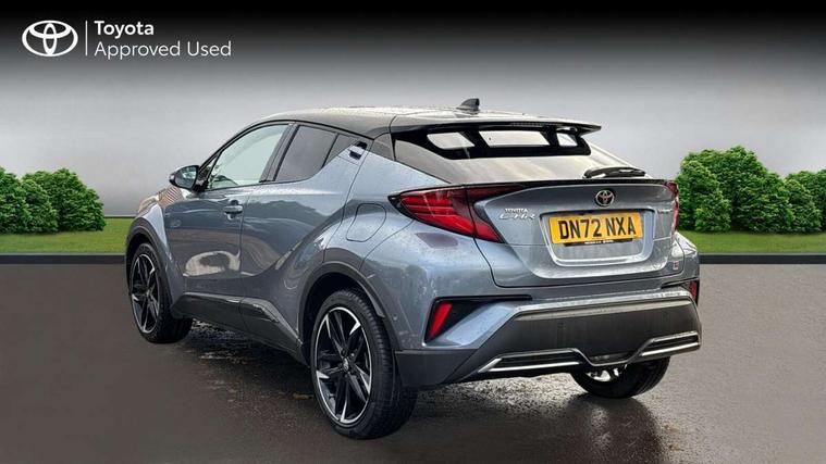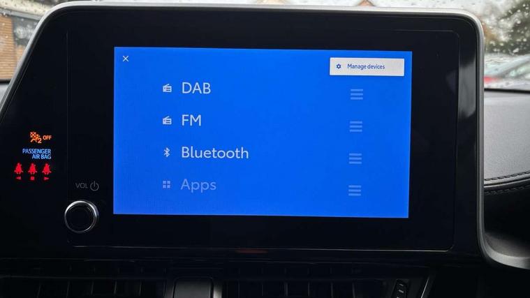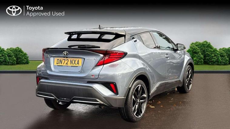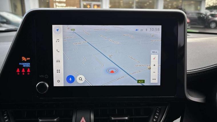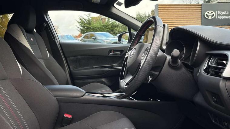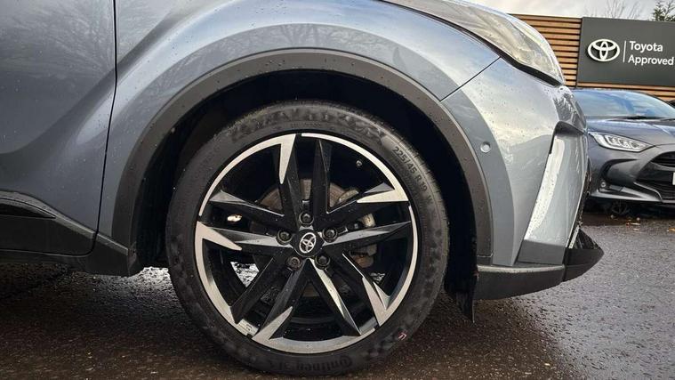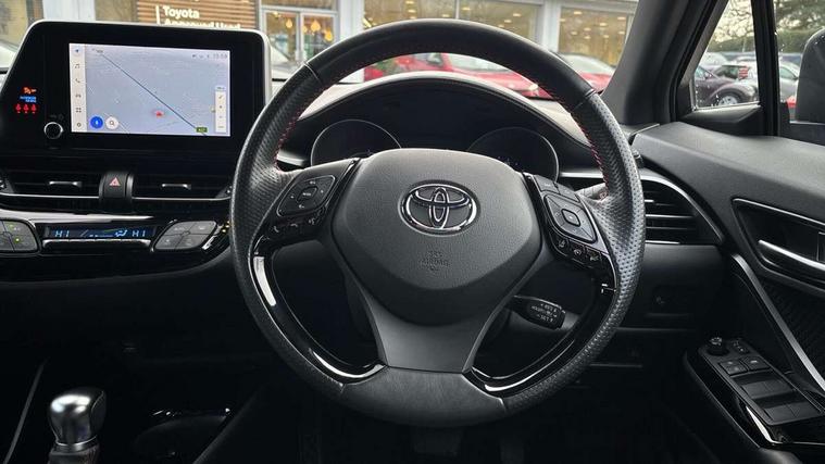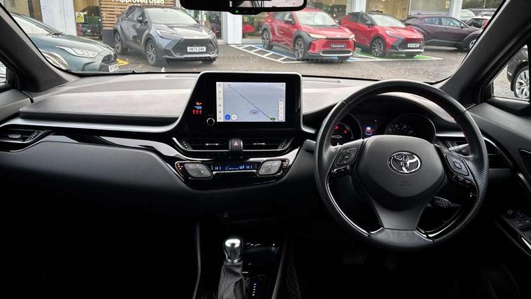 4.2" coloured TFT screen for multi-information display, Adaptive cruise control, Bluetooth connectivity, E-call, Electric power steering, Hybrid system indicator, Lane departure alert with steering control, Lane trace assist, Push button tailgate release, Remote boot door release in cabin, Remote boot door release in key, Reversing camera, Road sign assist - RSA, Simple Intelligent parking assist, Smart voice assist, Touch 2 Go navigation system, Trip computer, Voice recognition, Wireless smartphone integration, Vehicle Stability Control (VSC), 6 speakers, AM/FM radio, DAB Radio (Digital Audio Broadcasting), Toyota touch 2 multimedia system with 8" display, USB connector, Wi-fi connectivity, Adaptive front light system, Adaptive LED Headlights, Anti-jam protection on power windows, Auto high beam, Auto up and down function on all power windows, Automatic headlight levelling, Automatic headlights, Automatic headlights cut-off, Black and body coloured rear bumper, Black upper front grille, Body colour door handles, Body colour door mirrors, Body coloured front bumper, Boot door release with push button, Chrome front lower bumper, Electric heated door mirrors, Follow me home headlights, Front and rear power windows, Front spoiler lip in black, Headlight cut off reminder, Honeycomb lower front grille, LED daytime running lights, LED fog lights, LED front light guide, LED High mounted stop light, LED rear brake lights, LED rear combination lights, Noise reduction layer on front windows and windscreen, Power adjustable door mirrors, Privacy glass, Rain sensor, Rear sequential indicators, Rear side wing doors, Rear spoiler, Rear tailgate, Rear window defogger, Rear window wiper, Shark fin antenna, UV-filter on driver and passenger windows, UV-filter on rear windows, 12v power outlet - front, 3 rear headrests, 3 seat bench in 2nd row, 3 spoke perforated leather steering wheel, 60/40 split folding rear seat, Adjustable rear headrests, Adjustable speed limiter switch on steering wheel, Assist grips front and centre pillar, Audio and telephone switches on steering wheel, Black front door assist grips, Blue ambient lighting on front cup holders, Blue ambient lighting on front doors, Boot light, Chrome interior door handles, Cloth upholstery, Driver and front passenger personal light, Driver and front passenger Whiplash Injury Lessening seats, Driver and passenger seatback pockets, Dual zone automatic air conditioning, Floor mats, Front cupholders, Front head restraints, Front sports seats, Glovebox with internal light, Hard tonneau cover, Heated driver and front passenger seats, Hooks for luggage holding net, Humidifying Nanoe air purifier, Illuminated entry system, Isofix attachments on outer rear seats, Leather gearshift, Light on driver sun visor, Light on passenger sun visor, Manual telescopic steering wheel, Manual tilt steering wheel, Manually height adjustable driver seat, Manually height adjustable front passenger seat, Manually reclining driver seat, Manually reclining front passenger seat, Manually sliding driver seat, Manually sliding front passenger seat, Microphone on front personal light, Mirror on driver sun visor, Mirror on passenger sun visor, Multimedia switches on steering wheel, Pollen filter, Power adjustable lumbar support on driver seat, Shopping bag hooks, Single front passenger seat, Slow opening on lower glovebox, Voice recognition switch on steering wheel, Tech with parking sensor pack - C-HR, 16 Disk front wheel brake, 3x3 point rear seatbelts, ABS+EBD+Brake assist, Electronic parking brake, Front and rear seatbelt reminder, Front passenger airbag on/off switch, Hill start assist control (HAC), Pre collision system with pedestrian detection, Pre-tensioners and force limiters, Rear door child safety locks, SRS Airbags - Driver + Front passenger, front side, front and rear curtain and driver's knee airbags, Toyota safety sense, Tyre pressure monitoring system, Tyre pressure warning system, Acoustic vehicle alert system (AVAS), Glass-breaking alarm sensors, Immobiliser, Intrusion alarm, Intrusion sensor, Motion sensor alarm, Power door locks, Power passenger window lock, Remote central locking, Black lower dashboard, Black upper dashboard, Piano black console, Silver deco line on upper dashboard, 19" Black machined alloy wheels, Tyre repair kit,