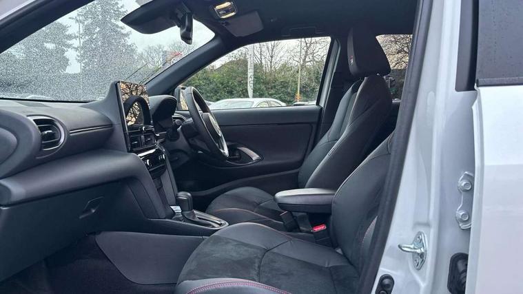 10.5" Multimedia display screen, 10.5" Toyota smart connect+ with navi multimedia system with wireless Smartphone integration incl Apple CarPlay, 12.3" Multi information display screen, Adaptive cruise control, multi info switches on steering wheel, Adjustable speed limiter, Bluetooth connectivity, Color multi-information display, Digital speedometer, Digital tachometer, Drive mode selector, Driver attention alert system, eCall emergency system, Electric power steering, Emergency driving stop system, Full range intelligent adaptive cruise control, Hybrid system indicator, Intersection turn assist, Key reminder warning, Lane trace assist, My T Connected services, Pre-collision system enhanced with emergency steering assist, Reversing camera, Road sign assist - RSA, Static guide lines on reversing camera, Telephone switch on steering wheel, Wireless Mobile Phone Charger, Steering assisted vehicle stability control, 6 speakers, DAB Digital radio, Front USB Type-C connector, Front USB-C device charger, 3rd brake light, Acoustic windscreen glass, Anti-jam protection on power windows, Auto dimming rear view mirror, Auto high beam [AHB] with on/off switch, Auto intermittent windscreen wipers, Automatic headlights, Automatic headlights cut-off, Black door moulding, Black lower front grille, Black protection moulding on side doors, Black rear bumper with diffuser, Black rear under run, Black roof rails, Black wheel arch mouldings, Body colour door handles, Body colour front bumper, Electric adjustable heated door mirrors, Follow me home headlights, Front and rear electric windows with auto up/down function, Gloss black upper front grille, GR Sport meshed lower front grille, GR Sport meshed upper front grille, GR sport scuff plates, Headlight cut off reminder, Indicators integrated on door mirrors, Intermittent rear wiper, LED daytime running lights guide, LED front fog lights, LED front light guide, LED Indicators, LED projector headlights, LED rear lights with sequential indicators, Manual headlight levelling, Noise reduction layer on windscreen, Pre wiring for towing hook, Privacy glass, Rain sensor, Rear side wing doors, Rear spoiler, Rear window defogger, Shark fin antenna, 12v power outlet - front, 12V power point in boot, 2x Rear coat hooks, 3 seat bench in 2nd row, 3 Spoke GR Sport leather steering wheel, 40/60 split deckboard, 40:20:40 split folding rear bench seat, Adjustable rear headrests, Adjustable speed limiter switch on steering wheel, Black roof lining, Boot light, Driver and front passenger personal lights, Driver and front passenger Whiplash injury Lesseing seats, Driver and passenger seatback pockets, Dual zone automatic air conditioning, Fabric door trim, Front console box, Front cup holders, Front door pockets, Front head restraints, Front sport seats, Front/rear assist grips, Gear shift indicator, GR sport floor mats, Heated driver and passenger seats, Height adjustable driver's seat, Height adjustable front passenger seat, Hooks for luggage holding belts, ISOFIX child restraint system, Lane departure alert switch on steering control, Leather gearshift, LED centre room light, Light on driver and passenger sun visor, Manual telescopic and tilting steering wheel, Mirror on driver and passenger sun visor, Nanoe-X air purifier, Pollen air filter, Power adjustable lumbar support on driver seat, Rear cup holders, Rear door pockets, Rear head restraints, Remote air-conditioning system, Single compartment glovebox, Single front passenger seat, Soft tonneau cover, Storage box under boot floor, Ultra suede cloth upholstery, Voice recognition switch on steering wheel, White ambient lighting in centre console, White ambient lighting in footwell, White ambient lighting on front doors, 3x3 point rear seat belts, ABS+EBD+Brake assist, Driver and passenger central airbags, Driver and passenger front airbags, Driver and passenger side airbags, Electronic parking brake, Emergency brake light system (EBS), Front seat belt reminder, Hill start assist control (HAC), Passenger airbag on/off switch, Pre-collision system with pedestrian and cyclist detection, Rear door child safety locks, Rear passenger side airbags, Rear seat belt reminder, Traction control, Tyre pressure warning system, Immobiliser, Intrusion alarm, Keyless smart entry with push button start, Power door locks, Power passenger window lock, Remote door lock, Tyre repair kit,
