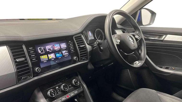 8" Digital display, Amundsen satellite navigation with 8" touchscreen, integrated Wi-Fi, web radio, Bluetooth system, Digital voice enhancement, E-call, ECO Stop/start function, Exterior temperature indicator, Power assist steering, Rear view camera, Smartlink wireless for apple carplay and wired for android auto, Speed limiter, Tailgate unlocking from outside, USB C Port x 2 in front centre console, 8 Speakers, DAB Digital radio, Aero front windscreen wipers with intermittent function, Aero rear window wiper, Auto dimming rear view mirror, Black wheel arch surrounds, Body colour bumpers, Body colour door mirrors and handles, Electric front and rear windows, Extended rear spoiler with finlets in gloss black, Front fog lights, Headlight washers, Heated rear window, Invisible tailpipe, LED rear fog light, LED third brake light in rear spoiler, Light assistant (coming/leaving home/tunnel light), Off-road style lower front bumper element, Privacy glass, Radiator grille frame in matt black with chrome strip, Rain and light sensors, Rear LED lights (high functionality) with welcome effect and dynamic indicators, Rear side wing doors, Safety reflectors on front and rear doors, Window control switches with black trim, 12V socket in boot, 2 rails with 2 hooks, 2 seat bench in 3rd row, 3 seat bench in 2nd row, 4 foldable roof handles with rear coat hooks, 60:40 foldable rear seat with sliding adjustment and backrest angle adjustment, Bottle holders in door panel in the 1.5 litre front and 1 litre rear, Cargo storage compartments, Chrome interior door handles, Cloth upholstery, Coat hooks on B pillar, Covered storage compartment on driver side, Dual zone automatic air conditioning with humidity sensor and control, Front centre armrest with storage compartment, cup holder and 12V socket, Gear shift lever with chrome frame and black gloss insert, Grey headlining, Grey stitching in front and rear armrests and door armrests + door inserts, Height adjustable front headrests, Height adjustable front seats, Illuminated and cooled glovebox, Illuminated luggage compartment, Isofix child seat fittings in outer rear seats with top tether, Manually adjustable steering column, Net programme in boot (1x horizontal Net, 2x vertical Nets), Overhead glasses storage compartment, Pollen filter, Rear centre armrest with cupholders, Single front passenger seat, Sliding trunk cover, Small Bags on the inner sides of the front backrests, Sunvisors with illuminated vanity mirrors, Three rear height adjustable headrests, Ticket holder on A Pillar, Umbrella in door panel, Variable boot floor, Auto door release and activation of warning lights in the event of an accident, Child locks on rear doors, Driver and front passenger airbag with knee airbag and front passenger airbag deactivation, Electronic parking brake with hill start assist, Emergency rear braking signal, ESC (incl. ABS+MSR+ASR+EDS+HBA+DSR+RBS+MKB), Front assist with autonomous emergency braking, Front side airbags with curtain airbags, Fuel cut off safety device, Height adjustable front 3 point seatbelts + pretensioners, Hill hold control, Rear disc brakes, Safety vest holder in door, Seat belt reminder for all seats, Three point rear seat belts, Two tone horn, Tyre pressure monitor, Alarm with interior monitoring and tilt sensor with safe function, Anti-theft wheel bolts, Immobiliser, Keyless entry and start system (KESSY), Remote central locking with 2 keys, Grey stitching in dashboard, Temporary spare wheel (space saver),