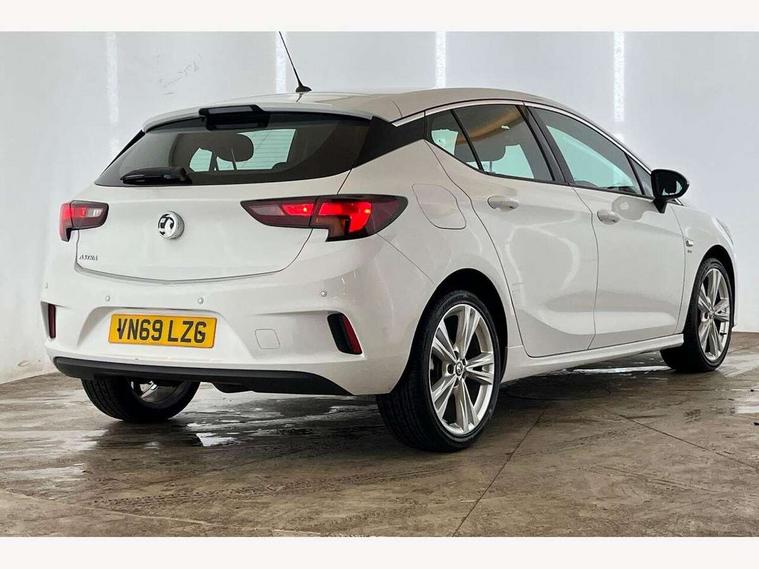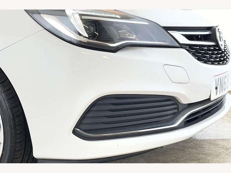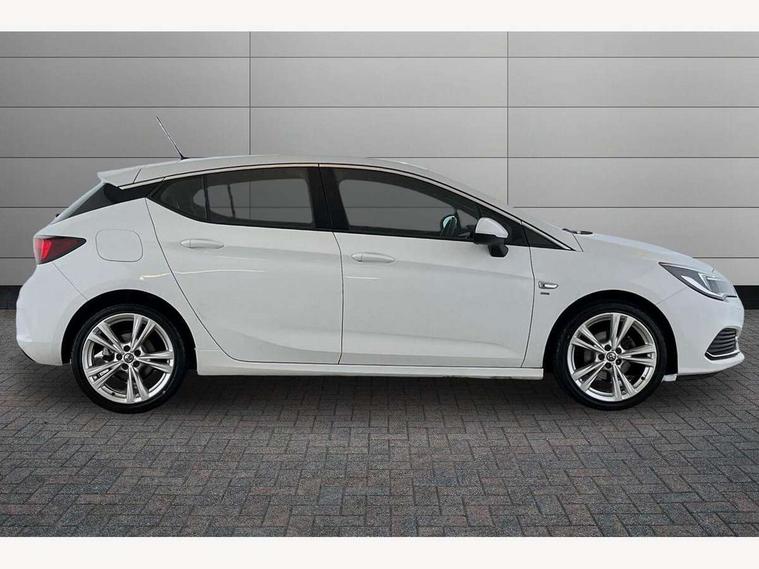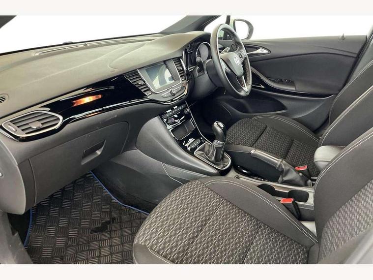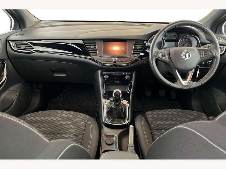Central facia display with digital clock, outside air temperature and audio information, Cruise control + speed limiter, Digital fuel gauge with low fuel warning light, Digital water temperature gauge with warning light, Electric speed sensitive power steering, Facia mounted Sport switch, Gearshft up/down indication light, Left Key in ignition audible warning, Lights on audible warning, Monochrome display in instrument cluster, Multi function trip computer, Oil life monitoring system, Rev counter, Service due indicator, Speedometer, 6 speakers, R4 Intellilink infotainment with 7" screen, DAB, traffic program, USB/iPod, Bluetooth audio streaming A2DP, microphone and Apple Carplay/Android Auto, Steering wheel mounted audio controls, Adaptive brake lights, Automatic lighting control, Body colour door handles, Body colour rear roof spoiler, Body coloured door mirrors, Chrome effect upper window trim, Chrome front grille, Chrome headlight surround, Dipping rear view mirror, Door to door illumination, Electric front/rear windows/one touch facility, Gloss black finish B pillar, Gloss black finish C pillar, Hazard warning lamps, Heated rear screen with timed cut off, High level LED centre rear brake light, Intermittent rear wash/wipe, LED daytime running lights, LED side repeat indicators, Rain sensor windscreen wipers, Rear fog lights, Reversing light, Shark fin roof aerial, Side window demist vents, Solar heat absorbing windscreen, Tinted windows, Tunnel detection for auto light control, Twin electrically adjustable and heated door mirrors, Two speed windscreen wipers with variable intermittent wipe, Windscreen demist vents, 12V electrical accessory socket in front, 3 spoke leather covered steering wheel with accent stitching, 60/40 split folding rear seat, Ambient LED downlighter in facia/centre console, Black door panels with black atlantis cloth inserts, Chrome interior door handles, Driver and front passenger illuminated vanity mirrors with flip up covers, Driver and front passenger sunvisors, Fade up/down courtesy light, Folding storage box on driver side lower facia, Four adjustable facia vents, Four load restraint lashing eyes, Front and rear door pockets, Front centre armrest with storage, Front courtesy lights, Front red LED ambient lighting, Front seat back storage pockets, Fully carpeted load area, Glovebox with lid, Height adjustable and removable rear head restraints (x3), Height adjustable front head restraints, Illuminated load area, Interior tailgate handle, Isofix child seat mounting points on outer rear seats, Luggage compartment cover, Plain black fabric side bolsters and surrounds, Reach + rake adjustable steering column, Rear courtesy lights, Satin chrome effect bezel on steering wheel, Storage compartment in centre console, Twin front reading lights with illuminated switches, Twin gas assisted tailgate struts, Twin rear reading lights with illuminated switches, Two drinks holders in centre console, Driver's ergonomic active seat pack - Astra SRi/SRi Vx-Line/Elite, Driver's ergonomic active seat pack with Formula cloth upholstery- Astra, VXR Styling pack - Astra Elite/SRi Vx-line/Ultimate, 3x3 point rear seatbelts, Anti-lock braking system (ABS), Child locks on rear doors, Electronic Stability Programme, Height adjustable front seatbelts, Hill start assist, Passenger airbag deactivate switch, Pedal release system, Seatbelt pretensioners on front/outer rear seats, Seatbelt warning, Six airbags - Driver's dual stage airbag/front passenger's dual stage airbag/front seat side impact airbags/full size curtain airbags, Traction control, Tyre pressure monitoring system, Electronically protected audio, Engine Immobiliser & Deadlocks, Freewheeling door locks, Locking wheel bolts, Remote control central locking, Remote control ultrasonic security alarm system, Visible vehicle identification number, Black facia with piano black trim inserts, Instrument panel bar in piano black, Piano black trim inserts on front doors, Silver air vent surrounds, 18" Five twin spoke alloy wheels,