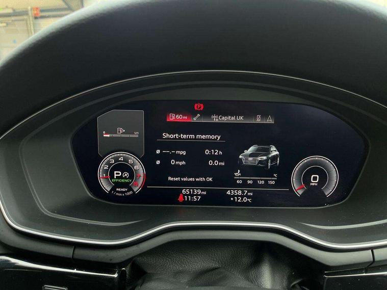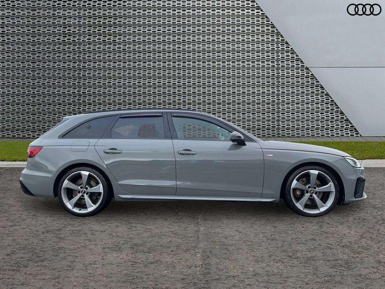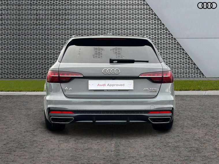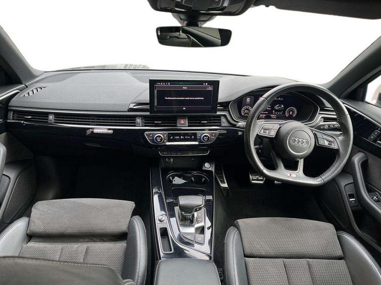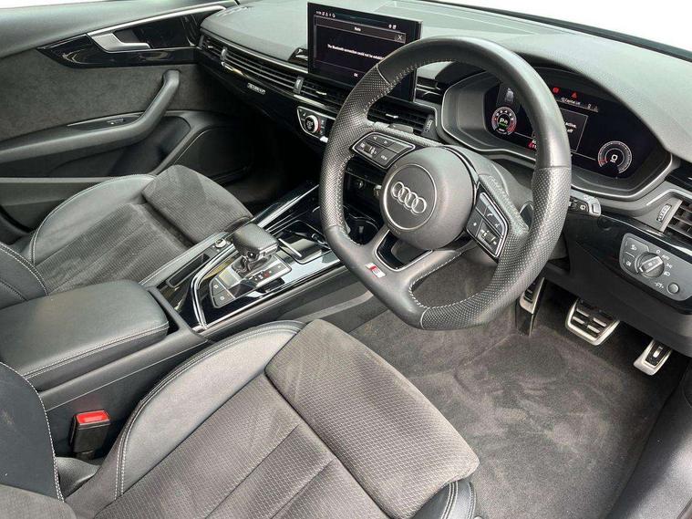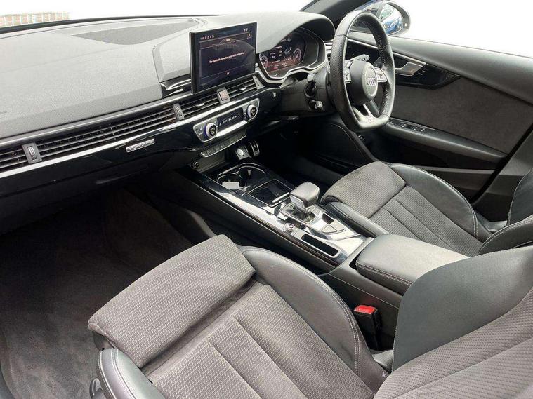 Audi connect safety and service (e-call), Audi drive select, Audi parking system plus with front and rear sensors, Audi smartphone interface, Audi virtual cockpit, Automatic start-stop system with coasting functionality and efficiency programme, Bluetooth interface, Electromechanical power steering, MMI Navigation plus with MMI touch includes 10.1" high resolution colour MMI display, 3D map, Power operated tailgate, Rear view camera, Voice control system, 58 Litre fuel tank, Sports suspension lowered by 23mm, 2 USB charging ports, 8 passive loudspeakers, DAB digital radio reception, Auto dimming rear view mirror, Body colour door handles, Body colour front spoiler lip, Body colour side sill trim, Electrically folding auto dimming/adjustable/heated door mirrors with LED side indicators and kerb view function for passenger side, Grained matt black side air inlets with matt aluminium silver inlay, High beam assistant, LED headlights with LED rear lights + dynamic rear indicators + headlight adjustment and high beam, turning light + LED daytime running lights, Matt aluminium silver tailpipe trim, Privacy glass, Rain and light sensors, S Line badges on the front wings, S line front and rear bumpers with side skirts, S Line rear diffuser in matt titanium black with trim strip in matt aluminium silver, S Line roof edge spoiler, Windscreen with acoustic glazing, 4 way electric lumbar support for driver and front passenger, 40/20/40 split folding 3 rear seat bench in 3 parts with rear centre armrest, Black cloth headlining, Black perforated leather gearknob, Contrast stitching on seats, steering wheel and gear lever gaiter, Deluxe 3 zone electronic climate control, Door sill trims with aluminium inlay, Electric load area cover, Front and rear head restraints, Front centre armrest, Heated front seats, Illuminated door sill trims with S logo, ISOFIX child seat mounting and top tether, Manual seat adjustment, Stainless steel pedals and foot rest, Tool kit, LED Interior light pack - A4/S4, Titanium black styling pack - A4 Avant, 3 rear seatbelts, 6 airbags - Driver, front passenger, curtain and side windows, Electronic Stabilisation Control (ESC) including ABS, ASR and EDL, Hill hold assist, Multi collision brake assist, Pop-up bonnet for pedestrian protection, Pre sense city, Seatbelt monitoring, Warning triangle and first aid kit, Anti theft alarm, Anti theft wheel bolts, Keyless Go, Piano black finish inlay, 19" 5 arm rotor design alloy wheels titanium matt look, Tyre repair kit,