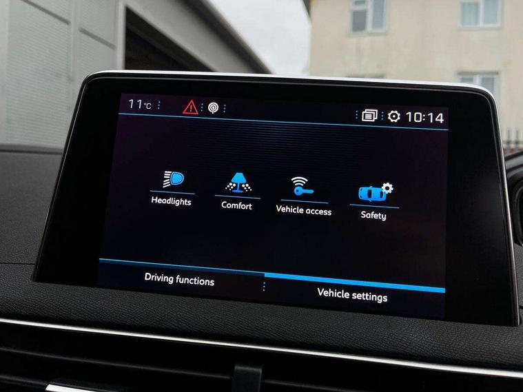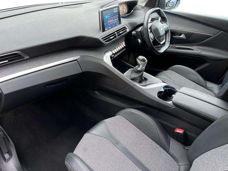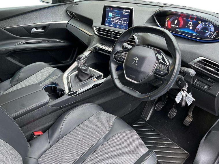 'Lights On' Reminder warning buzzer, 3D connected navigation + voice control + Peugeot connect SOS and assistance, Bluetooth telephone facility, Digital clock, Exterior temperature indicator with ice warning, Front and rear parking sensors, Lane departure warning system, Mirror screen with mirror link, apple carplay and android auto, Multi function trip computer, PEUGEOT i-Cockpit with 8.0" capacitive touchscreen in centre console, PEUGEOT i-Cockpit with compact sports steering wheel, PEUGEOT i-Cockpit with configurable 12.3" Head-up digital instrument panel, Speed limit recognition and recommendation, Dynamic stability control and electronic anti-skid system, DAB Digital radio, Steering column mounted multifunction controls, USB socket, 2 X Rear number plate lights, Aluminium longitudinal roof bars, Automatic hazard light activation upon heavy brake application, Automatic triggered rear windscreen wiper in reverse gear, Black and chrome front wing trim, Black bumper protection plate, Black rubber side window trim, Body colour door handles, Body colour door mirror shells, Body colour rear spoiler with stainless steel edging trim, Body coloured bumpers, Body protectors (bottom of front and rear bumpers + wheel arches + protection at bottom of doors) in black, Chrome bumper inserts, Chrome front fog light trim, Chrome radiator grille and surround, Chrome rear bumper facia, Dark tinted rear side windows + tailgate window, Door mirror mounted LED courtesy approach lights, Electric operated/heated door mirrors, Front windscreen wiper with magic wash cleaning system, Gloss black finish B and C pillar, Gloss black rear cluster connecting strip, Gloss black windscreen surround, Halogen headlights, Headlights left on audible warning, Heated rear windscreen with integrated antenna, LED daytime running lights, LED sequential scrolling front indicators, LED side indicator lights integrated into door mirrors, Lion grey front bumper scuff plate, One touch electric front/rear windows with pinch protection, Power folding door mirrors with blind spot detection indicator and auto dipping function in reverse gear, Radiator grille in chrome edge trim and facets, Rear LED Peugeot signature 'Claw Effect' lights, Stainless steel roof arches, 1/3 to 2/3 split folding rear seats, 12V Sockets in dashboard, rear cabin and load area, 2 cupholders in front centre console, 2 rear reading spotlights, 2x Rear coat hooks, 3x Isofix child seat fittings in the front passenger and outer rear seats, 4 Grab handles retractable and damped, 4 Lashing eyes in boot, Blue ambient lighting for connecting zone, Blue ambient lighting to front door panels, central storage and cupholders, Blue ambient lighting to head up instrument panel, Centre front armrest with butterfly wing opening and illuminated storage compartment, Driver and front passenger seat height adjustment, Driver seat manual adjustment, Dual zone automatic climate control, Electric power steering with reach and rake adjustable steering column, Fixing rings 4 in load compartment, Flocked glovebox interior, Fold flat front passenger seat with picnic table, Footwell illumination, Front headrests, Front interior light with 2 reading spotlights and rear interior light with timer, Front seat back map pockets, Gear shift indicator, Height adjustable headrests, Illuminated glovebox, Illuminated vanity mirrors, Mistral full grain leather steering wheel, Rear armrest with ski flap and two cup holders, Rear centre console ventilation system, Rear headrests, Reclining front seats, Roof LED interior lighting, Roof lining - Salin light grey, Satin chrome dashboard trim, Satin chrome digital instrument panel and touchscreen trim, Satin chrome front door panel recess trim, Satin chrome gear lever, Satin chrome interior door handles, Satin chrome scorpion's tail and toggle switch trim, Seatbelt not fastened audible and visual alert for front seats, Seatbelt unfastened on the move audible and visual alert for front and rear seats, Two position boot floor, Safety pack - 3008, Safety Plus Pack - 3008, Visibility pack - 3008, 3x Rear three-point retractable seatbelts with force limiters in the outer rear seats, Adaptive driver and front passenger airbags with passenger airbag deactivation function, Anti-lock braking system with electronic braking distribution and emergency braking assistance, Auto city emergency braking, Driver and front passenger side airbags, Driver SMART airbag, Electric child locking functionality on rear windows and doors, Electric parking brake, ESP with ASR, Front and rear curtain airbags, Front optimised safety headrests and 3 x rear retractable headrests with height adjustable, Front passenger SMART airbag with deactivate switch, Front three point retractable seatbelts with pre tensioners and force limiters, Front ventilated disc brakes and rear disc brakes, Height adjustable front seatbelts, Hill start assist, Tyre pressure sensor, Anti theft alarm, Automatic door lock/re-lock after 30 seconds, Central locking button on dash, Deadlocks, Electronic immobiliser, Locking wheel bolts, Remote control central locking with two plip keys, Brumeo fabric Dashboard, front and rear door panel finish, Satin chrome dash trim, Satin chrome instrument dial surrounds,