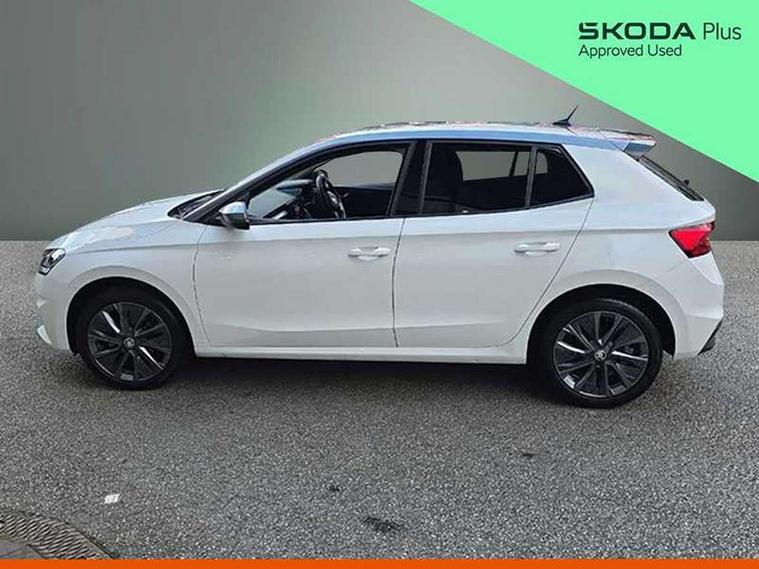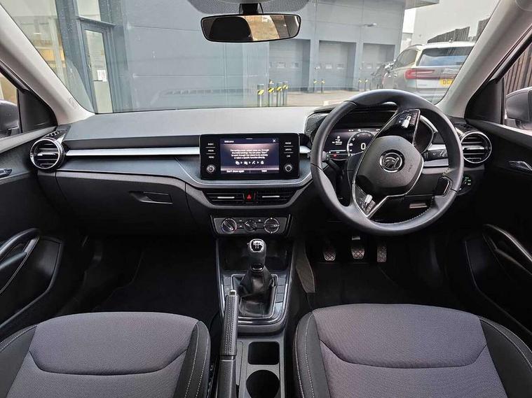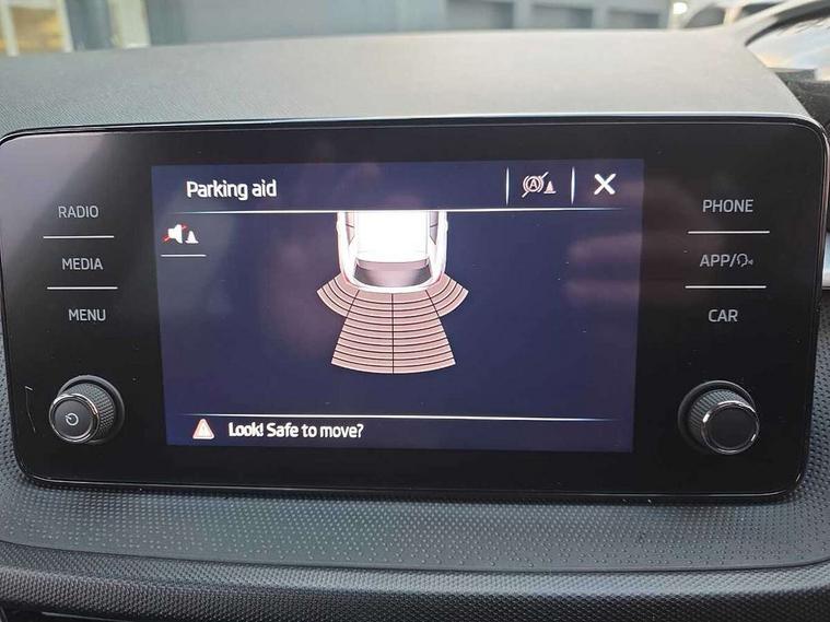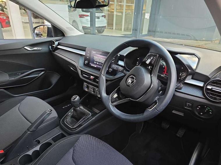 Bluetooth connection, Driver alert system - DAS, Electromechanical power steering, Exterior temperature gauge, Lane assist including road edge detection, Service interval indicator, Virtual cockpit with 10.25" colour display, 2x USB-C in the front (for data transmission and charging), 6 Speakers (4 in front and 2 in rear), Auxiliary socket for external MP3 player, Bolero radio with 8" colour display, DAB digital radio reception, Basic LED Headlights, Body coloured bumpers, Dimming rear view mirror with black frame, Door mirror integrated indicators, Electrically adjustable and heated door mirrors, Electrically adjustable front windows with function auto up/down, Front fog lights, Front window wiper intermittent control, Headlight range control - Automatic, Ice scraper in fuel cap, LED daytime running lights with coming and leaving home feature, Mechanical adjustable rear windows, Privacy glass, Rain sensor, Rear LED fog light, Rear side wing doors, Rear window wiper with washing nozzles, Roof mounted spoiler, SKODA tailgate lettering in chrome, Third brake light, 2 reading lights in front and 2 reading lights in rear, 3 rear headrests, Backrest split and folding, Central console with fixed cup holder and storage box, Chrome handbrake release button, Fabric upholstery, Gearshift knob/handle in leather, Grain satin black interior door handles, Hand brake lever handle in leather, Height adjustable drivers seat, Height adjustable front headrests, Height adjustable steering wheel, ISOFIX and TopTether anchorage points to the outer rear seats, ISOFIX and TopTether on the front passenger seat, Luggage compartment lighting, Pollen filter, Rear seat bench unsplit, Single front passenger seat, Storm grey headlining, Sun visors with mirror and airbag label on passenger side, Ticket holder, Umbrella in drivers door, 3-point height adjustable front seats belts with pretensioner and force limiter, Automatic warning lights in case of crash, Driver and passengers airbag with switch off function, e-Call+, ESC including ABS, MSR, ASR, EDS, HBA and XDS, Front and rear seat belt warning, FRONT ASSIST (AEB City and AEB Inter Urban), Front side airbags, Head airbags, One tone horn, Pedestrian protection, Three rear 3-points safety seat belts with pretensioner and force limiter including stop function for outer rear seat belts, Tyre pressure monitoring system, Anti-theft alarm system including immobiliser, interior monitoring, backup horn, and towing protection, Central locking with radio remote control, interior controls, SAFE function and 2 foldable keys, KESSY - Keyless engine start/stop, Anodized cross line upper decorative trim, Colour Edition air vents, Grain satin black central console cover, Grain satin black lower decorative trim, Satin black door and side trim panel in front, Anti-theft wheel bolts protection, Super-low rolling resistance tyres,